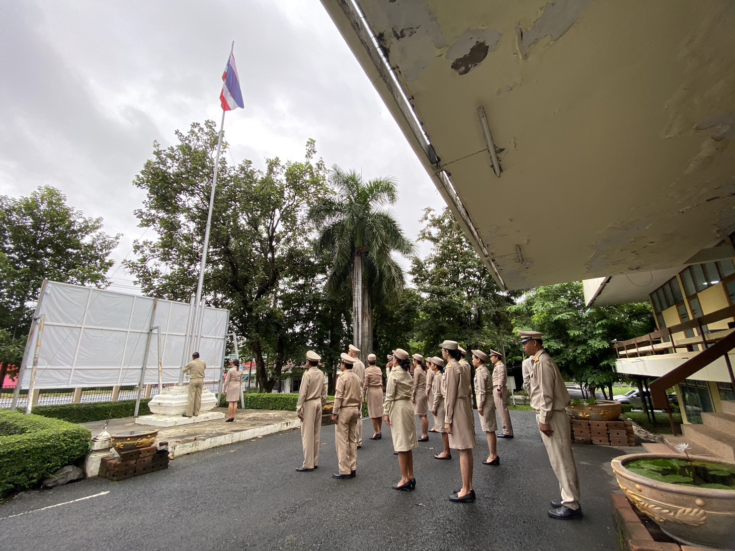 และร้องเพลงชาติ เนื่องในวันพระราชทานธงชาติไทยเพื่อน้อมรำลึกถึงพระบาทสมเด็จพระมงกุฎเกล้าเจ้าอยู่หัว