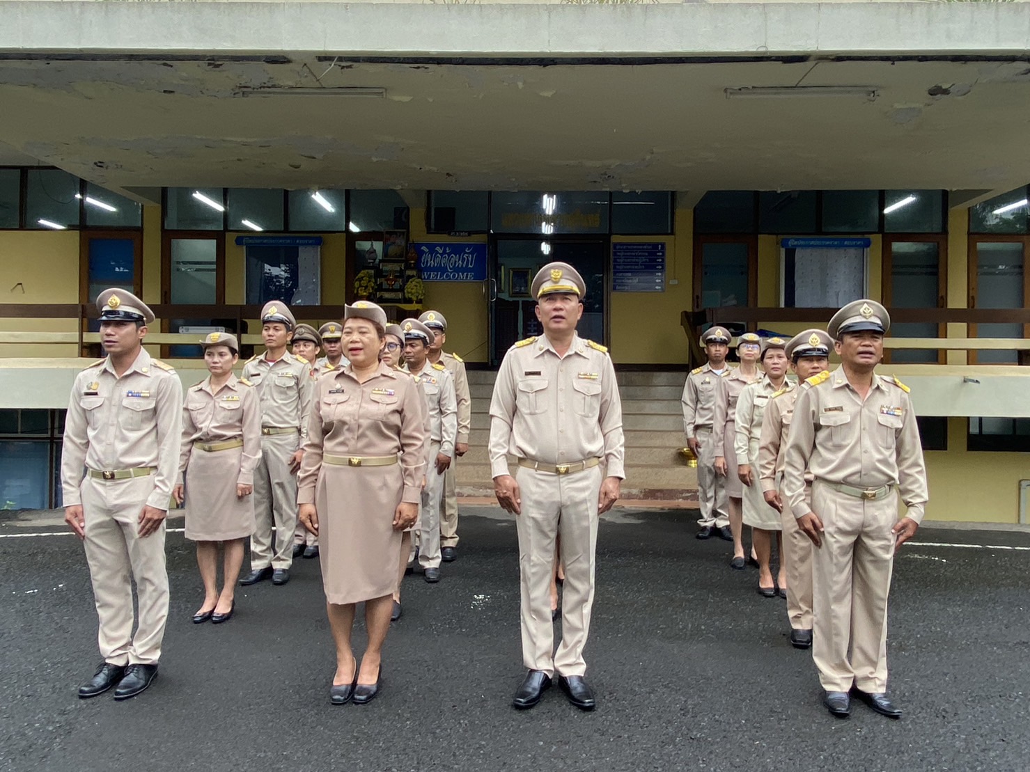 พร้อมด้วยหัวหน้าหน่วยงานในสังกัดฯ และเจ้าหน้าที่แขวงทางหลวงสุรินทร์ ร่วมกิจกรรมเคารพธงชาติ