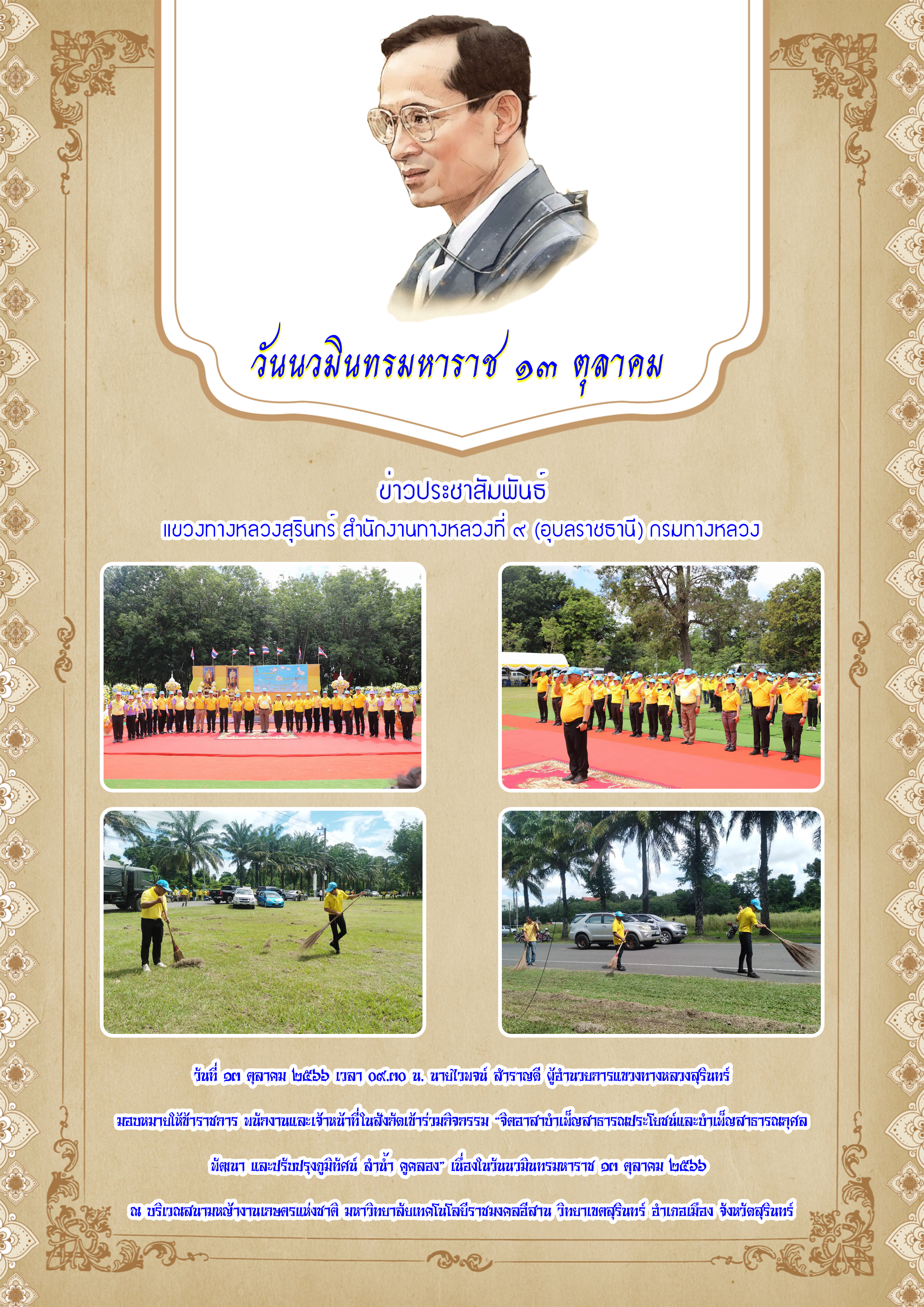 วันที่ ๑๓ ตุลาคม ๒๕๖๖ เวลา ๐๙.๓๐ น. นายไวพจน์ สำราญดี ผู้อำนวยการแขวงทางหลวงสุรินทร์