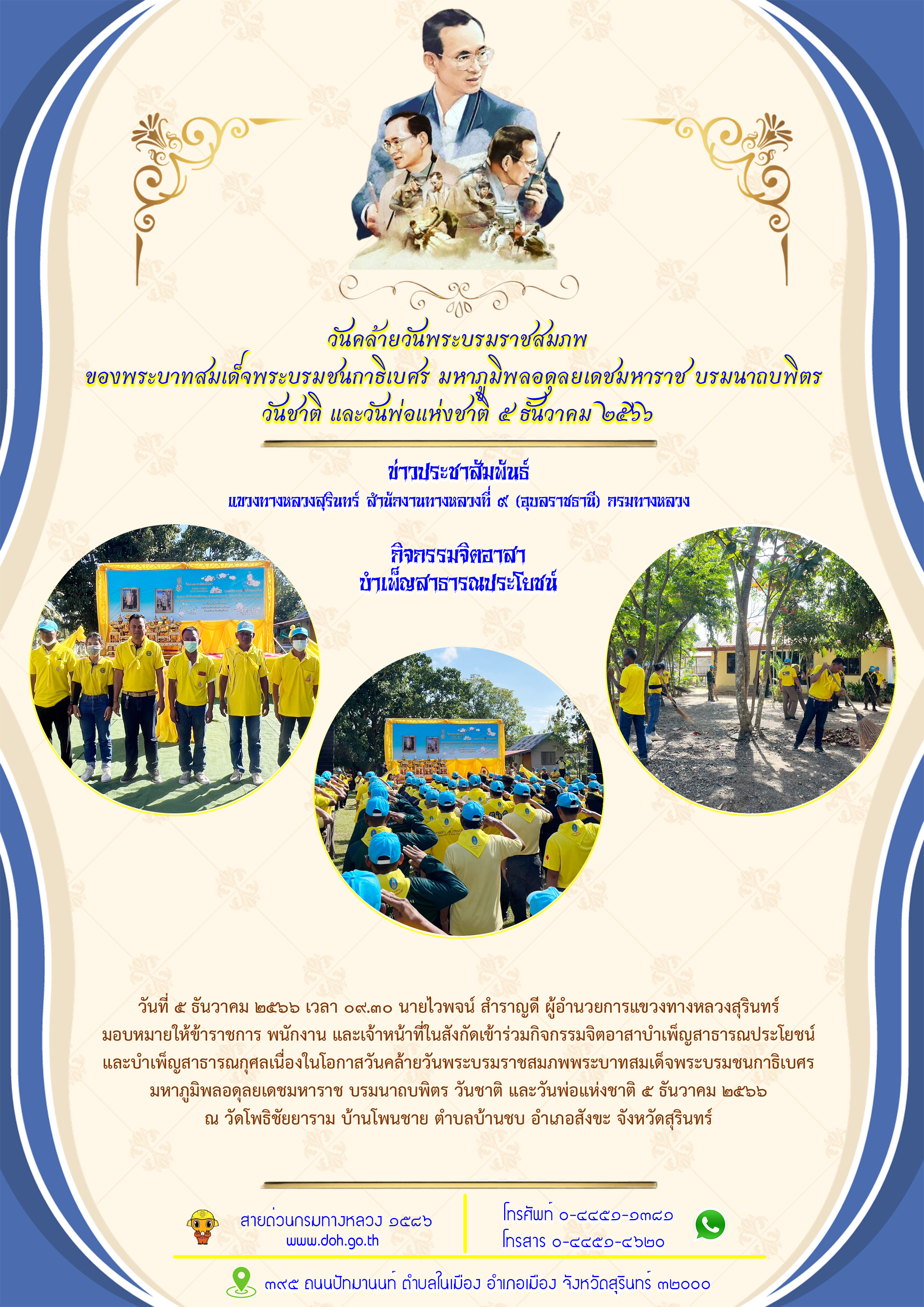 วันที่ ๕ ธันวาคม ๒๕๖๖ เวลา ๐๙.๓๐ นายไวพจน์ สำราญดี ผู้อำนวยการแขวงทางหลวงสุรินทร์
