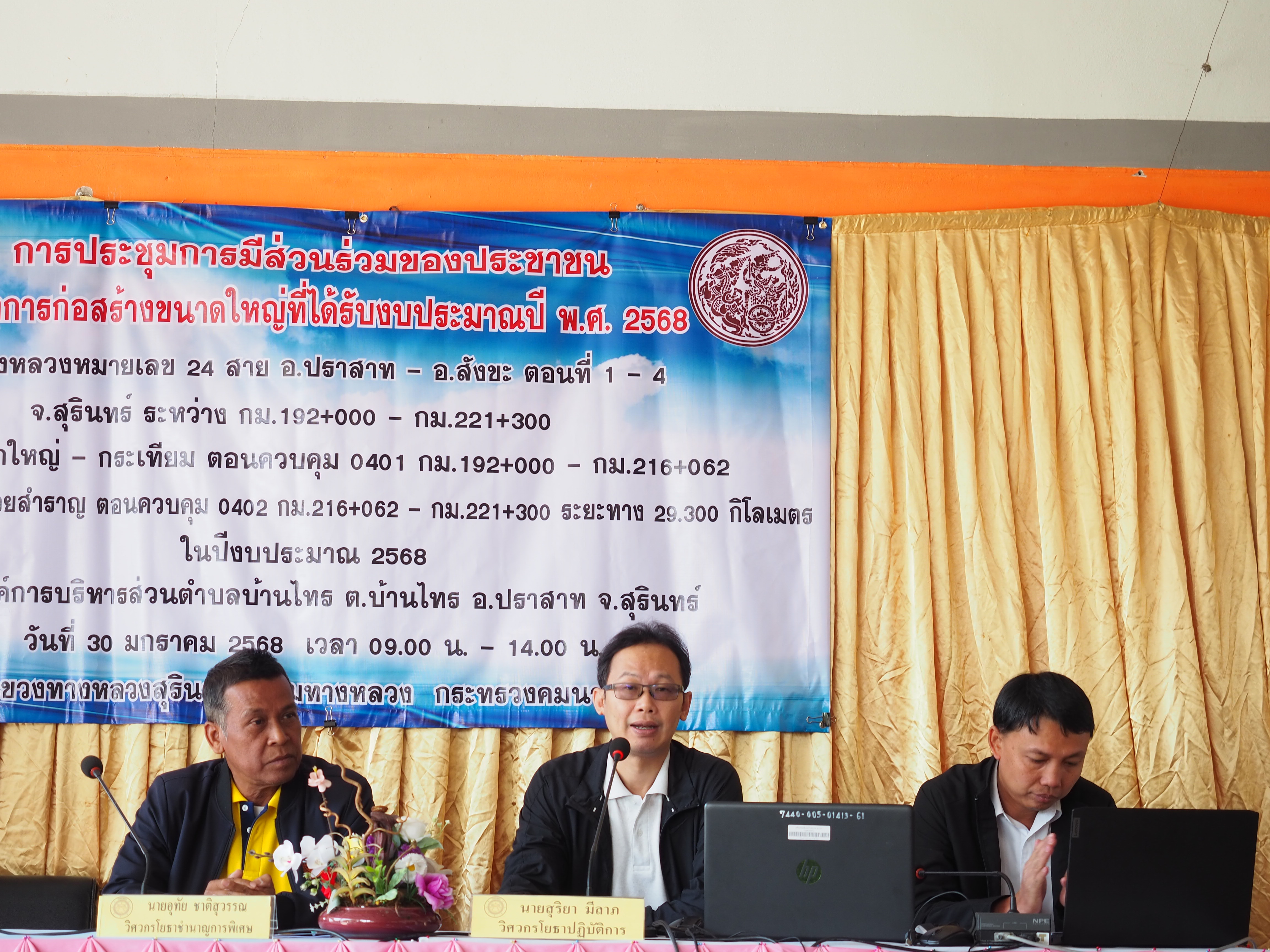 วันที่ 30 มกราคม 2568 เวลา 10.00 น. นายประลองยุทธ์ กสิวงศ์ พร้อมด้วย คณะผู้บริหารและเจ้าหน้าที่ในสังกัด ร่วมกับสำนักสำรวจและออกแบบ กรมทางหลวง จัดประชุมโครงการการมีส่วนร่วมของประชาชน ปี 2568