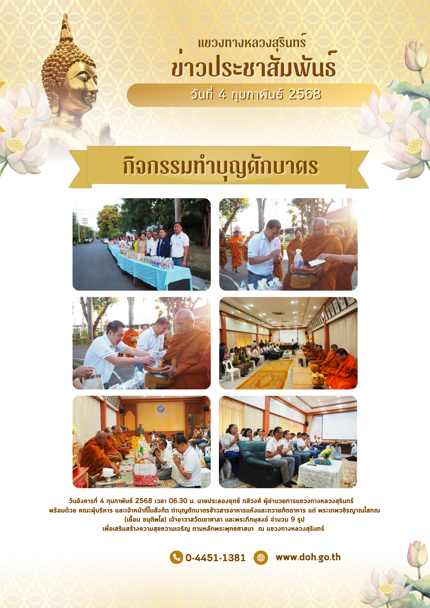 เพื่อเสริมสร้างความสุขความเจริญ ตามหลักพระพุทธศาสนา ณ แขวงทางหลวงสุรินทร์