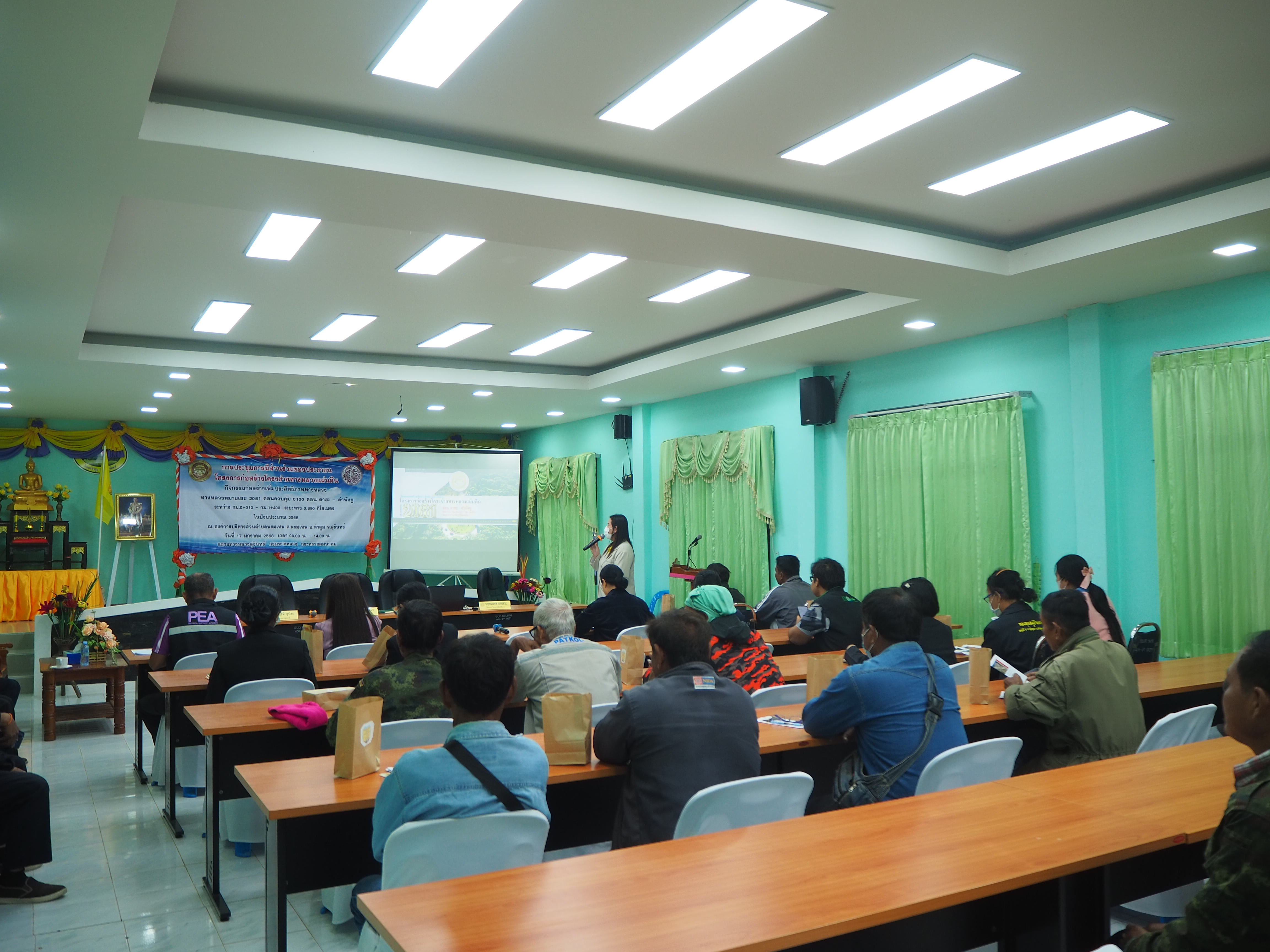 ด้วยแขวงทางหลวงสุรินทร์ จะดำเนินการก่อสร้างทางหลวงหมายเลข 2081 ตอนควบคุม 0100 ตอน ตาฮะ - ลำพังชู ระหว่าง กม.0+510 - กม.1+400 รวมระยะทาง 0.890 กิโลเมตร งบประมาณ 30,000,000.00 บาท ซึ่งการก่อสร้างอาจมีผลทำให้เกิดการเปลี่ยนแปลงต่อสภาพแวดล้อม สภาพสังคมและเศรษฐกิจในพื้นที่ตามแนวเส้นทางก่อสร้าง กรมทางหลวง ได้ตระหนักถึงความสำคัญของกระบวนการการมีส่วนร่วมของประชาชนผู้มีส่วนได้ส่วนเสีย ซึ่งอาจได้รับความเดือดร้อนหรือได้รับผลกระทบโดยตรง จากการดำเนินงานตามโครงการของกรมทางหลวง เพื่อเปิดโอกาสให้ประชาชนได้รับทราบข้อมูลข่าวสารและได้แสดงความคิดเห็นหรือข้อเสนอแนะต่อการดำเนินโครงการของกรมทางหลวง จึงได้จัดให้มีการประชุมการมีส่วนร่วมของประชาชนขึ้น ในวันศุกร์ ที่ 17 มกราคม 2568 เวลา 09.00 น. – 14.00 น. ณ องค์การบริหารส่วนตำบลพรมเทพ ตำบลพรมเทพ