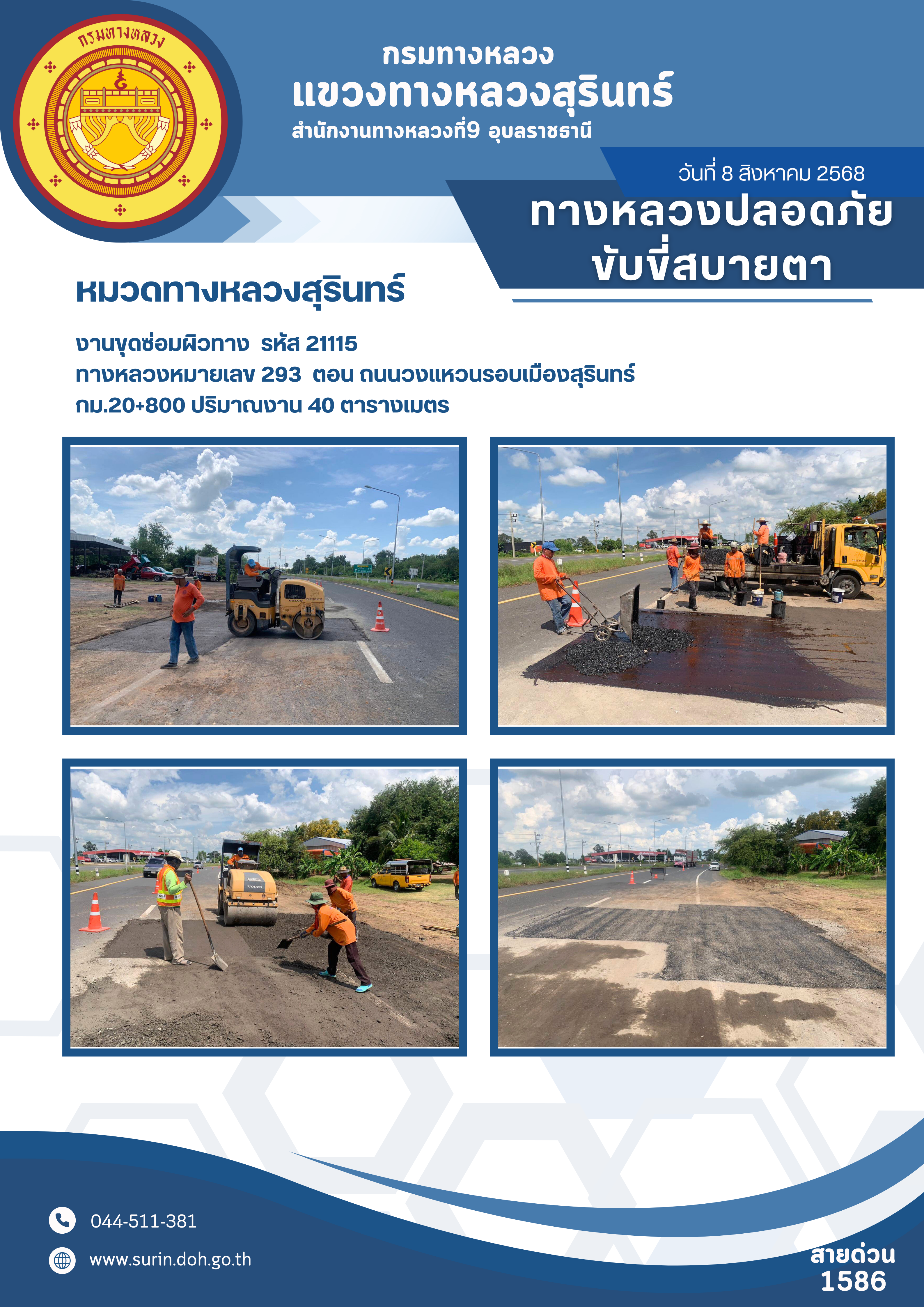 ข้อมูลข่าว : ทางหลวงปลอดภัย ขับขี่สบายตา 8 สิงหาคม 2568