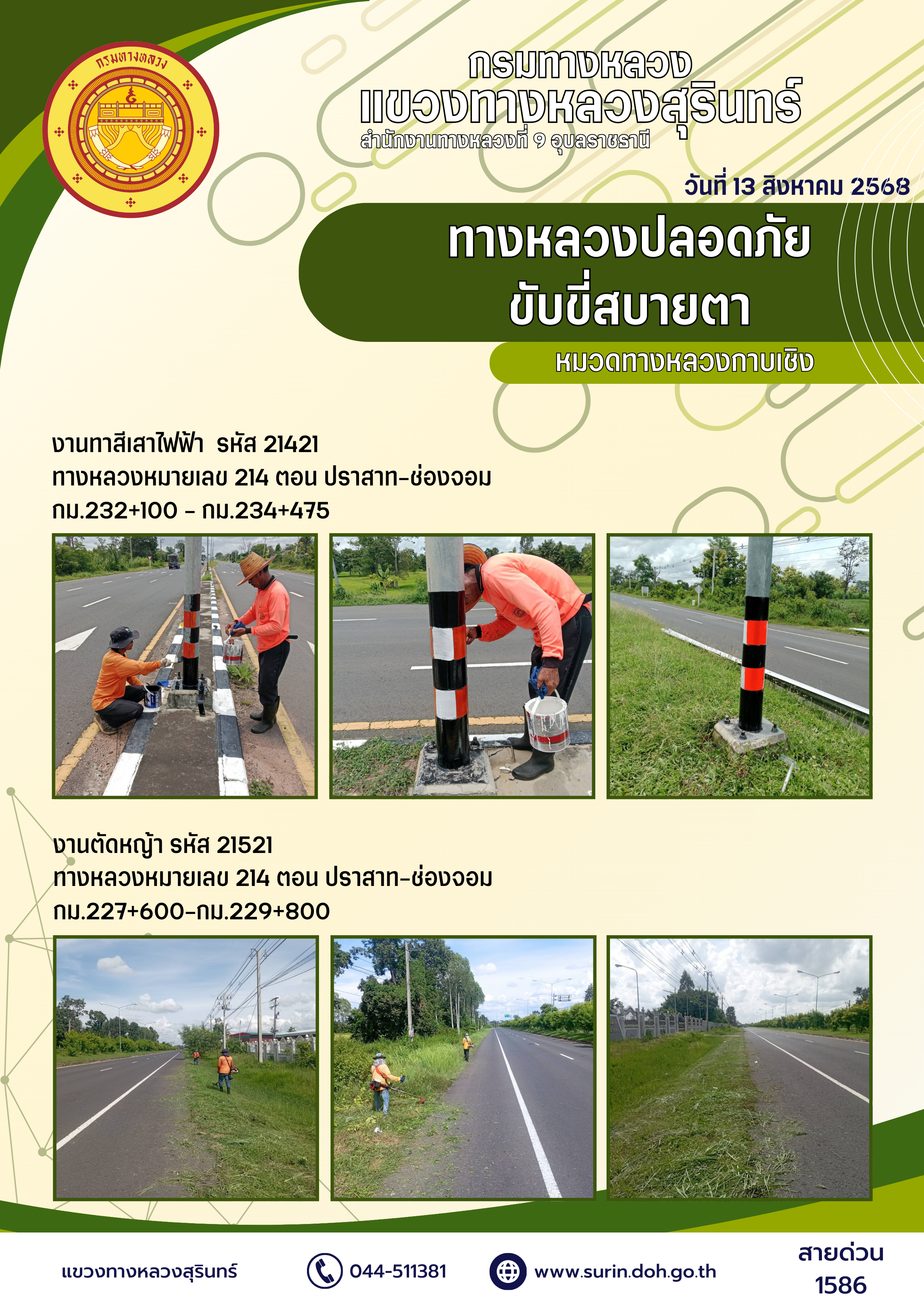 ข้อมูลข่าว : ทางหลวงปลอดภัย ขับขี่สบายตา 13 สิงหาคม 2568
