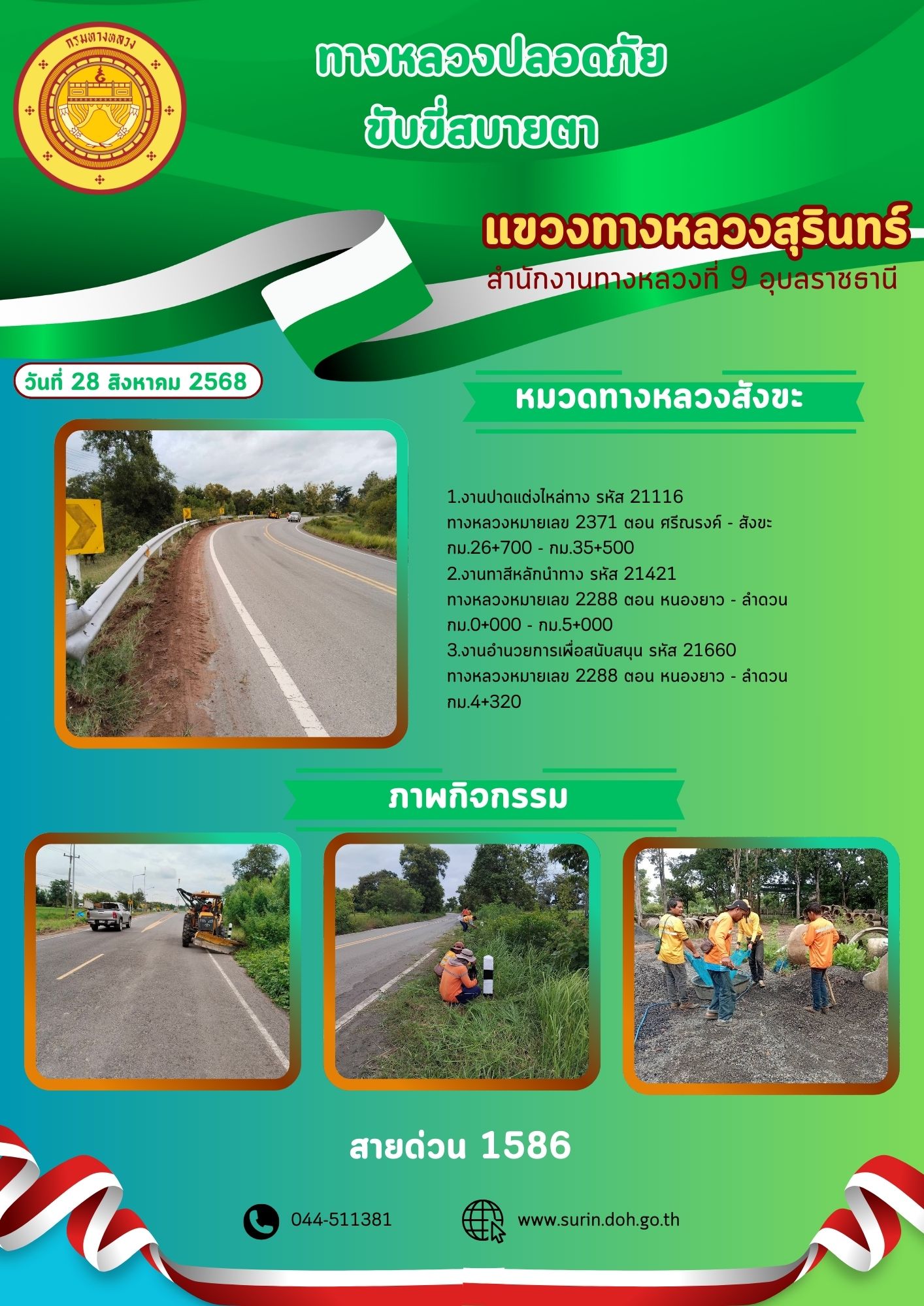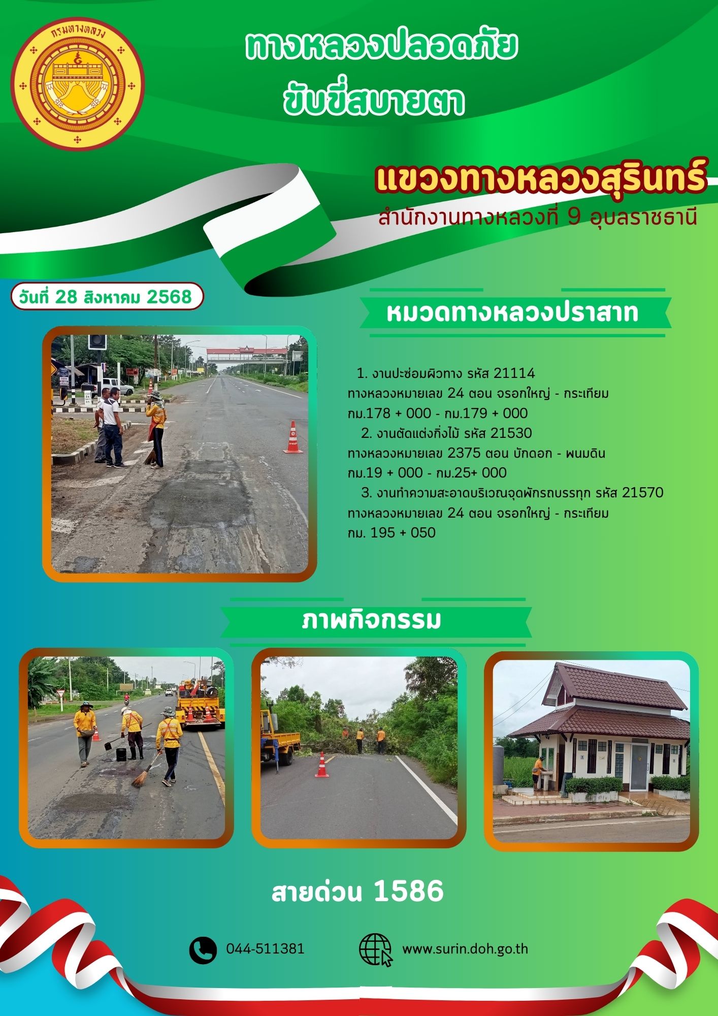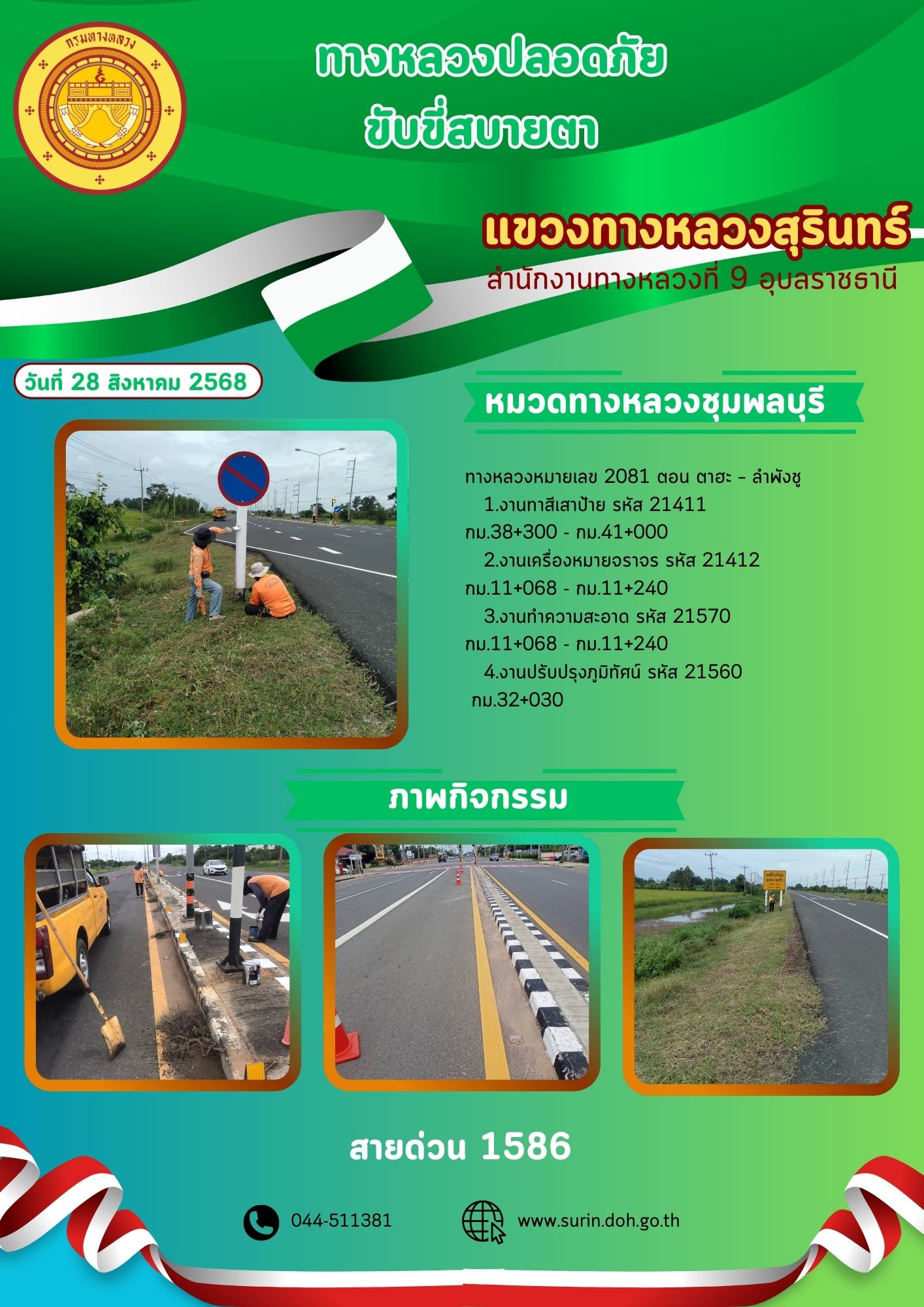 ข้อมูลข่าว : ทางหลวงปลอดภัย ขับขี่สบายตา 28 สิงหาคม 2568