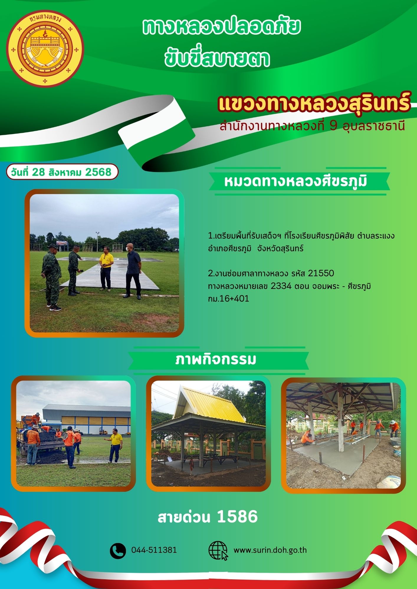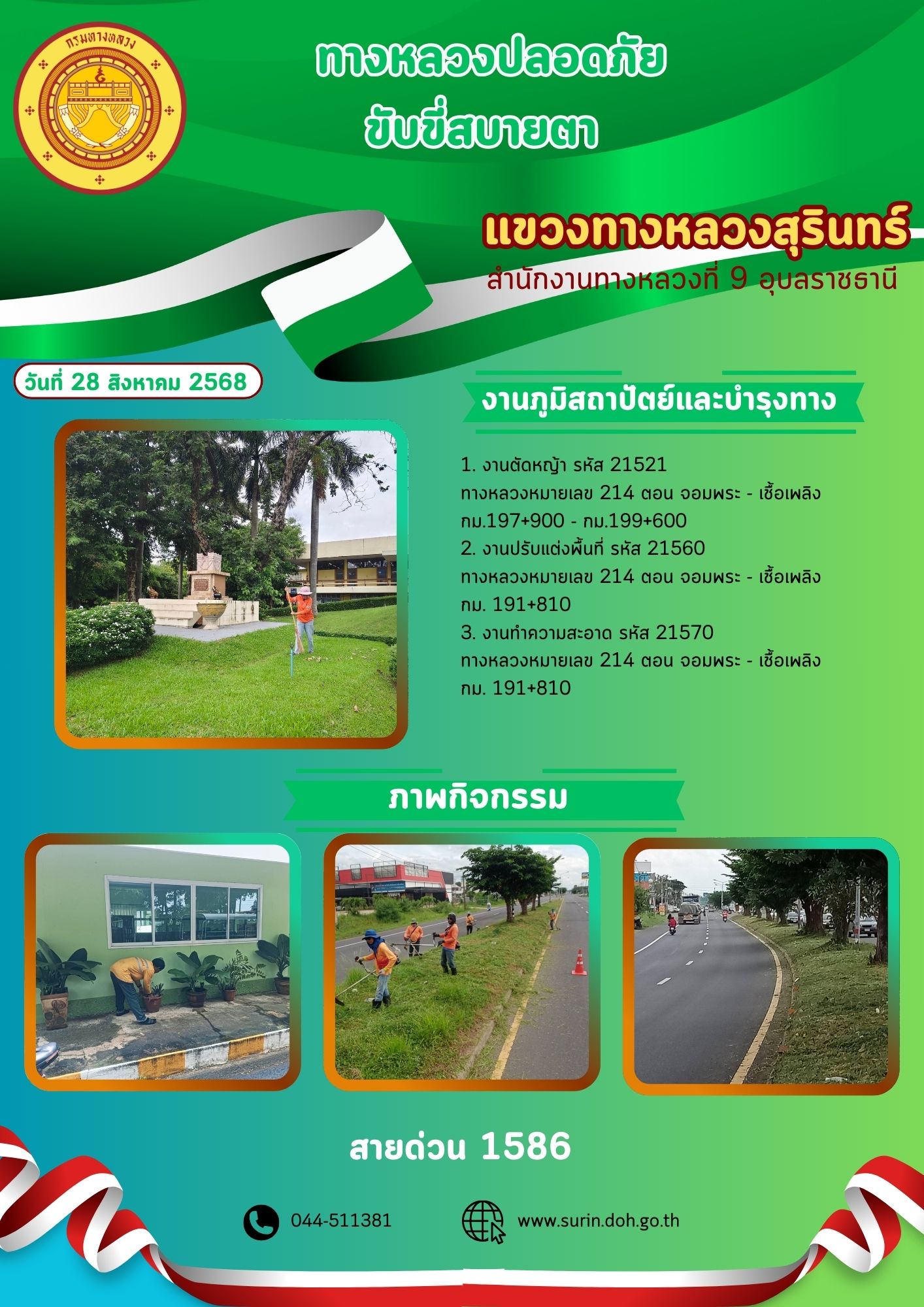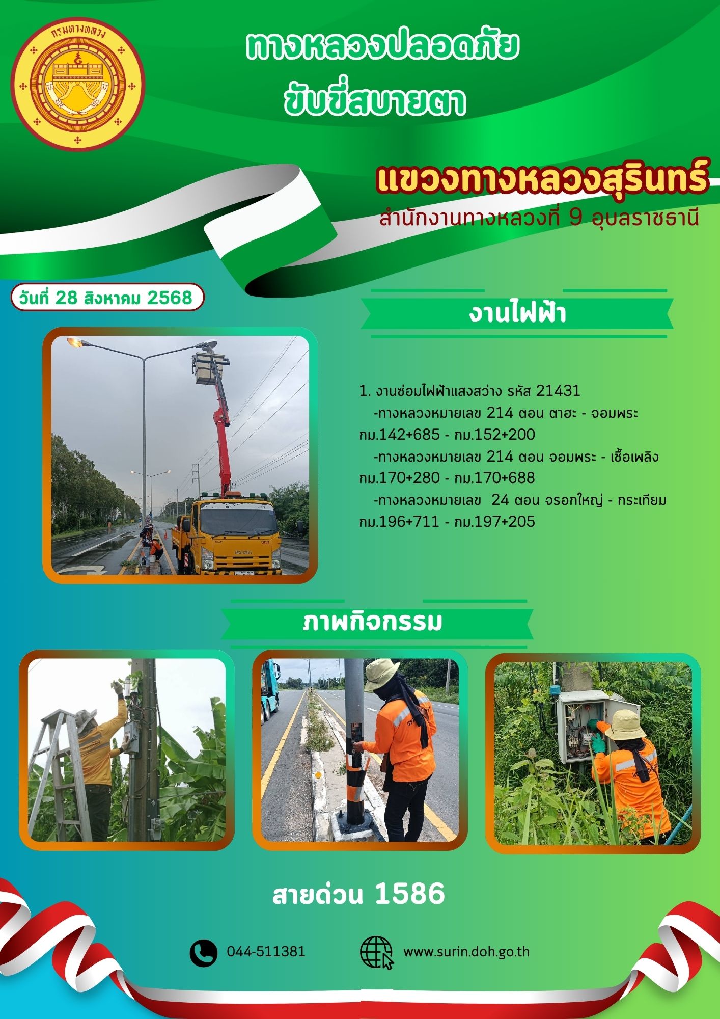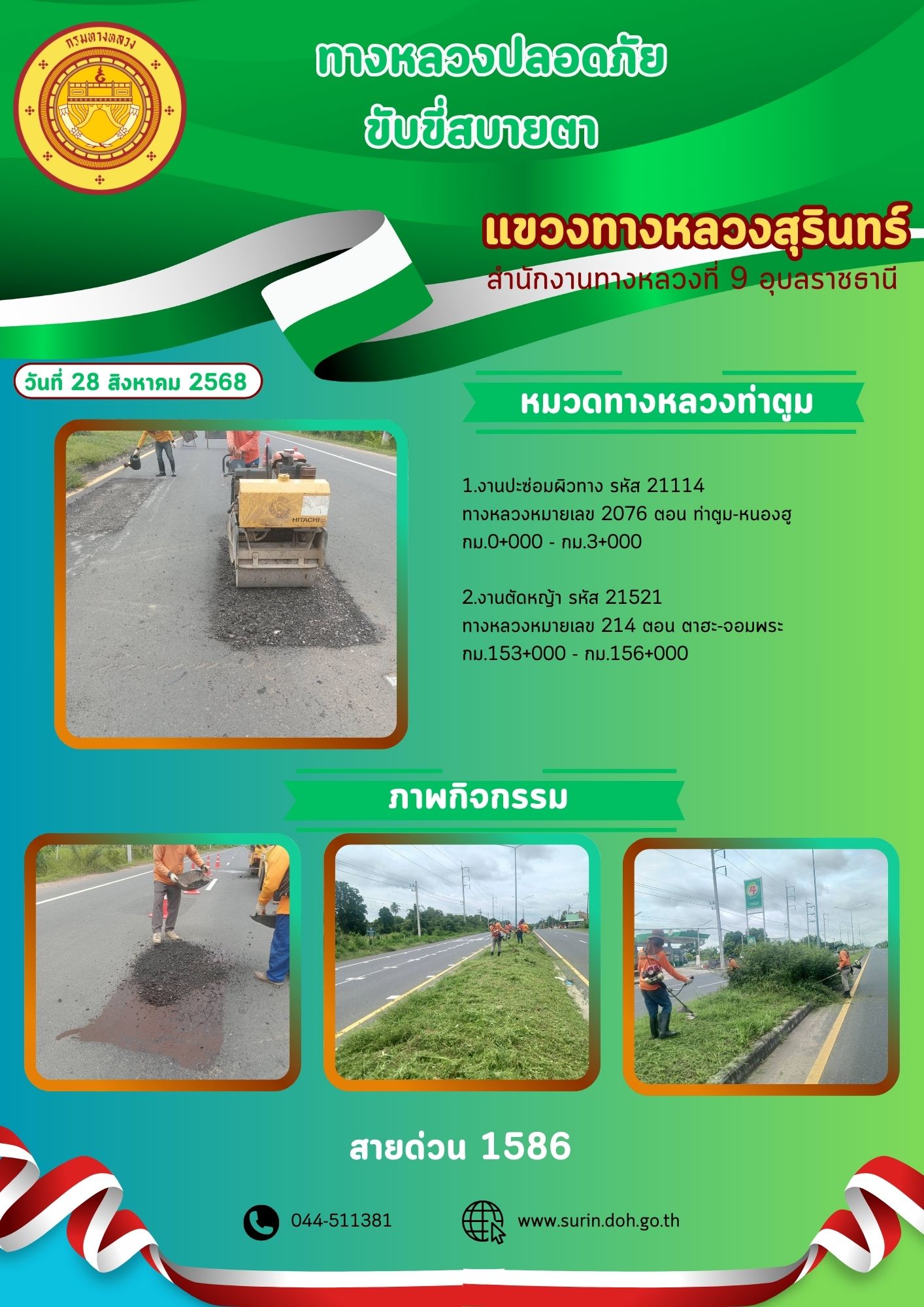 ข้อมูลข่าว : ทางหลวงปลอดภัย ขับขี่สบายตา 28 สิงหาคม 2568