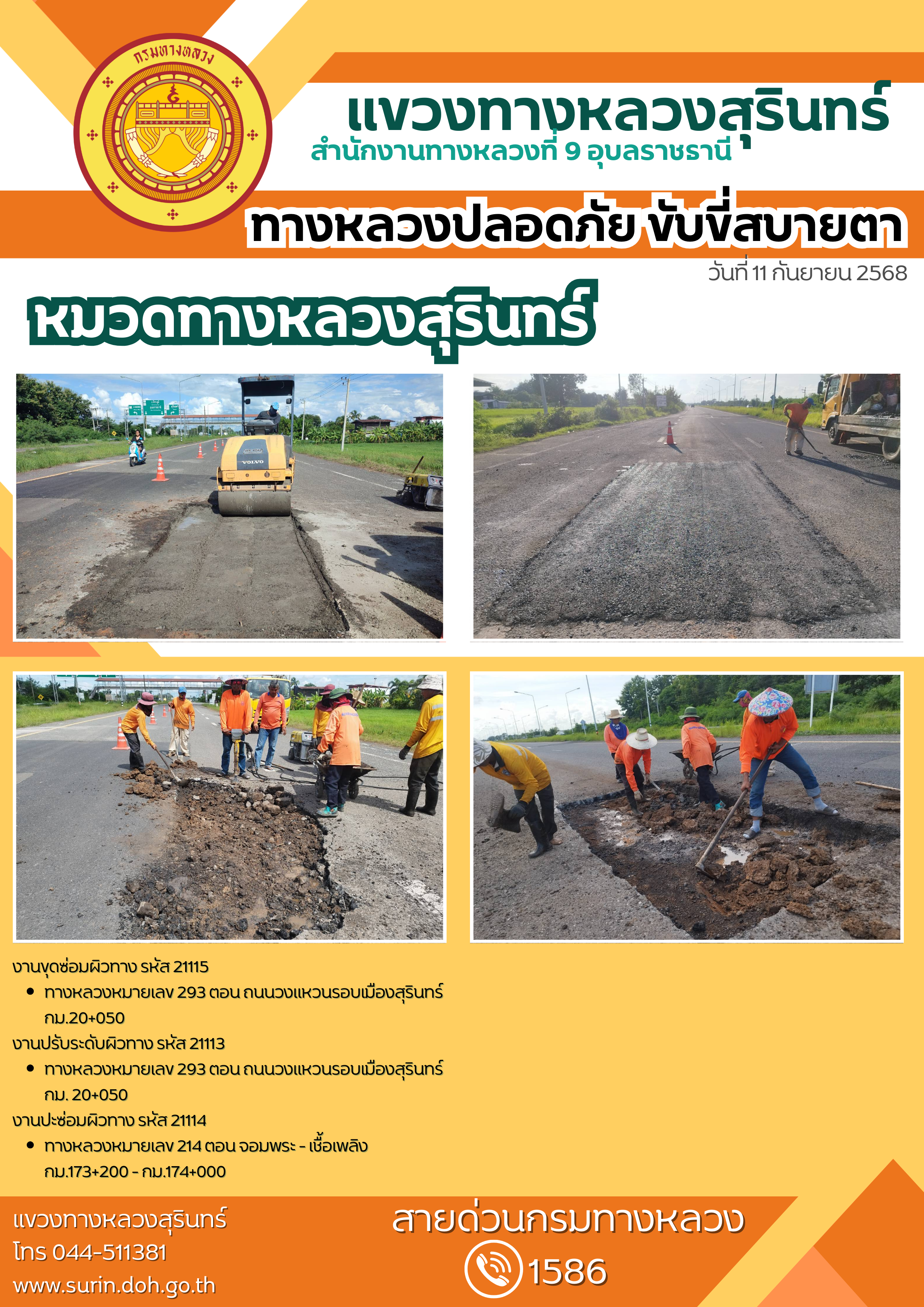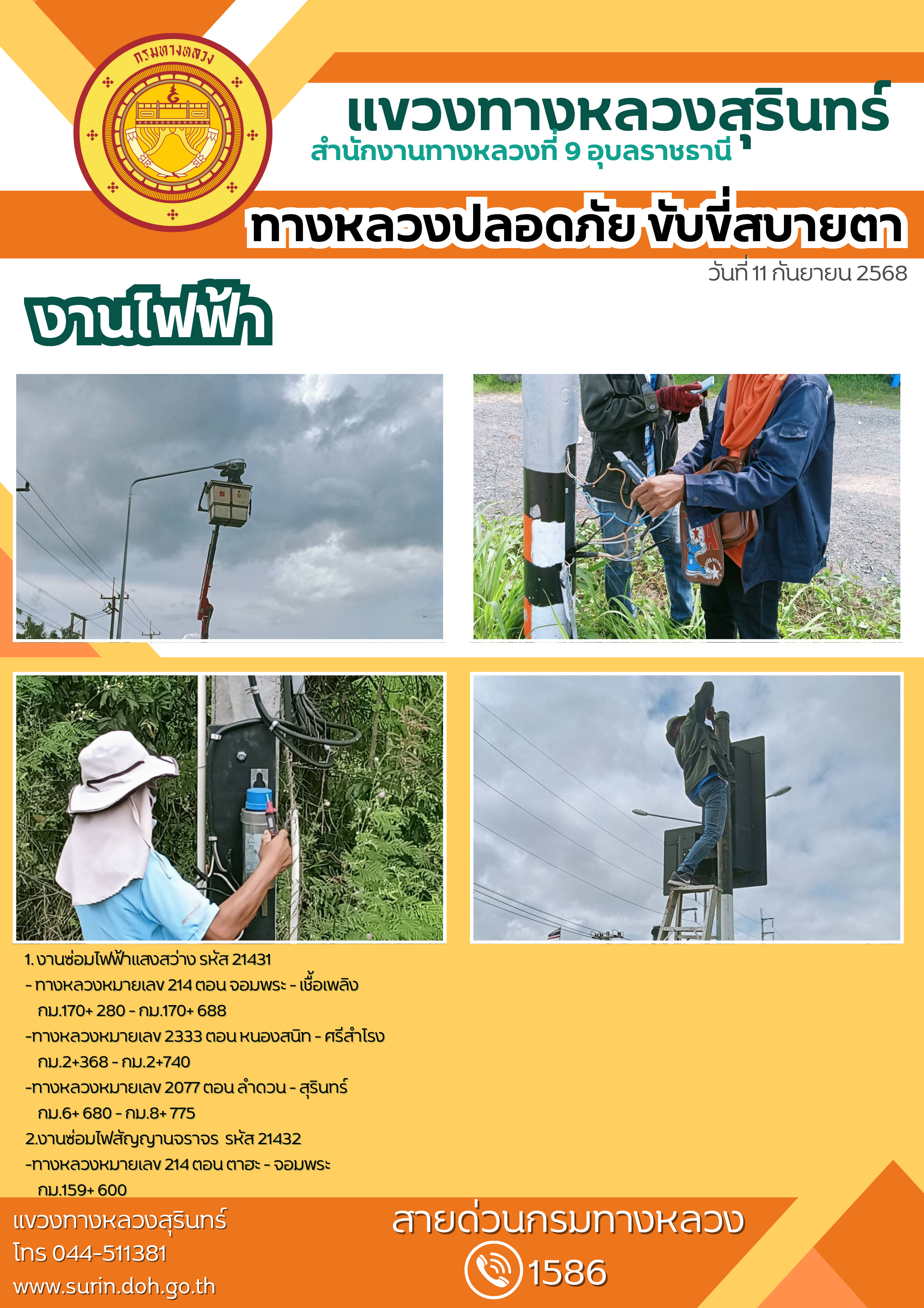 ข้อมูลข่าว : ทางหลวงปลอดภัย ขับขี่สบายตา 11 กันยายน 2568