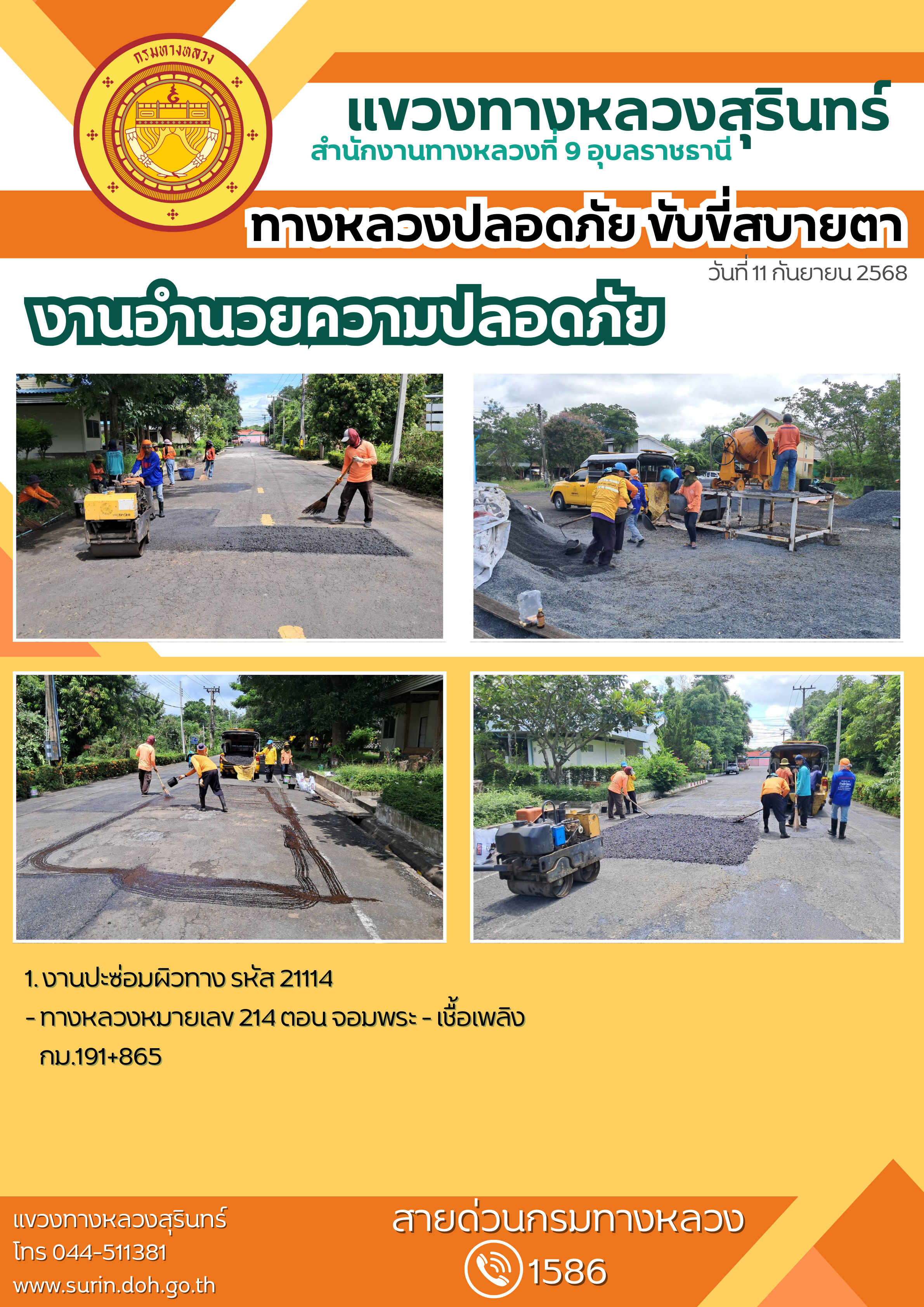 ทางหลวงปลอดภัย ขับขี่สบายตา 11 กันยายน 2568