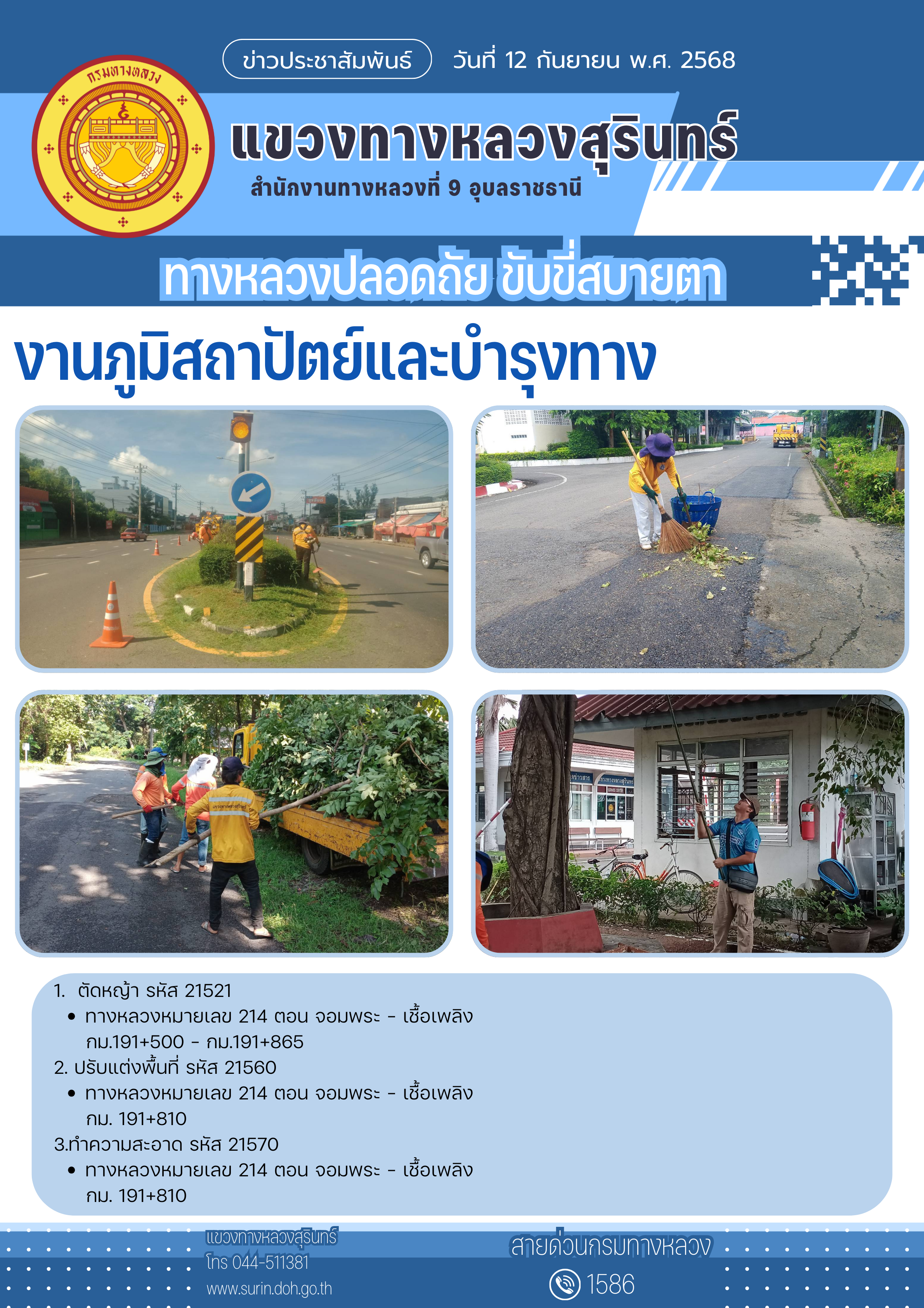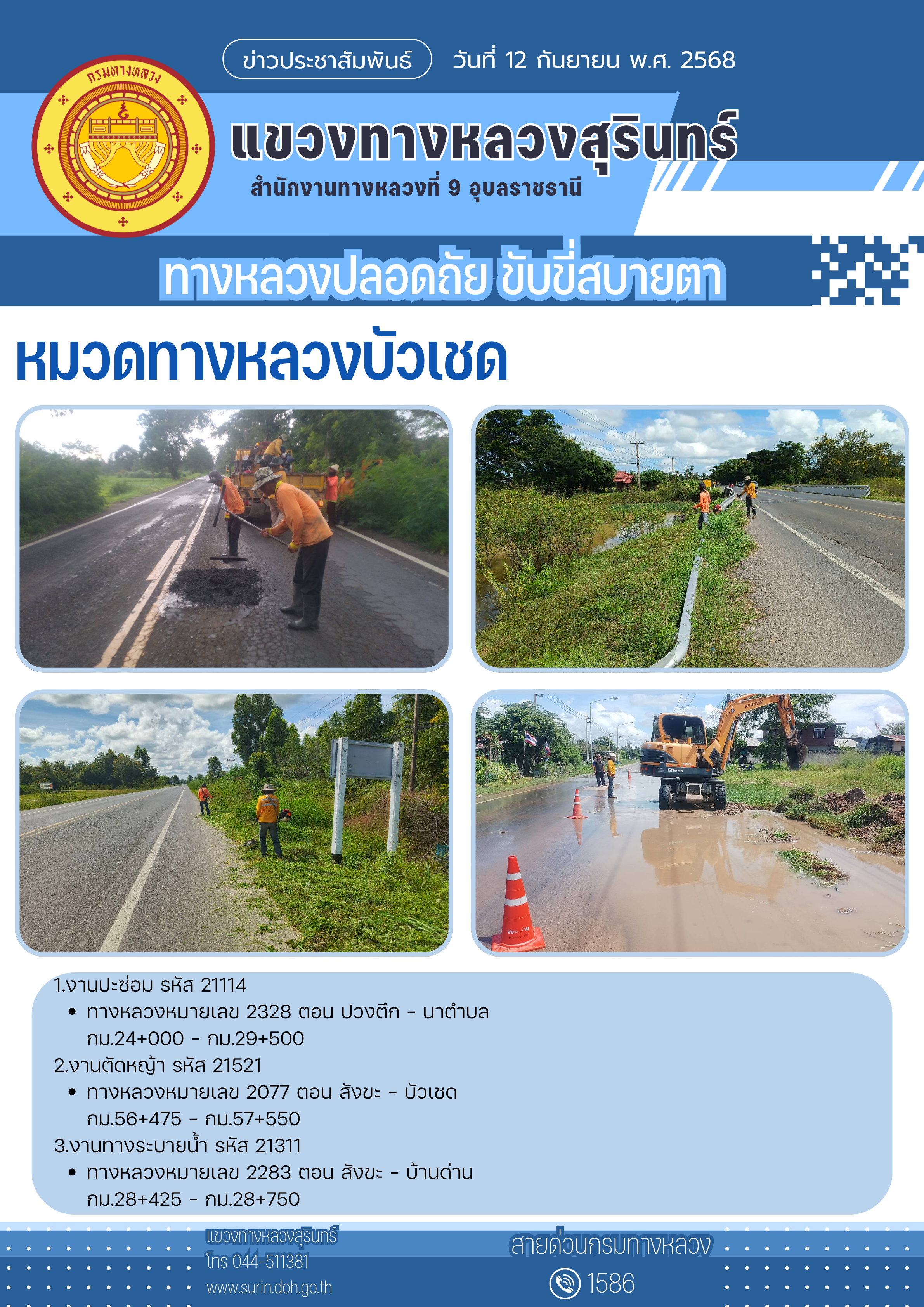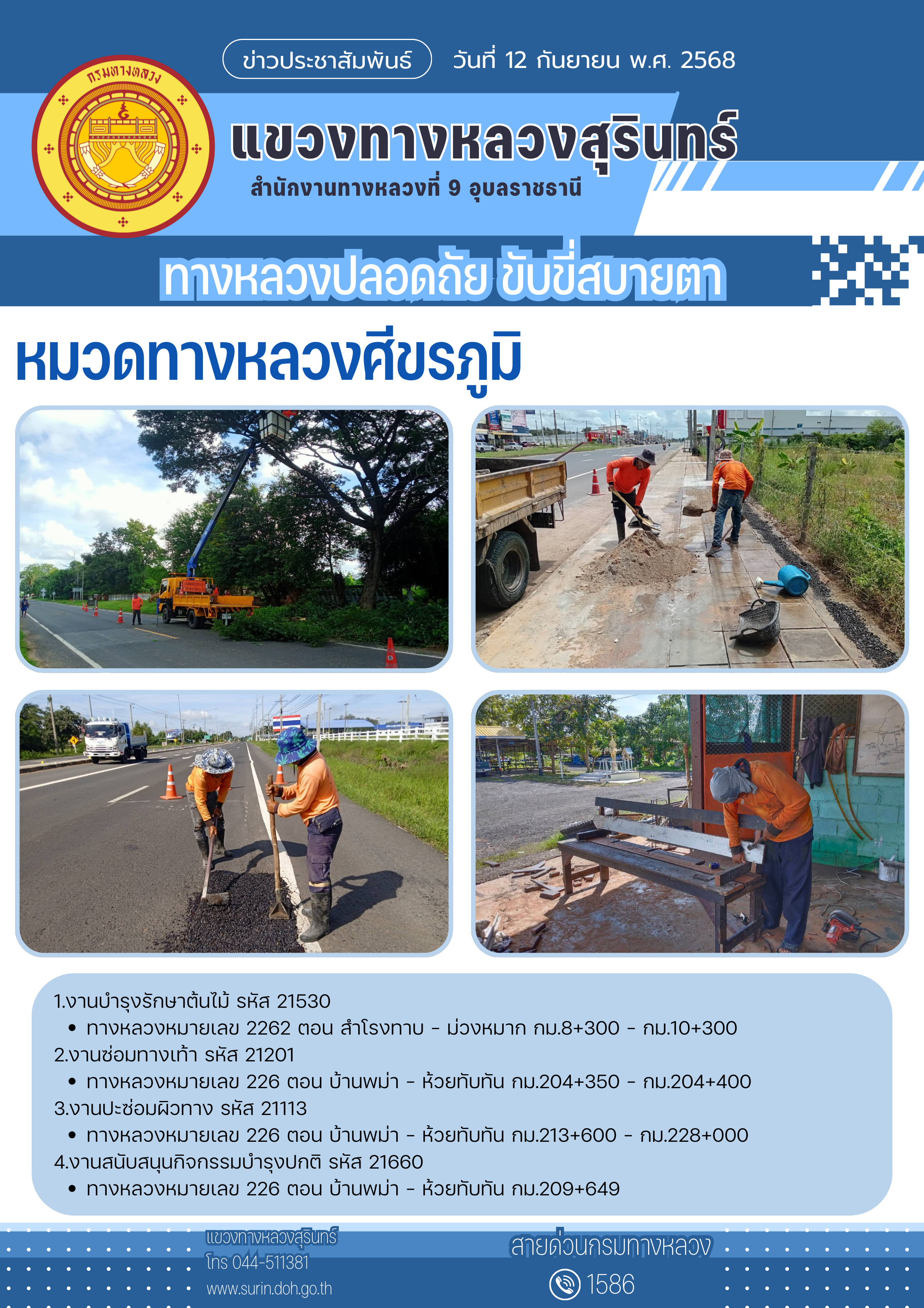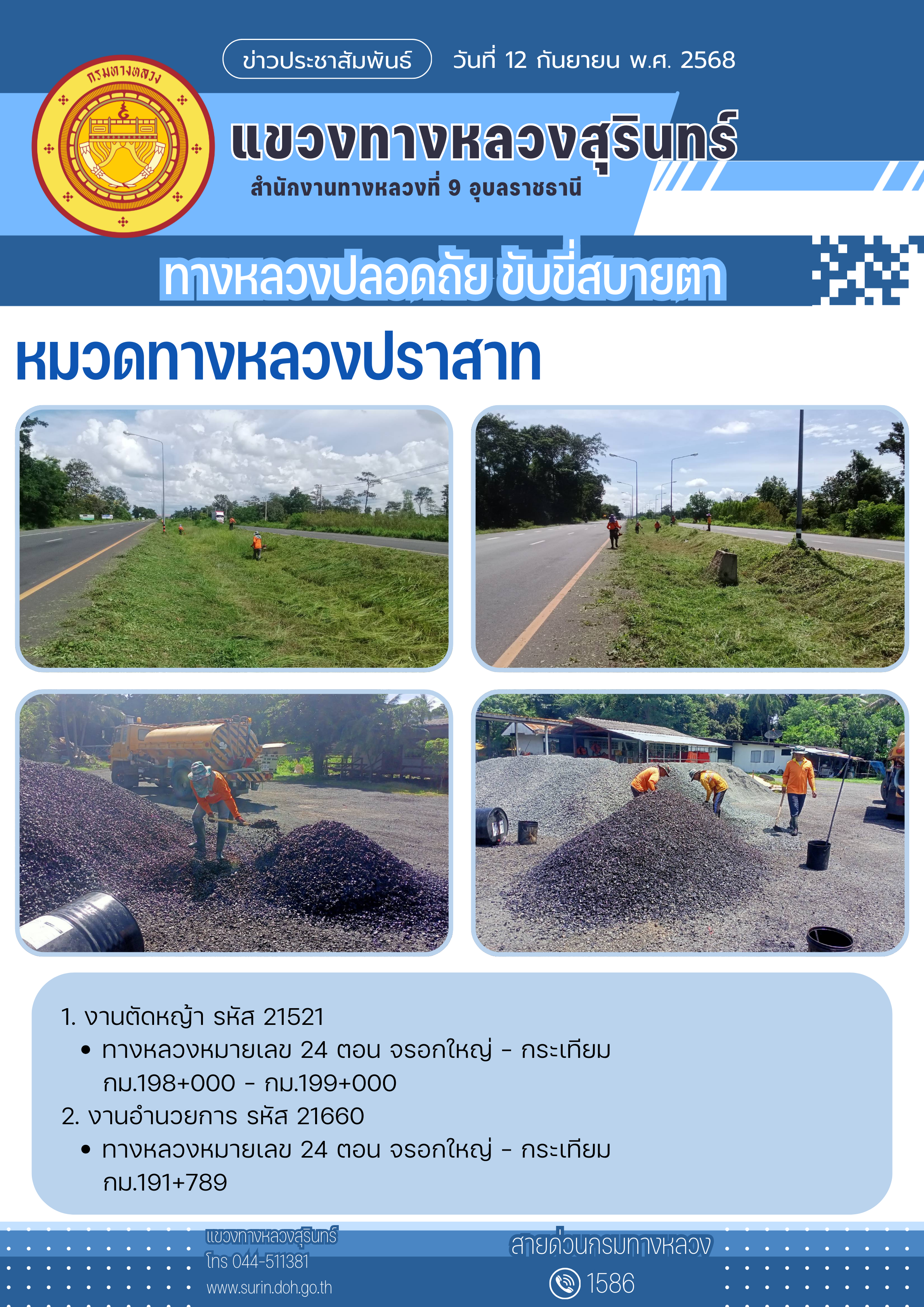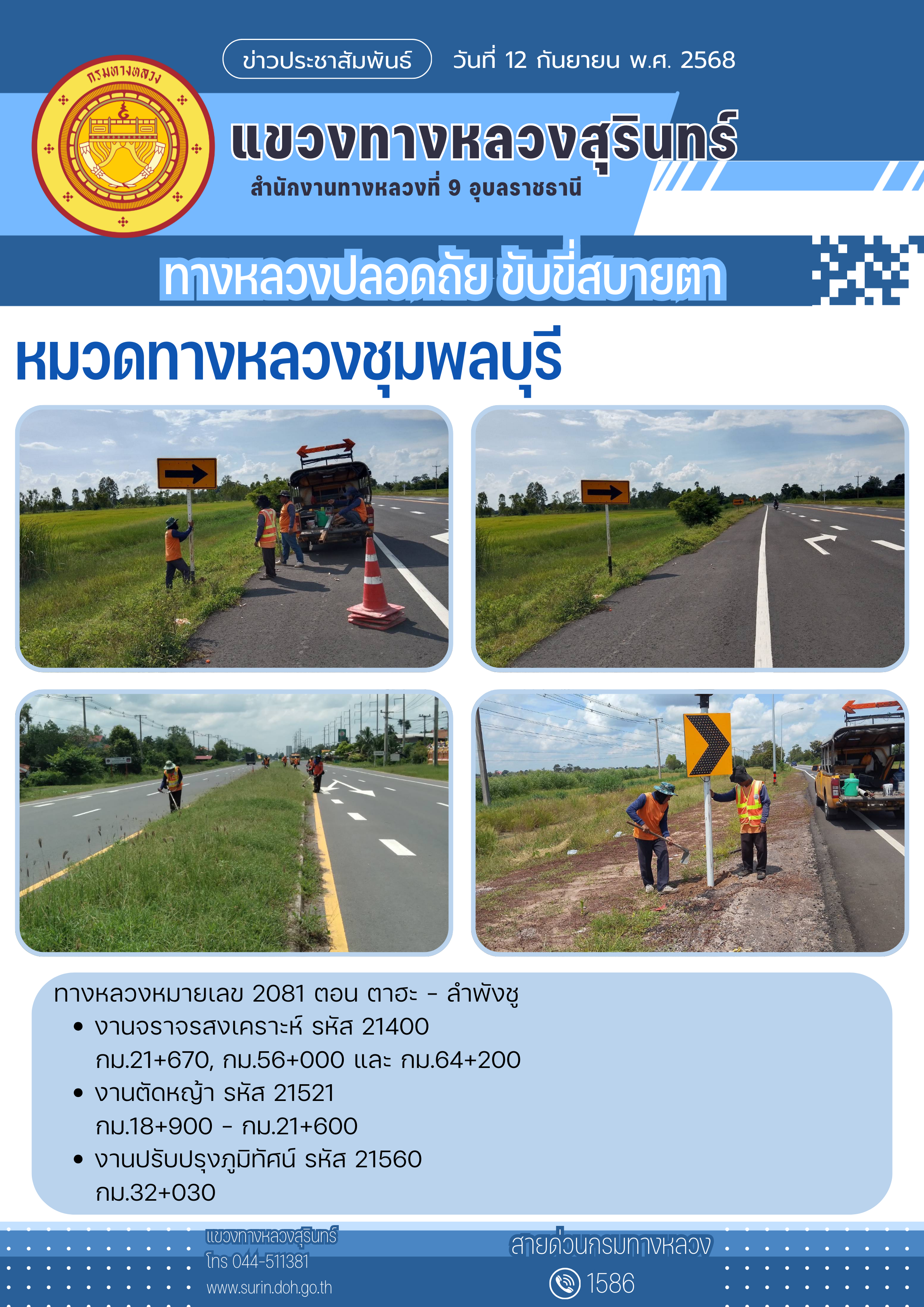 ทางหลวงปลอดภัย ขับขี่สบายตา 12 กันยายน 2568