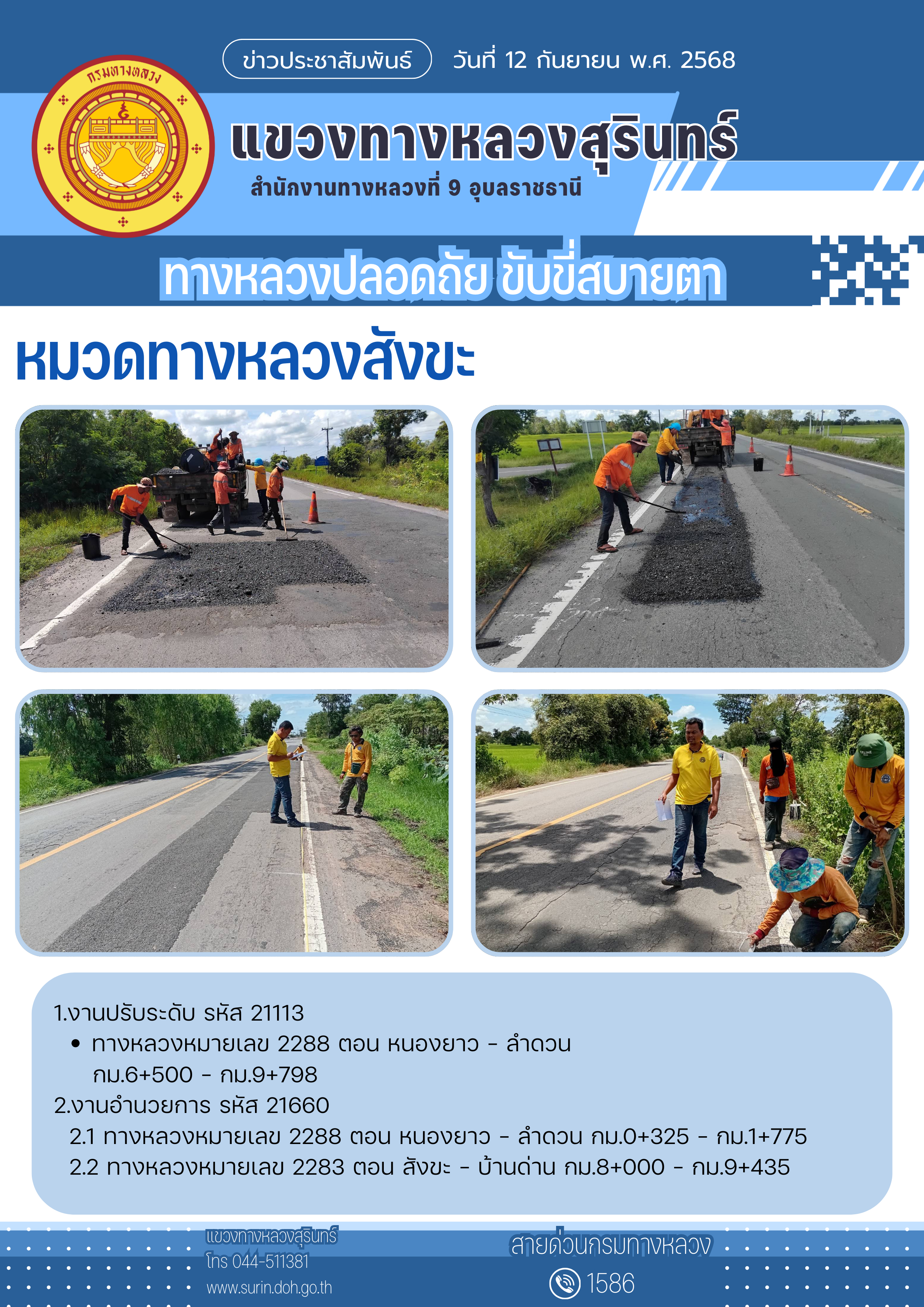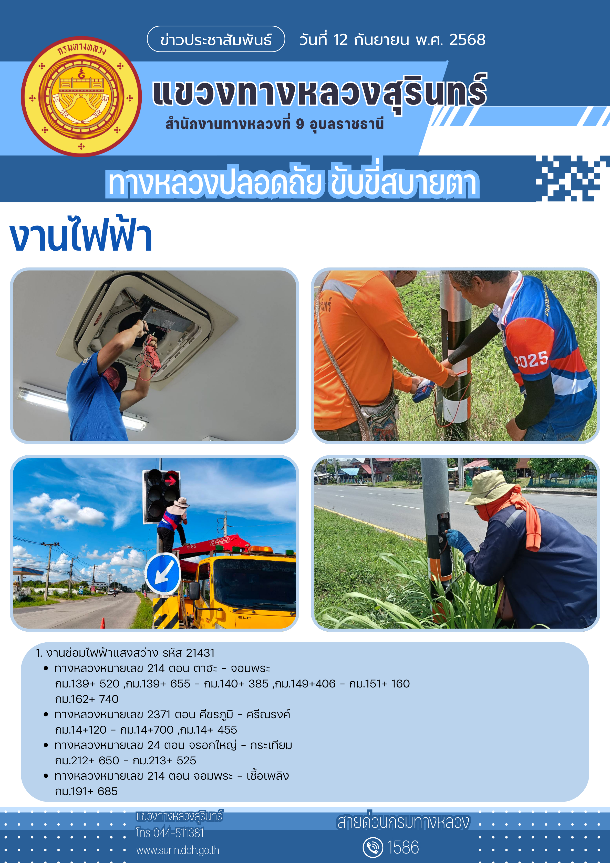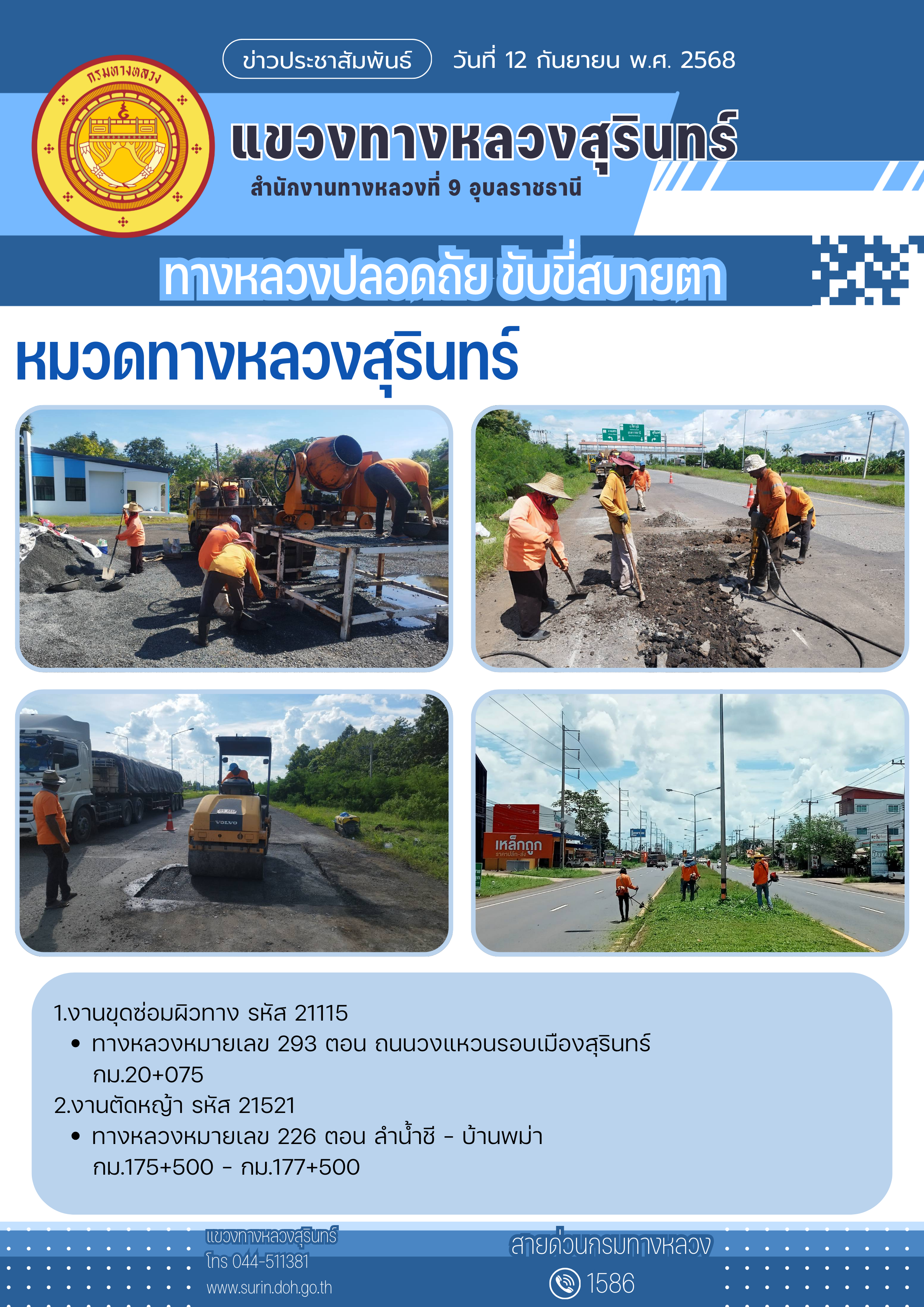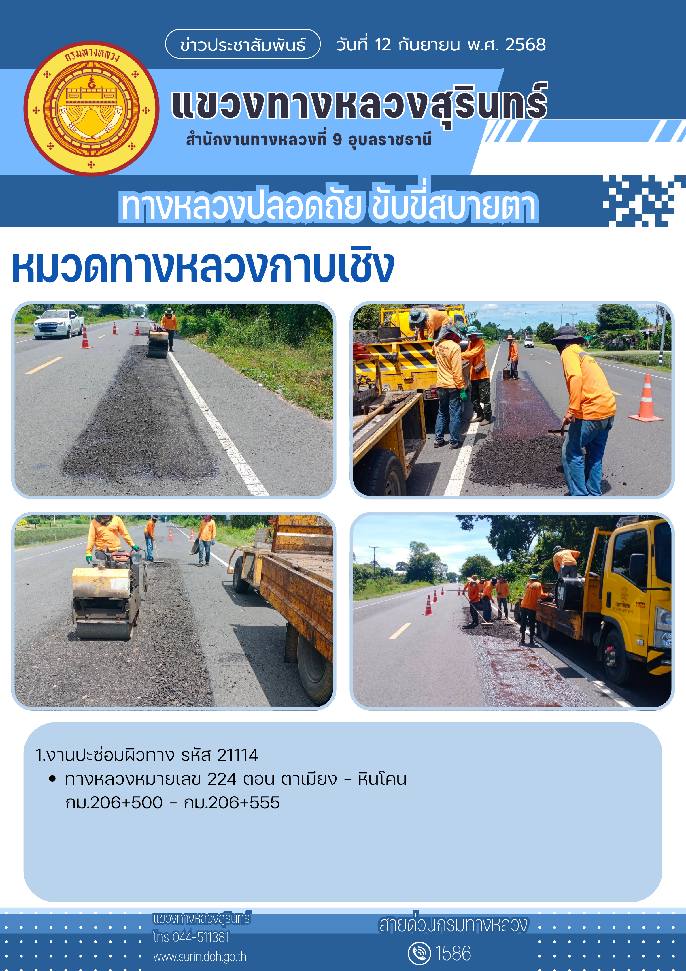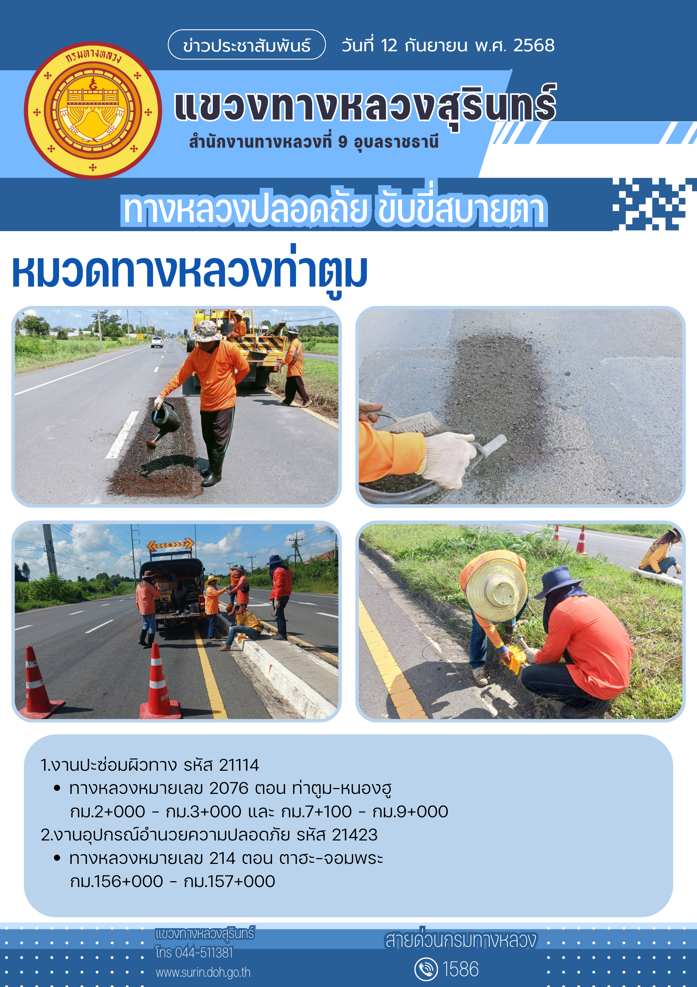 ทางหลวงปลอดภัย ขับขี่สบายตา 12 กันยายน 2568