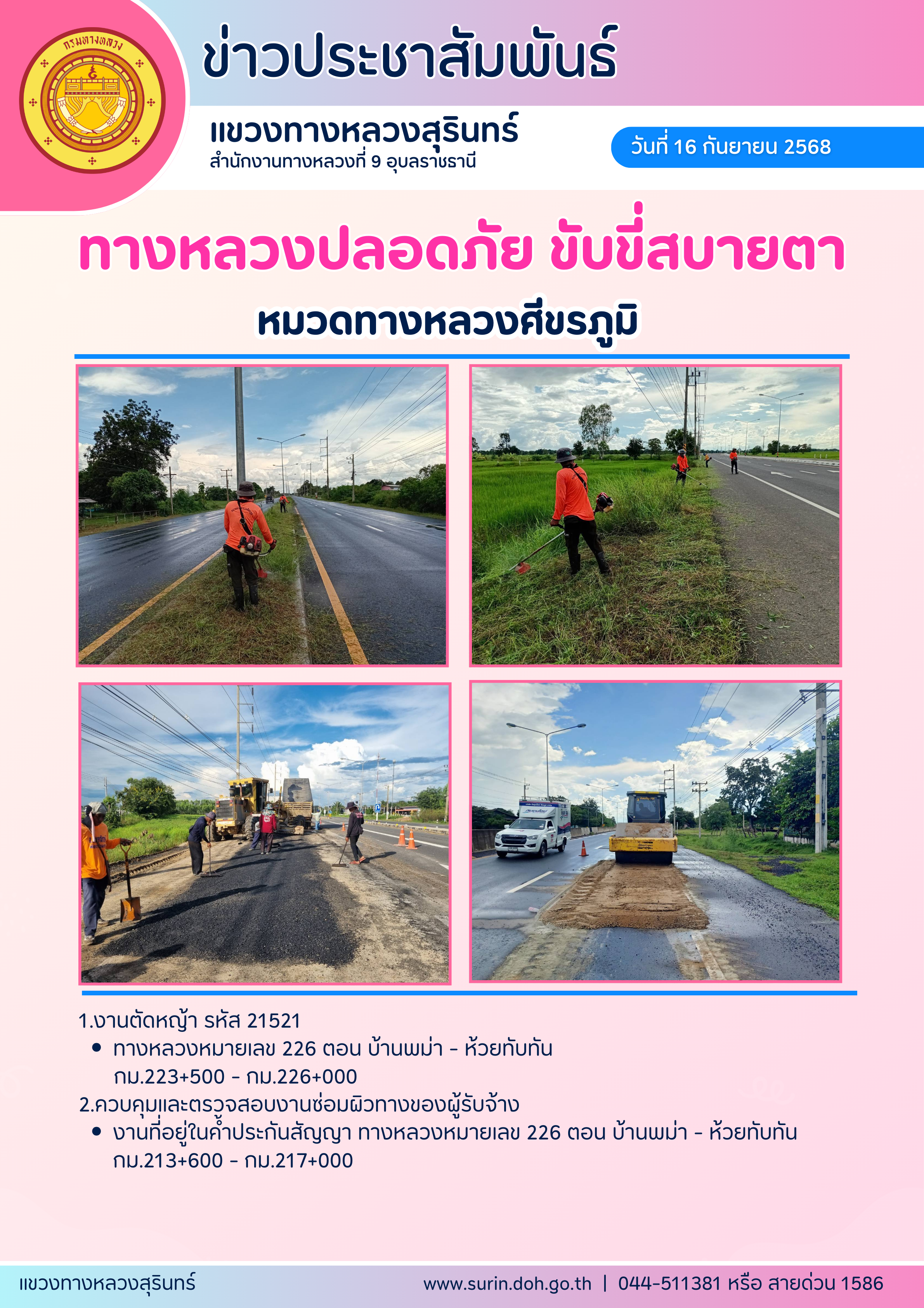 ทางหลวงปลอดภัย ขับขี่สบายตา 16 กันยายน 2568