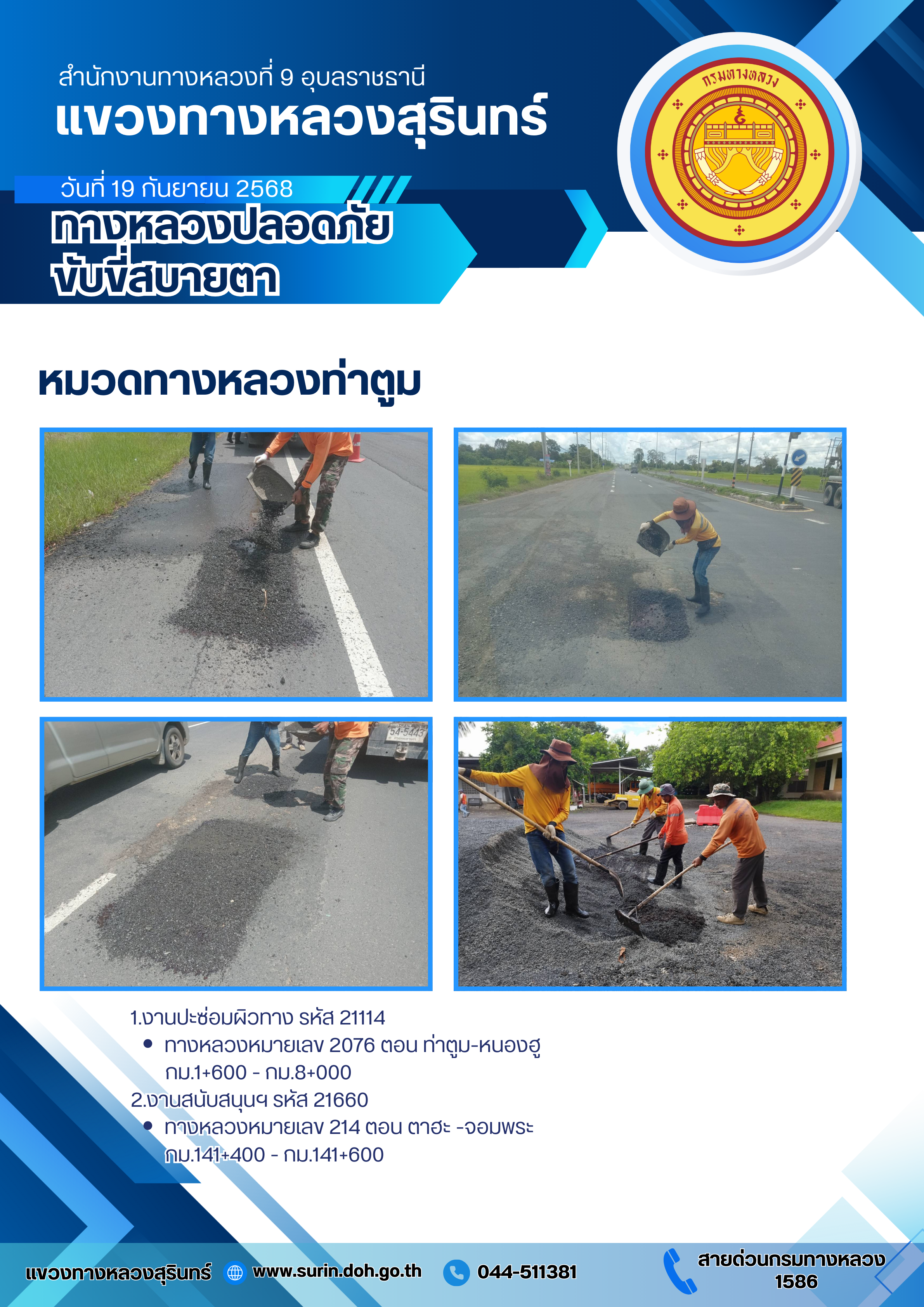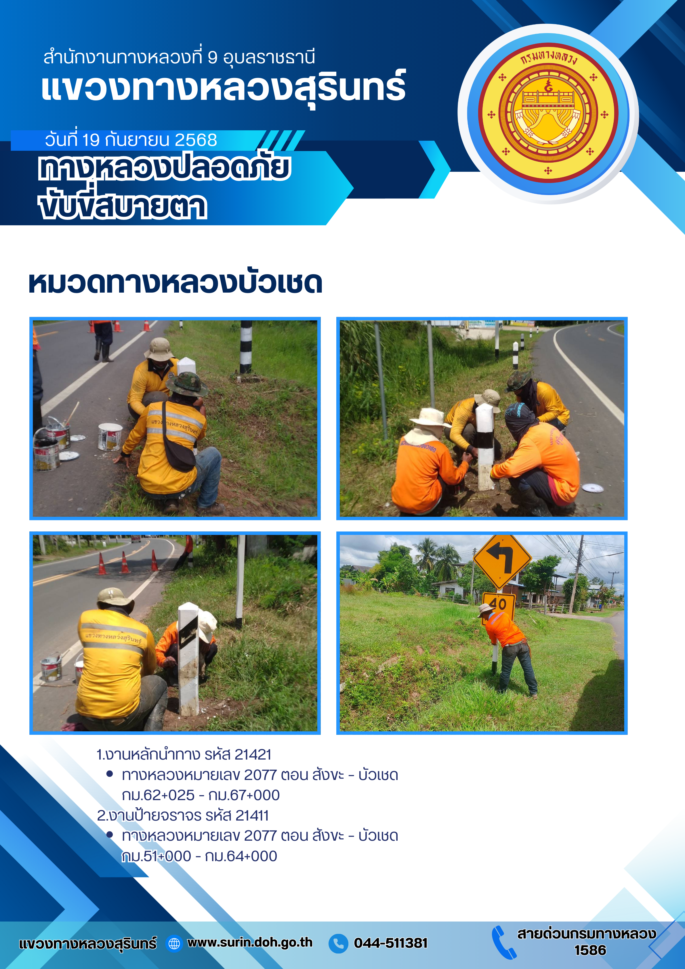 ข้อมูลข่าว : ทางหลวงปลอดภัย ขับขี่สบายตา 19 กันยายน 2568