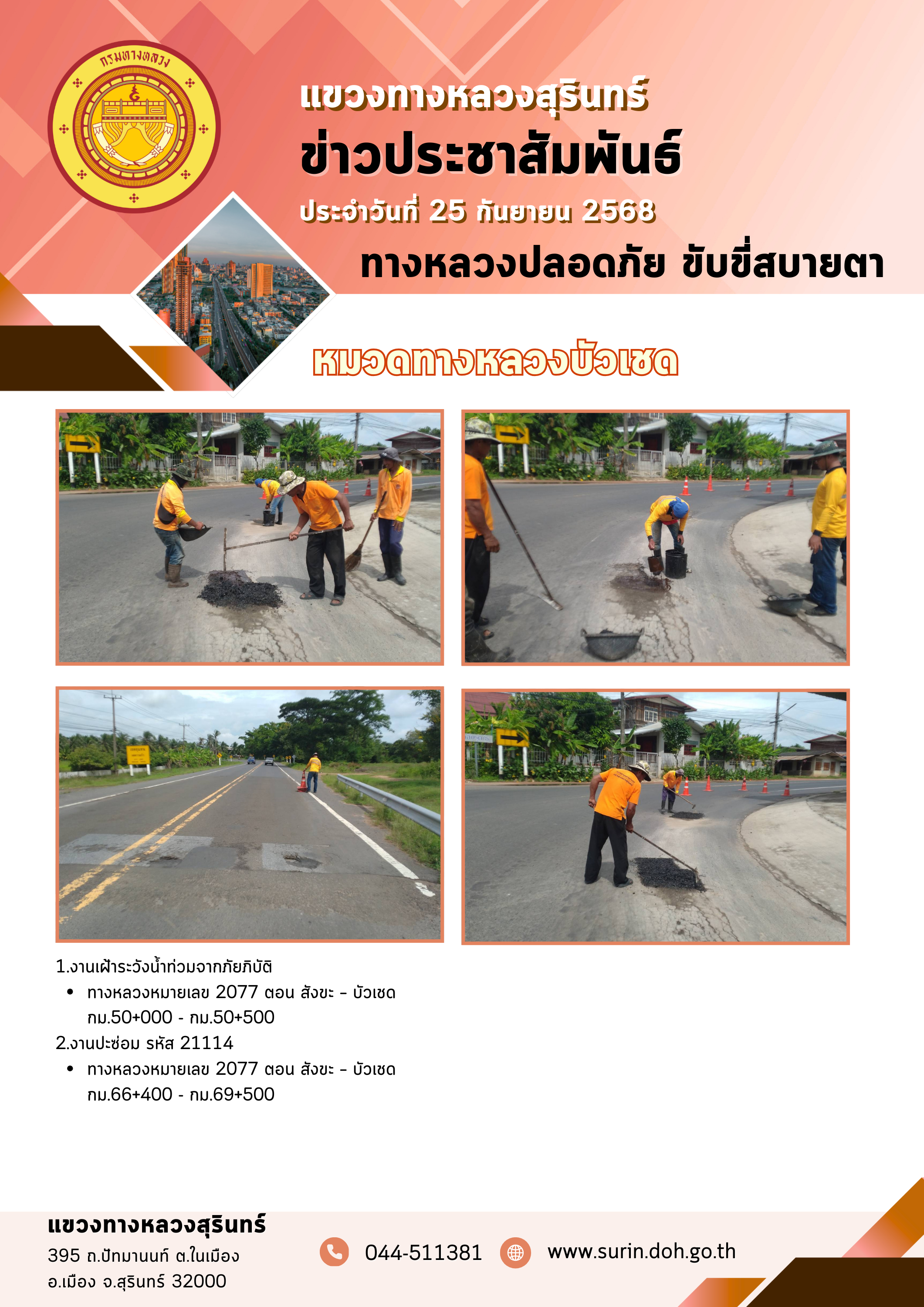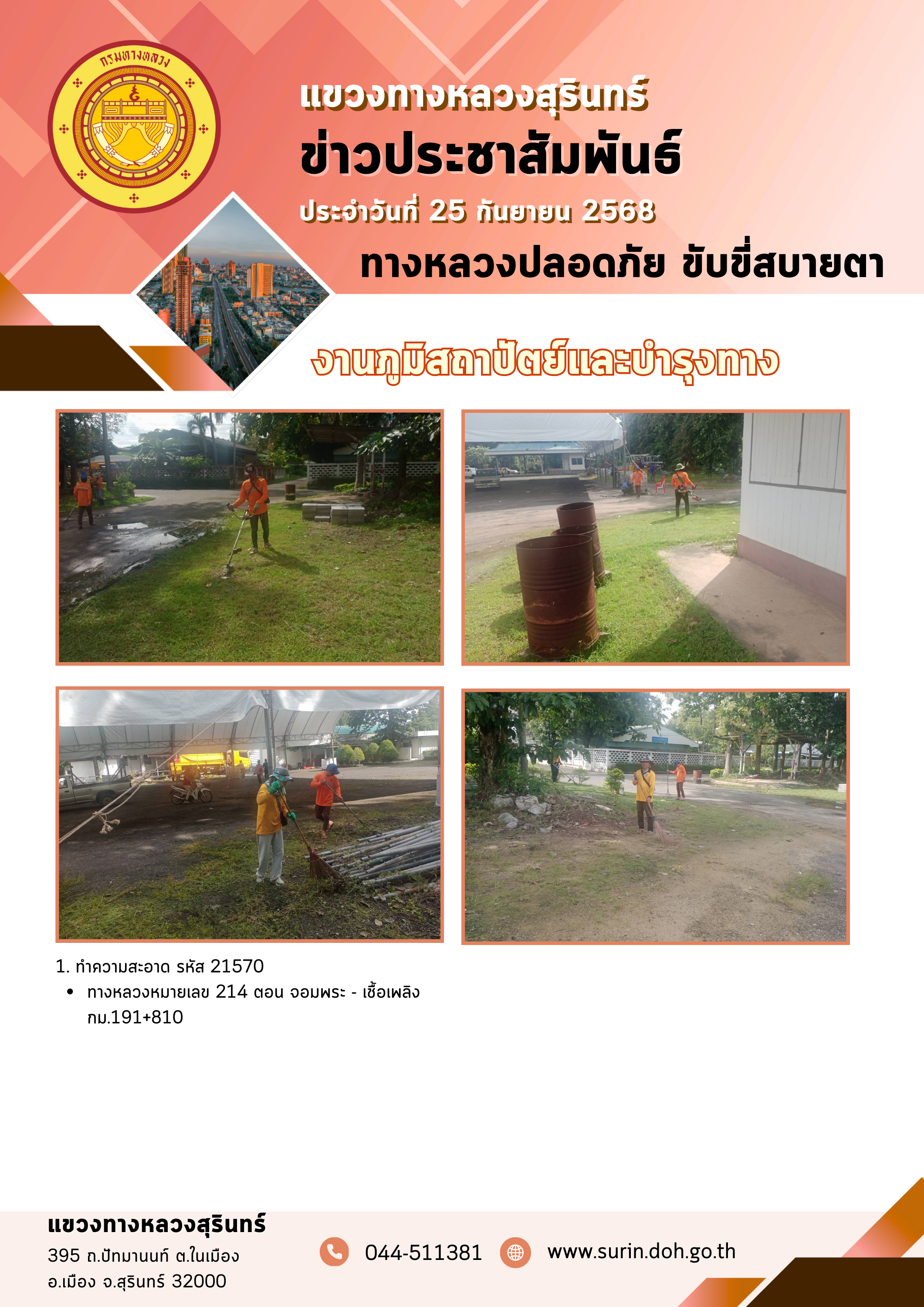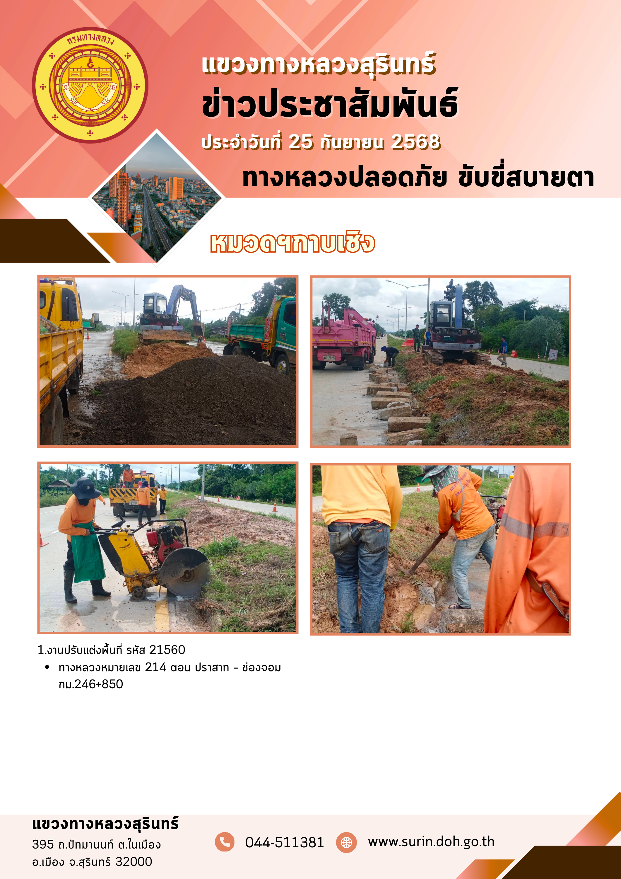 ข้อมูลข่าว : ทางหลวงปลอดภัย ขับขี่สบายตา 25 กันยายน 2568