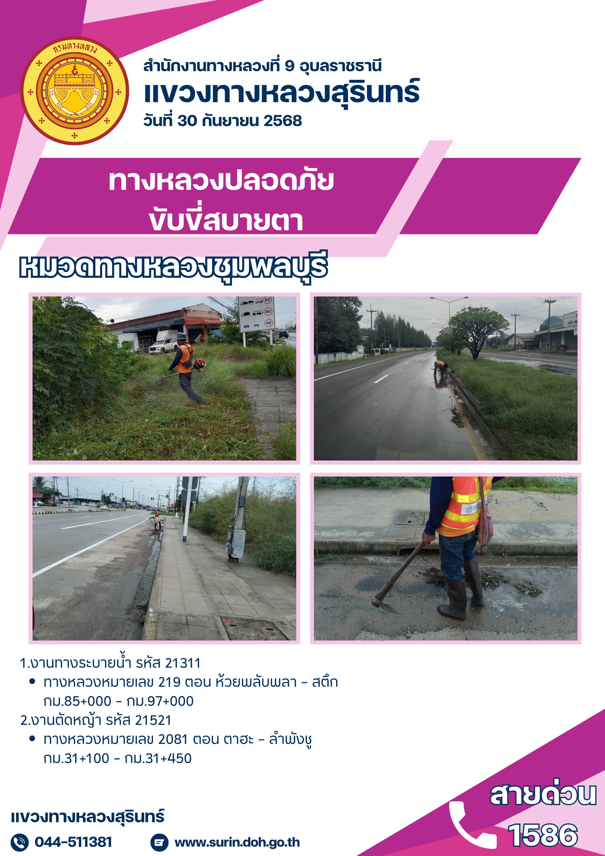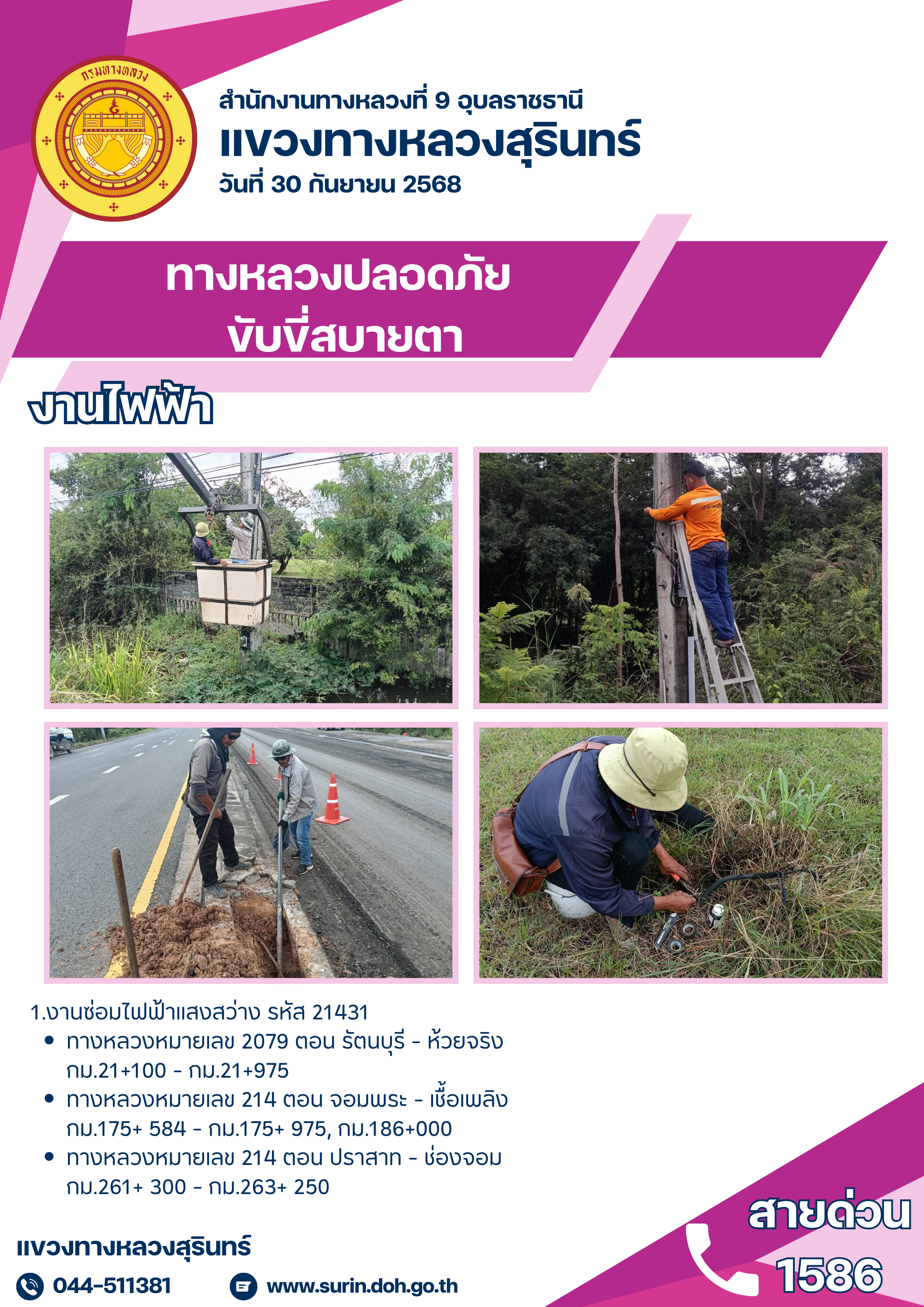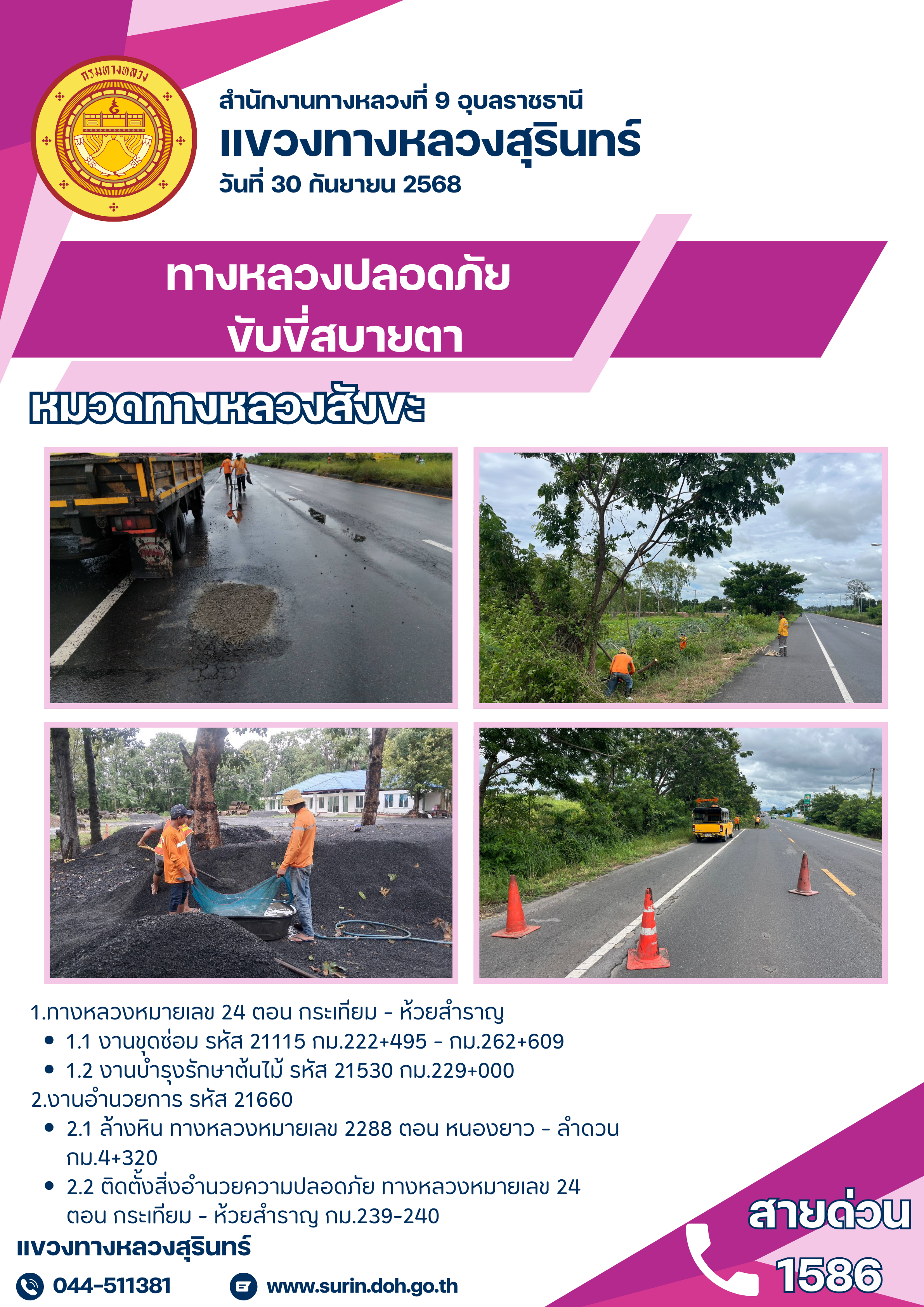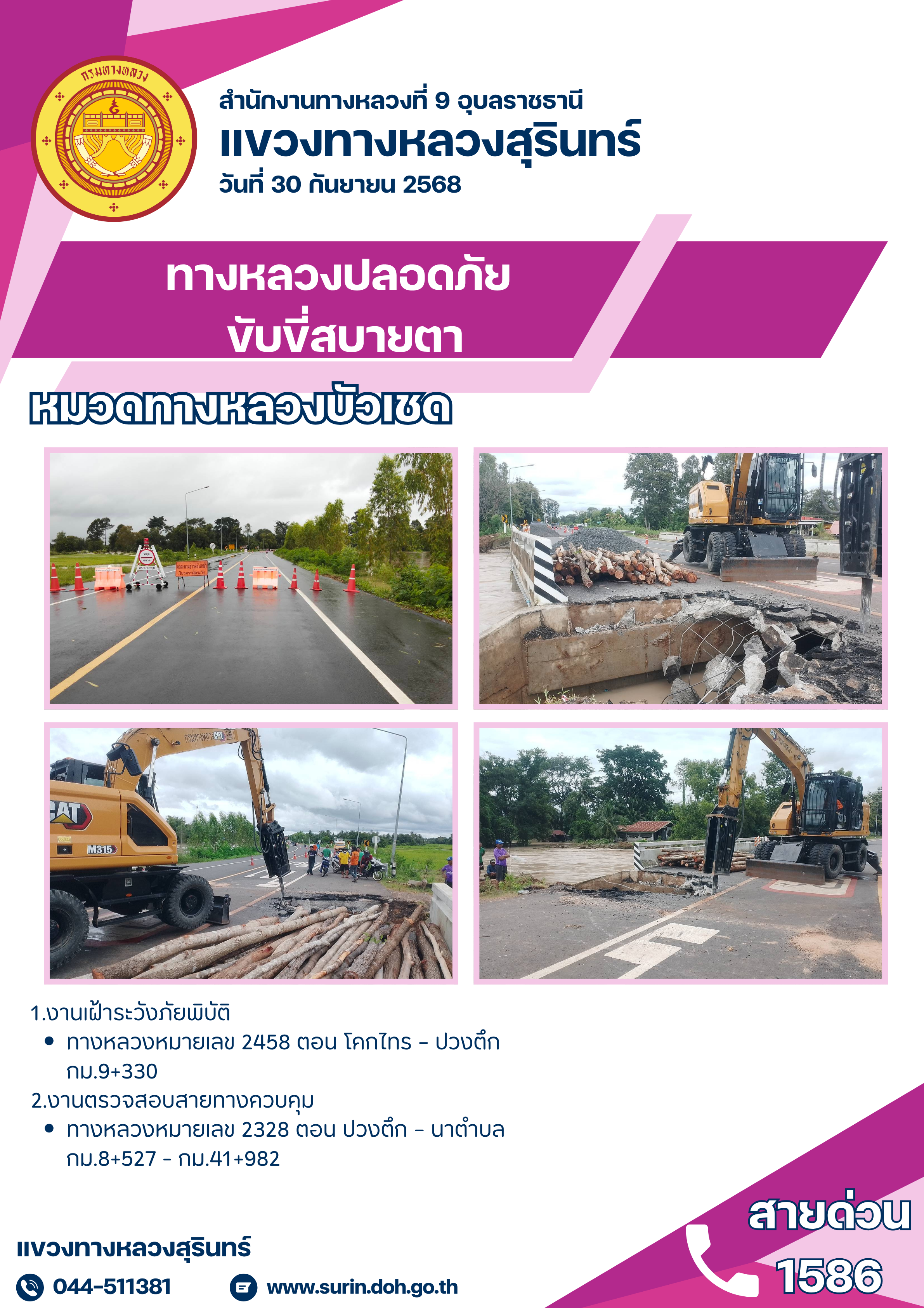 ข้อมูลข่าว : ทางหลวงปลอดภัย ขับขี่สบายตา 30 กันยายน 2568