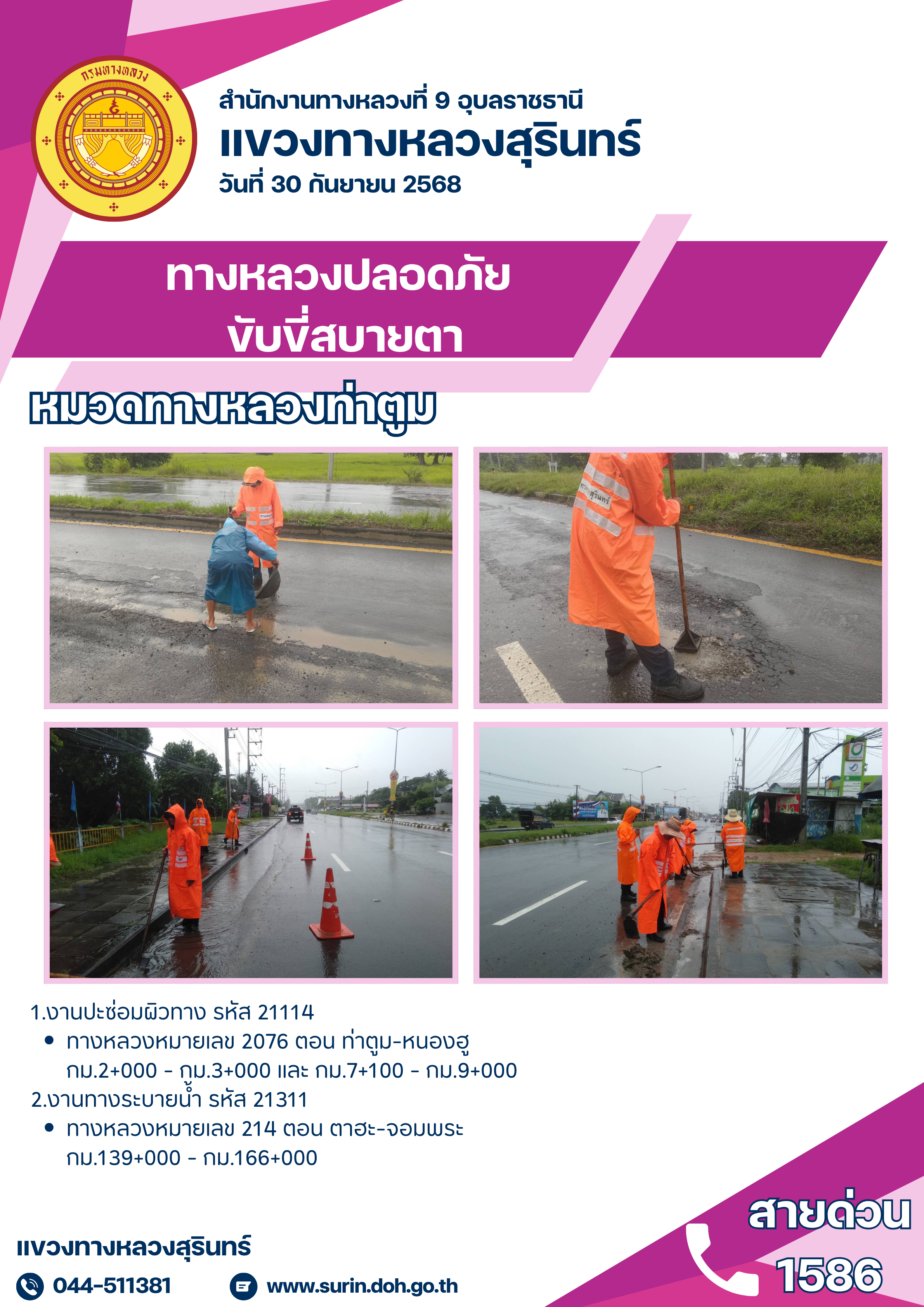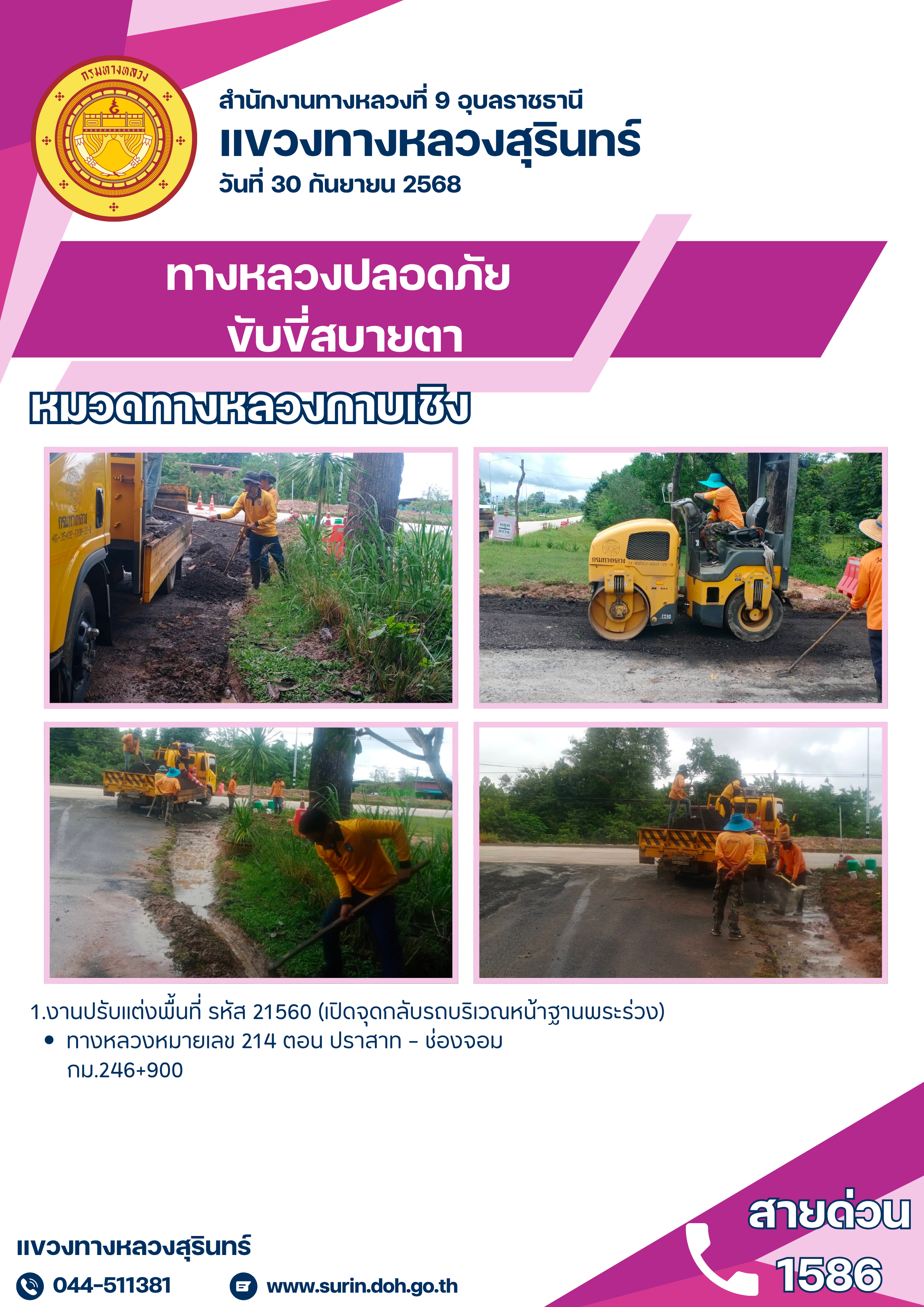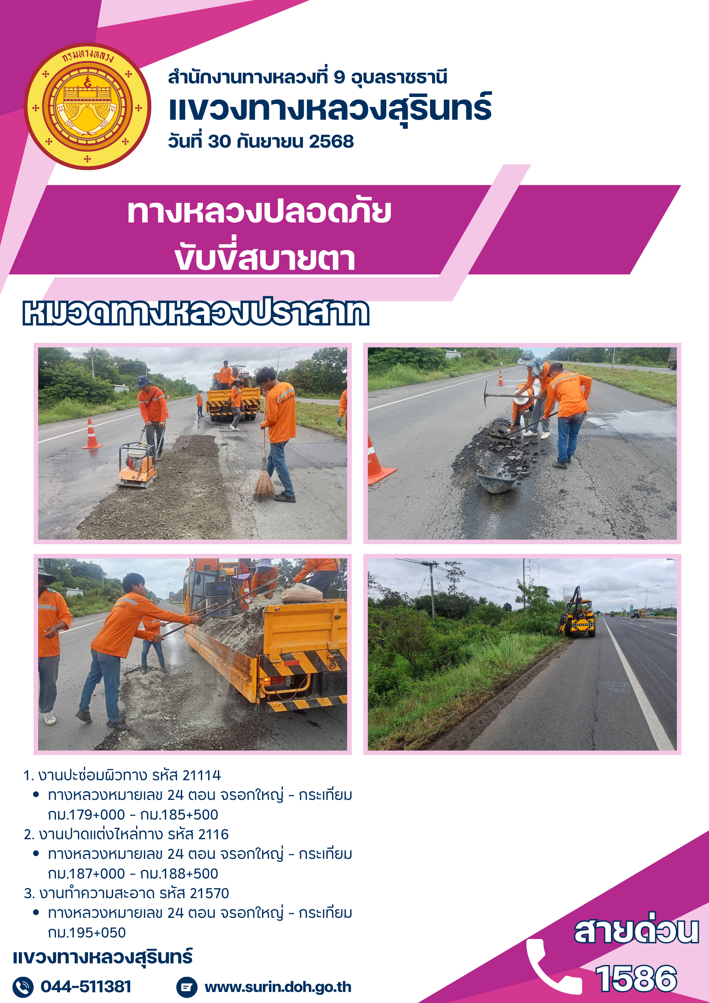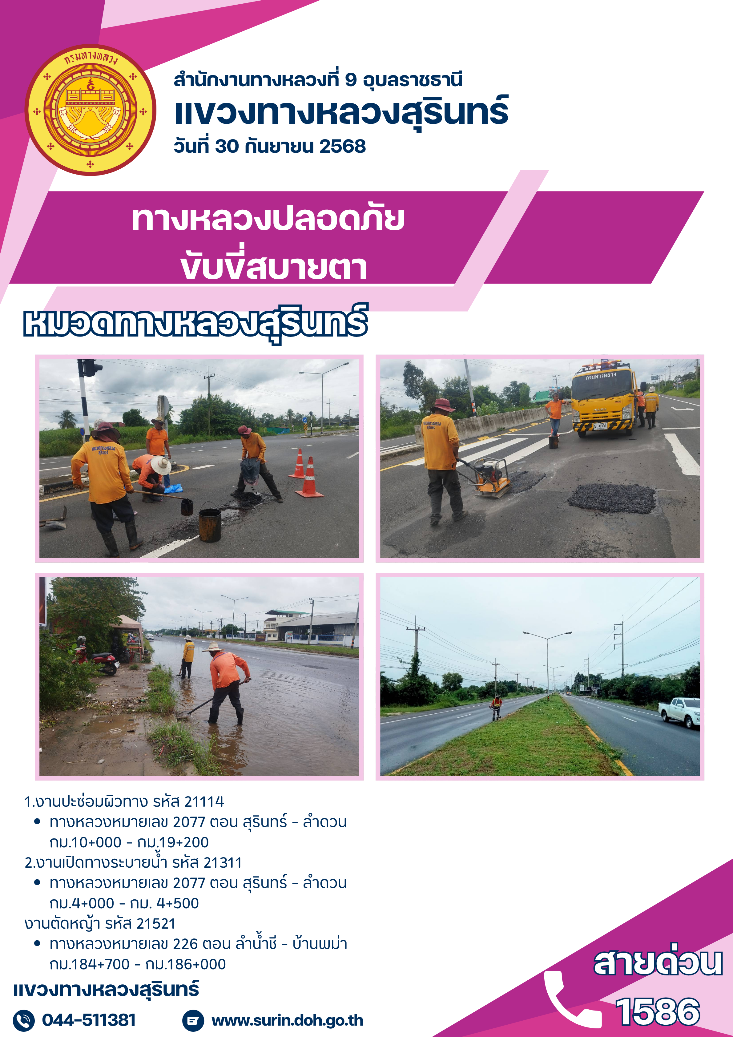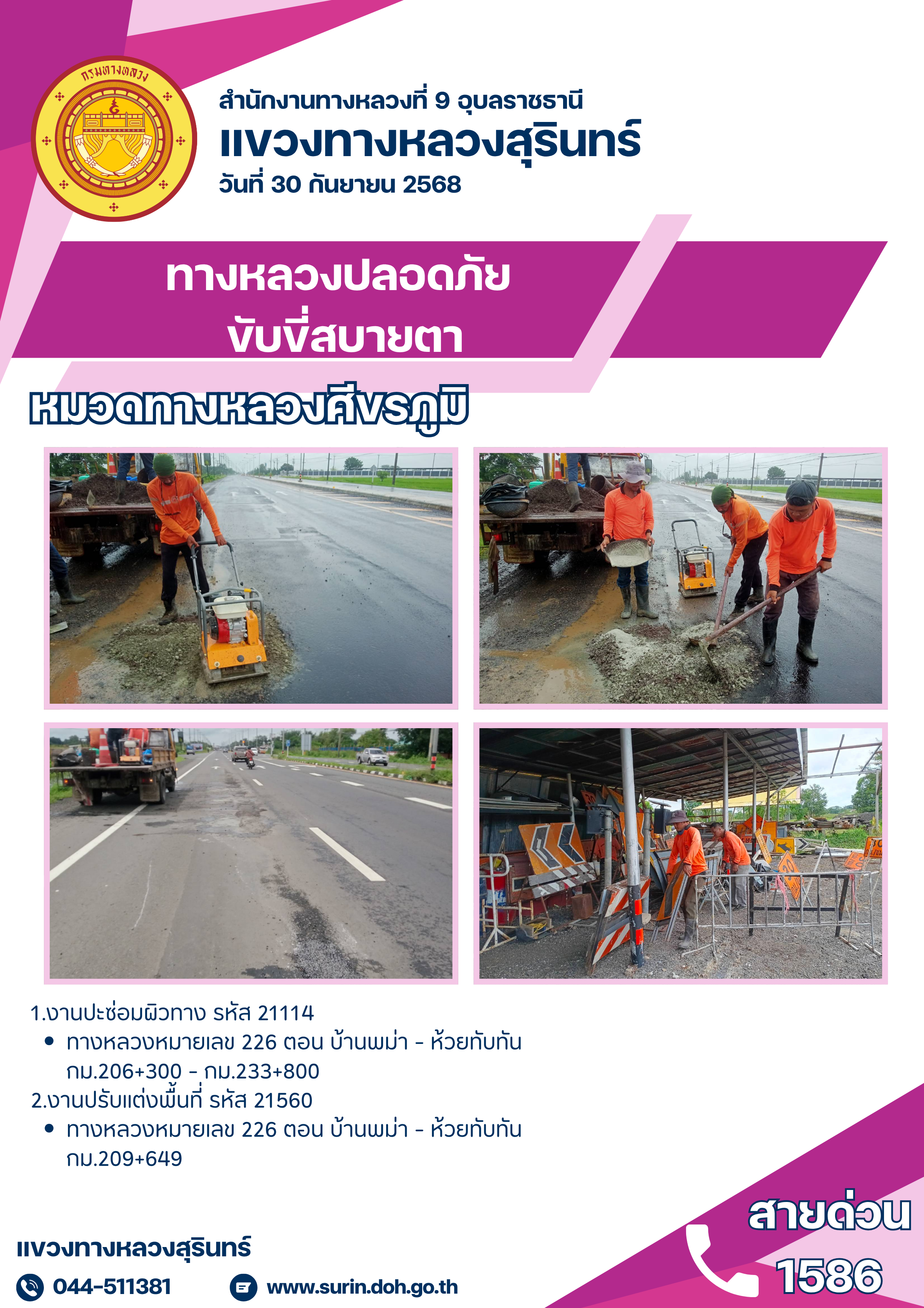 ข้อมูลข่าว : ทางหลวงปลอดภัย ขับขี่สบายตา 30 กันยายน 2568