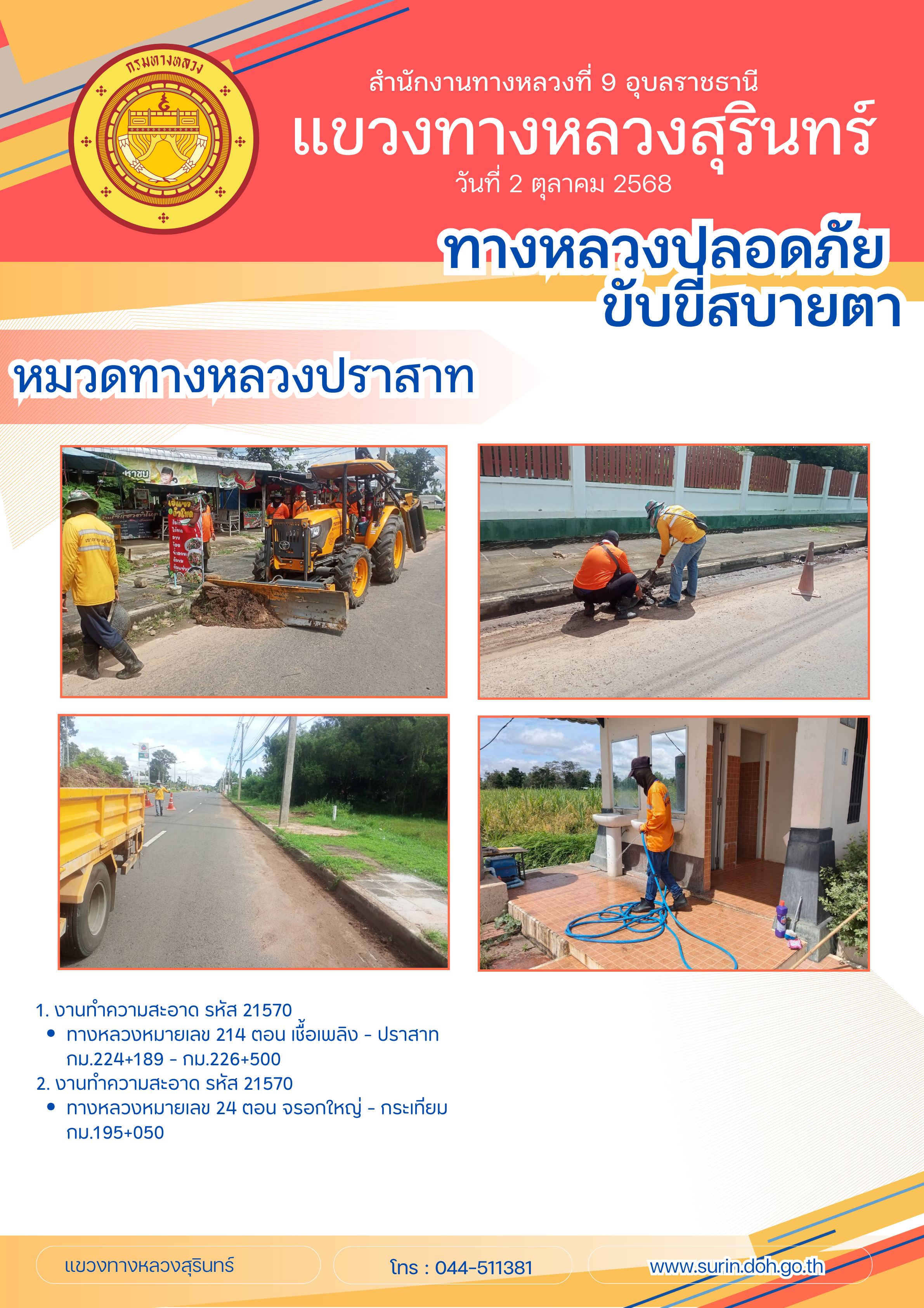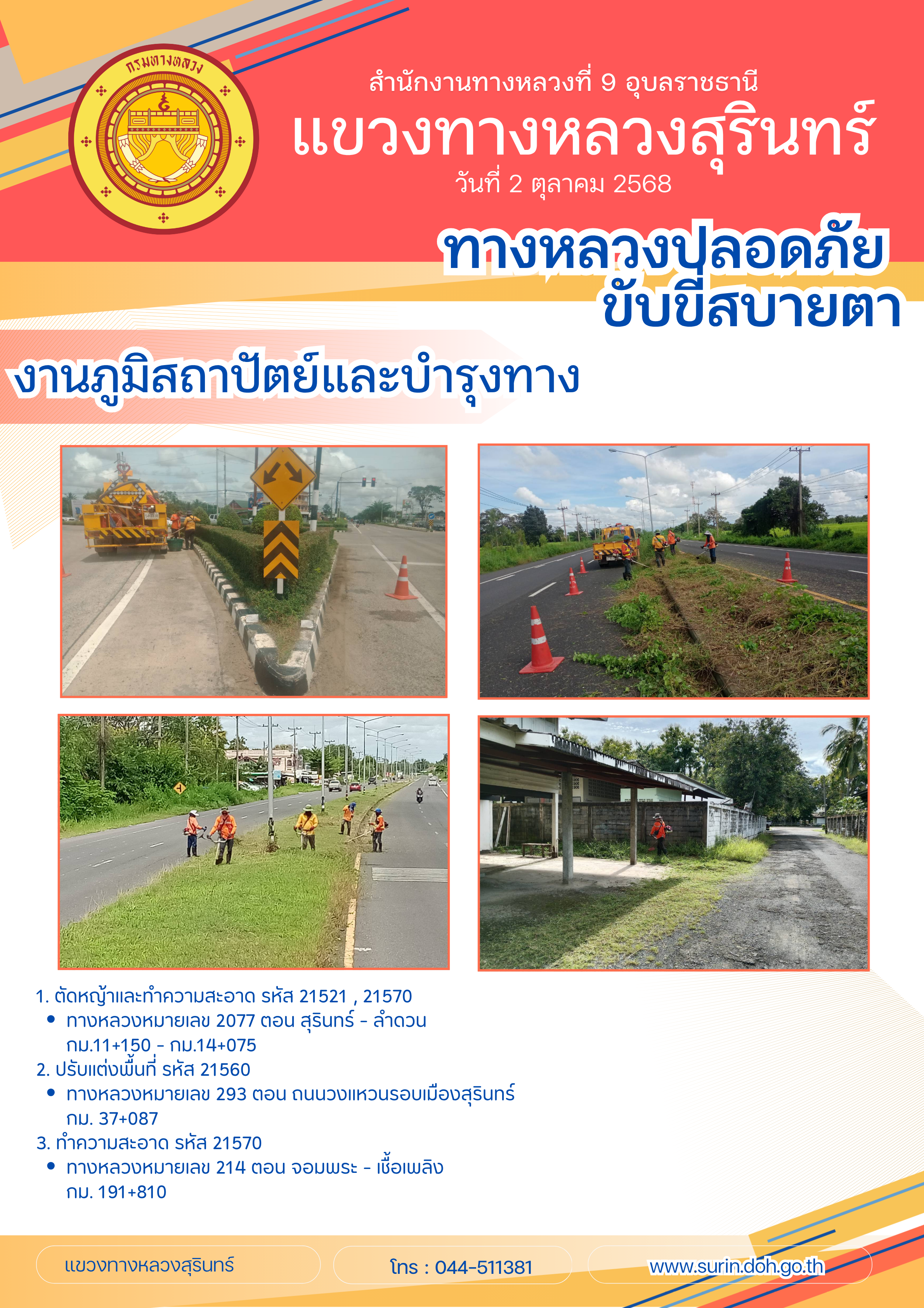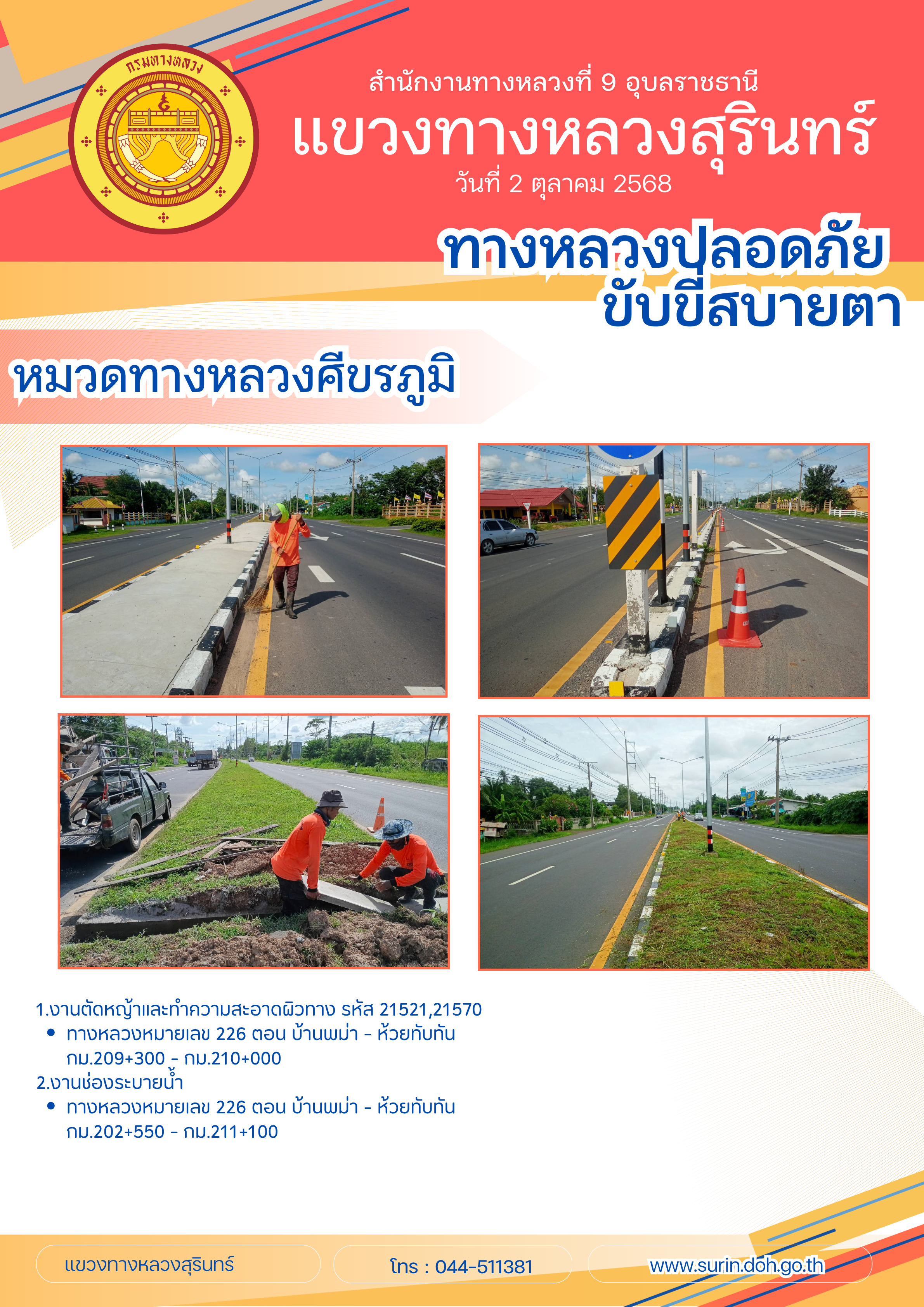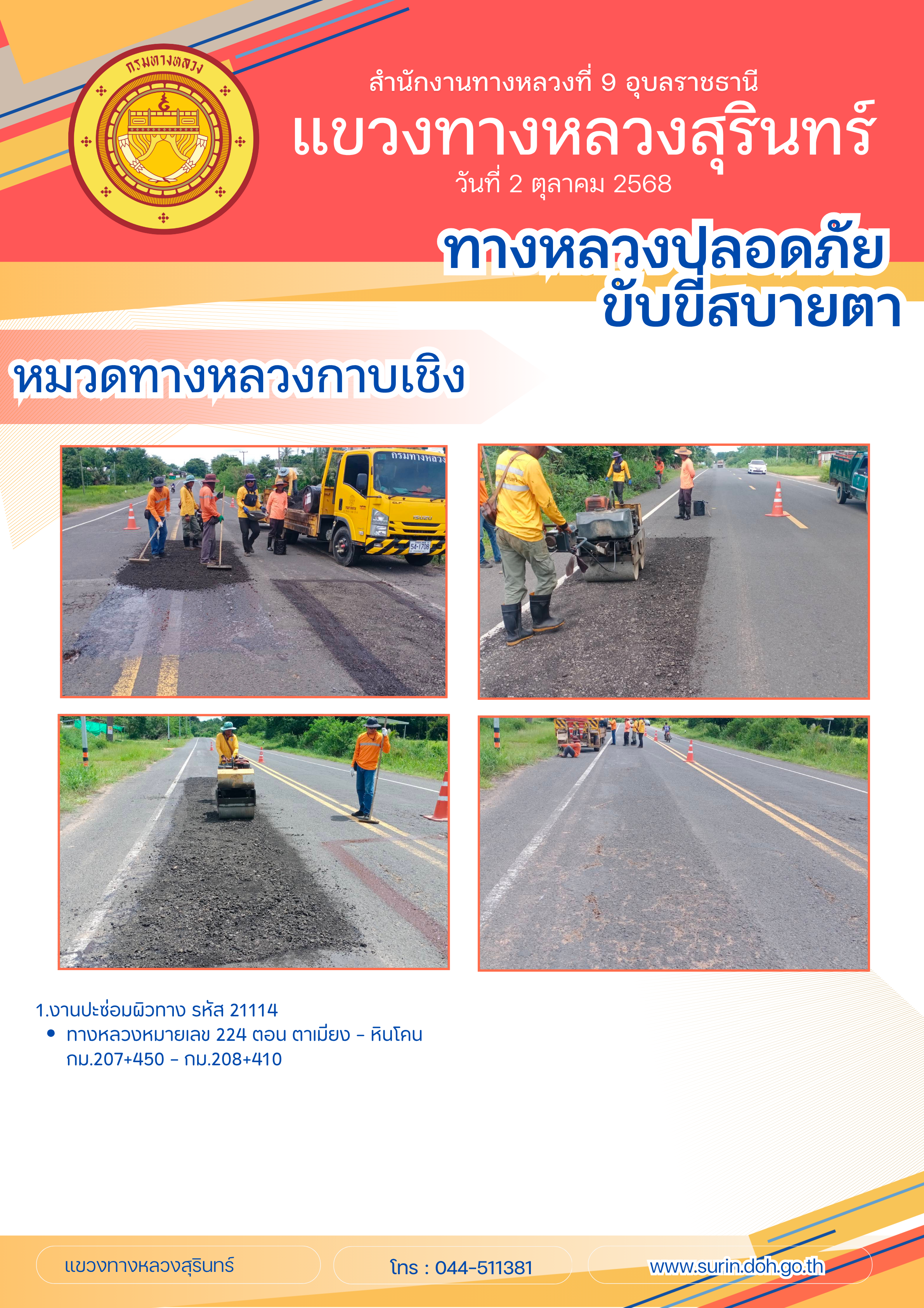 ข้อมูลข่าว : ทางหลวงปลอดภัย ขับขี่สบายตา 2 ตุลาคม 2568