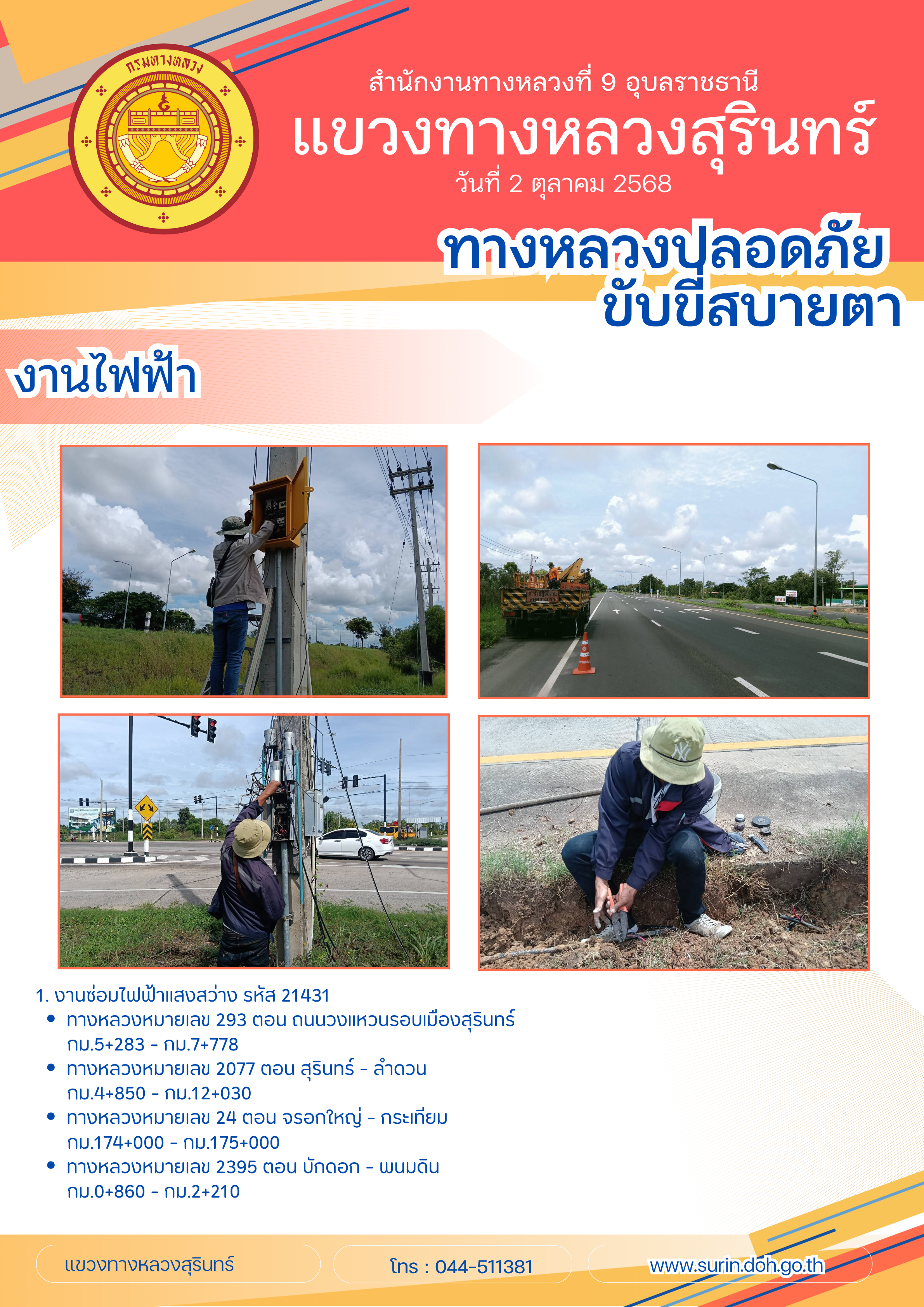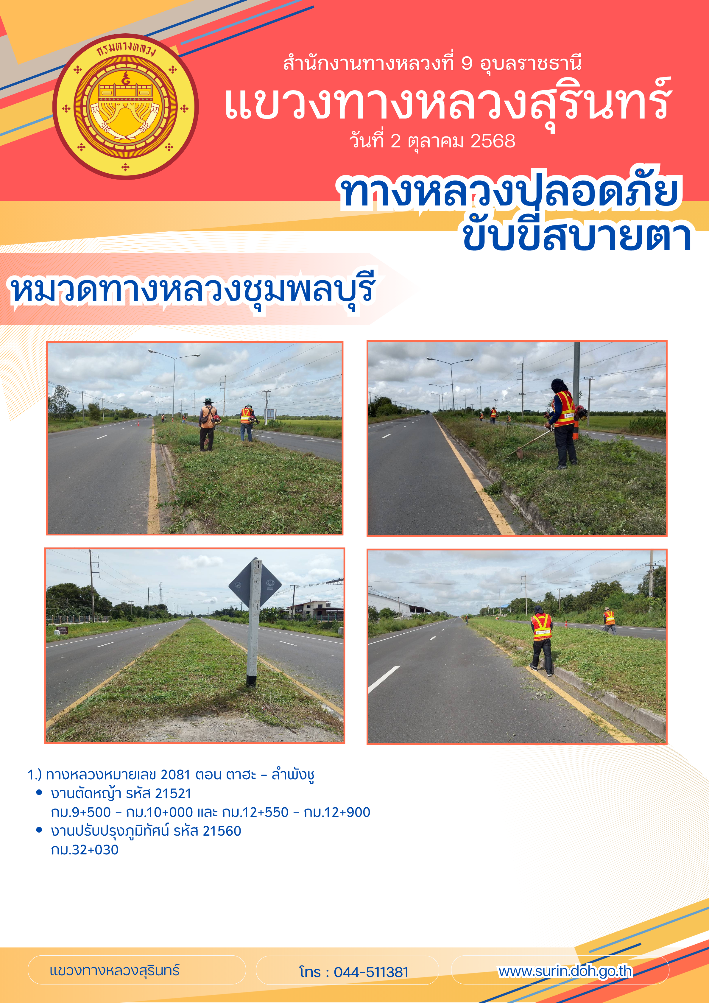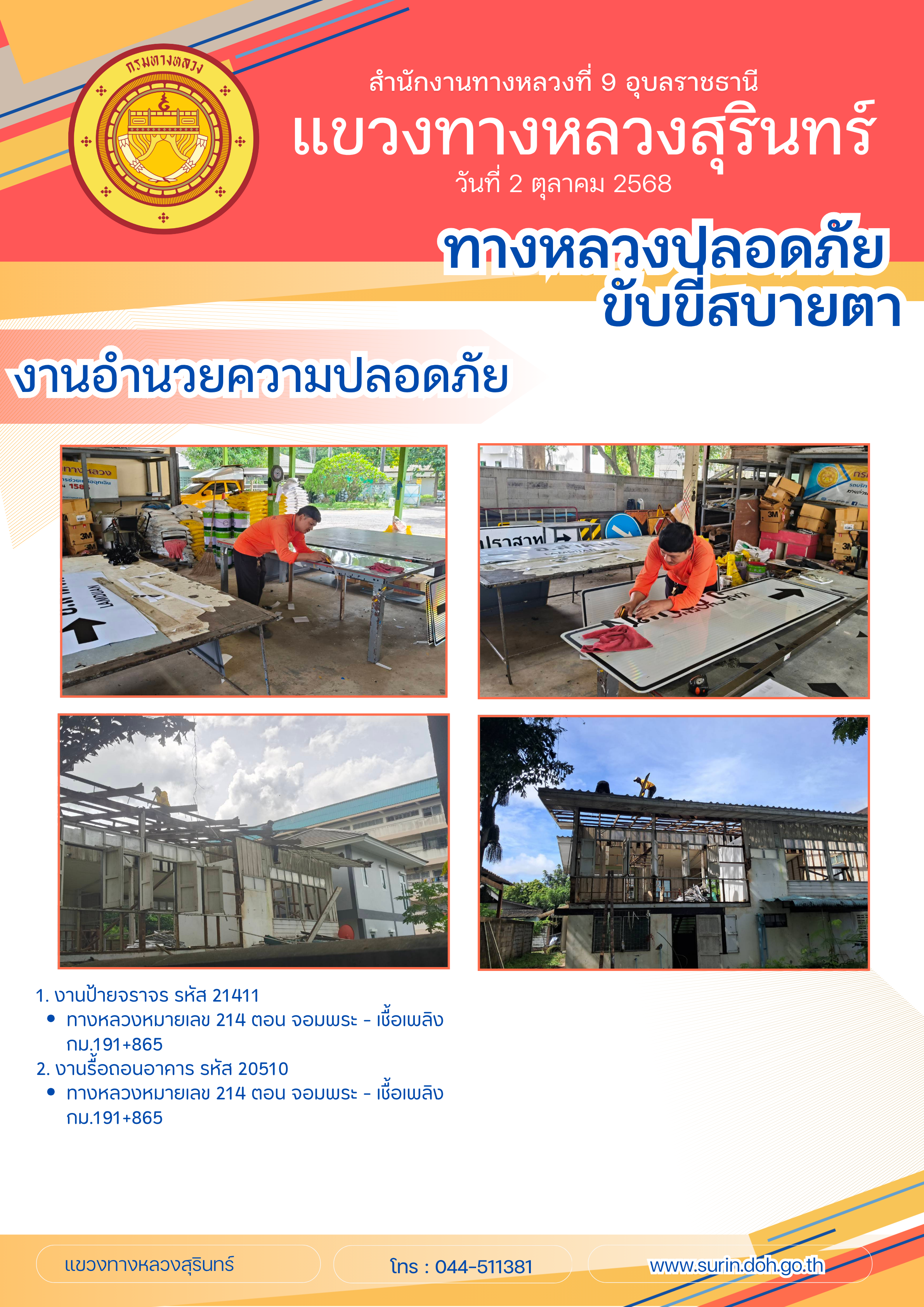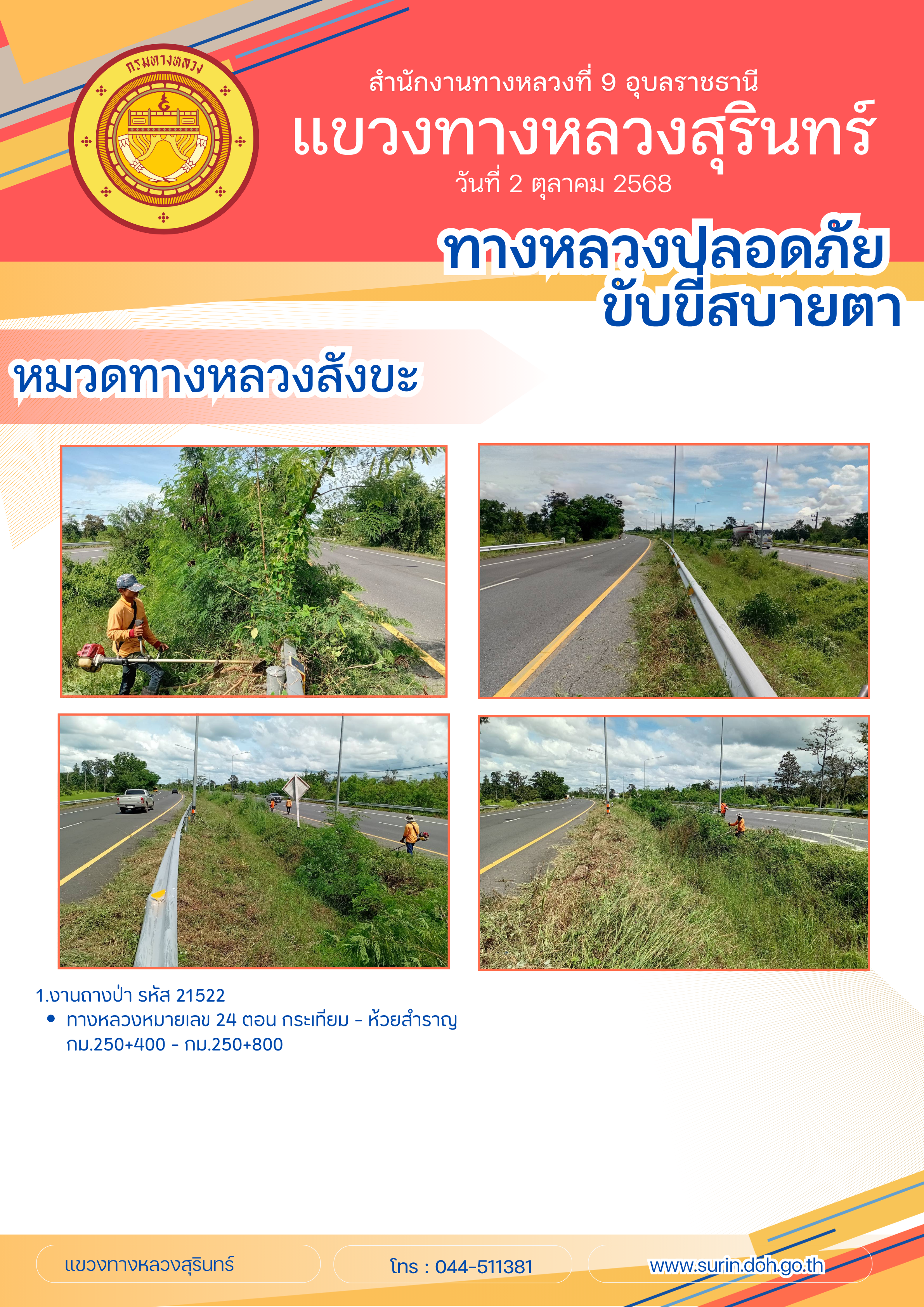 ข้อมูลข่าว : ทางหลวงปลอดภัย ขับขี่สบายตา 2 ตุลาคม 2568