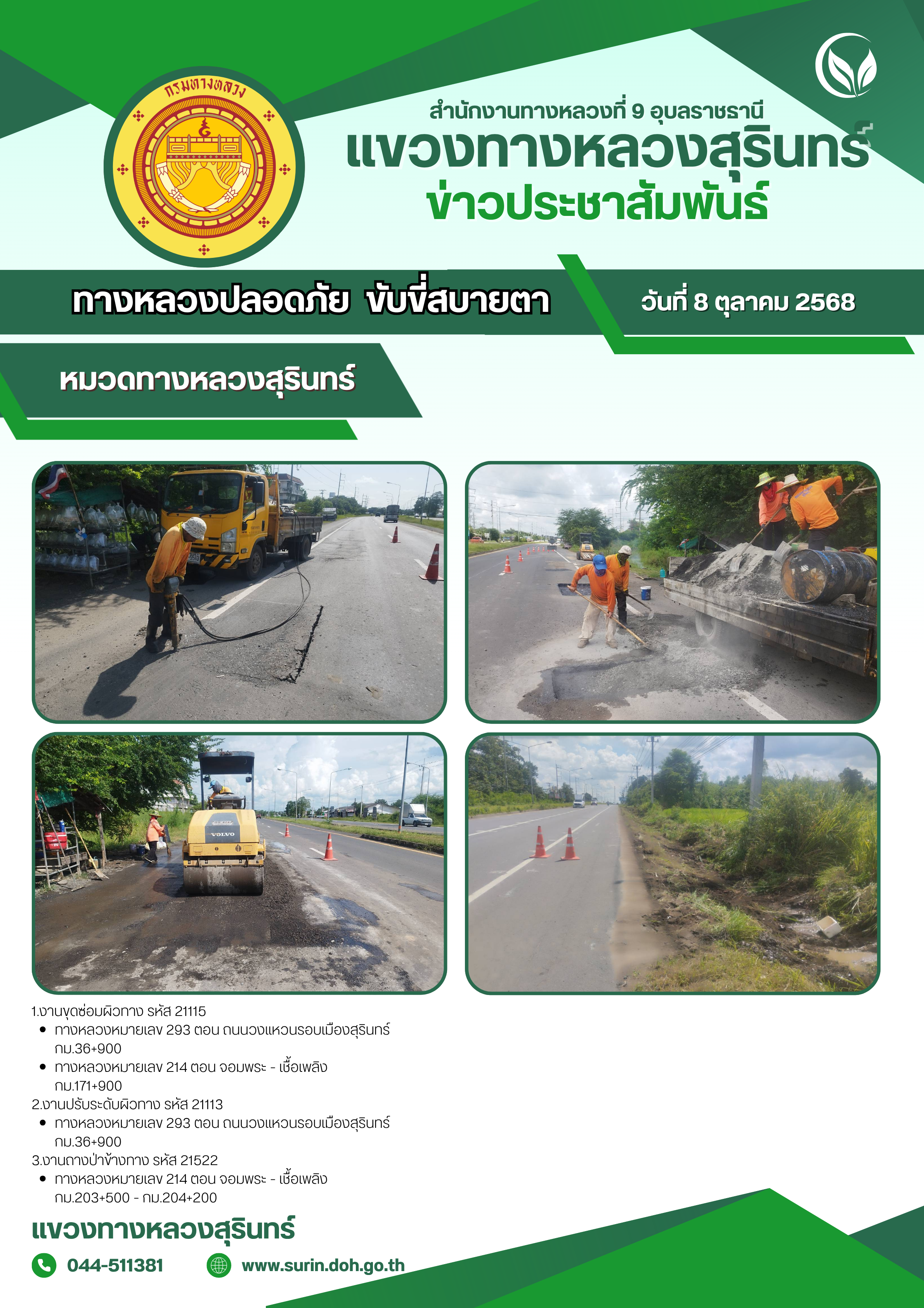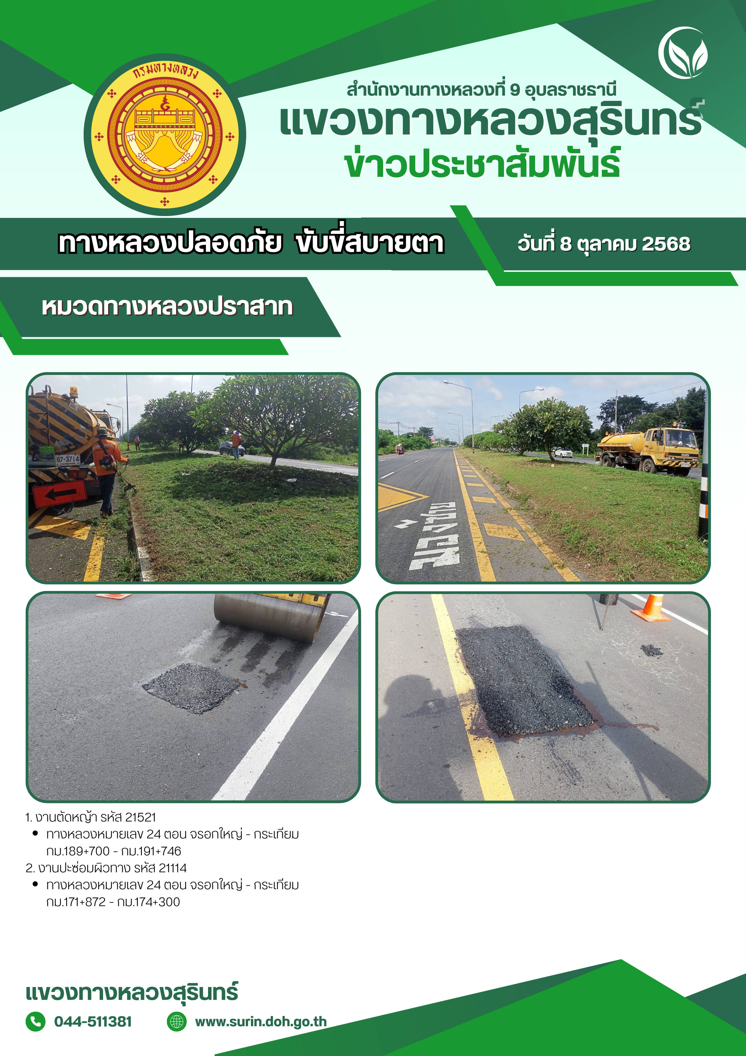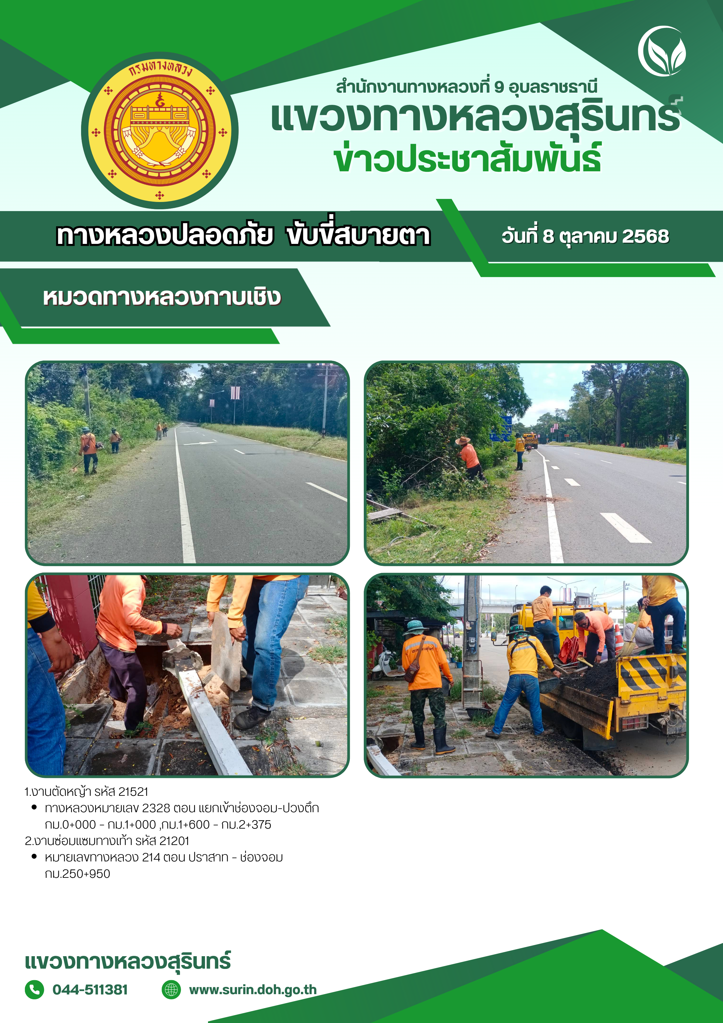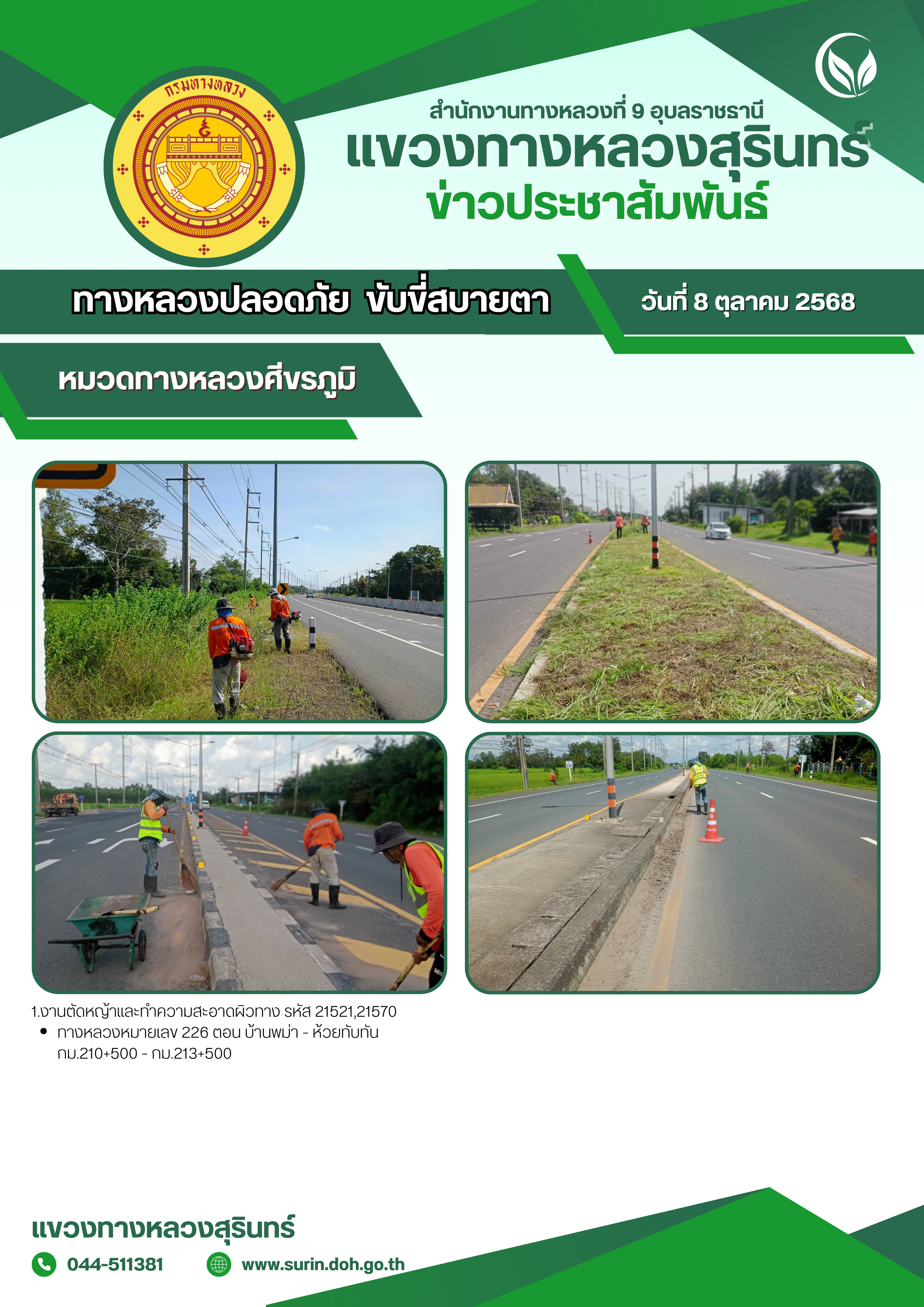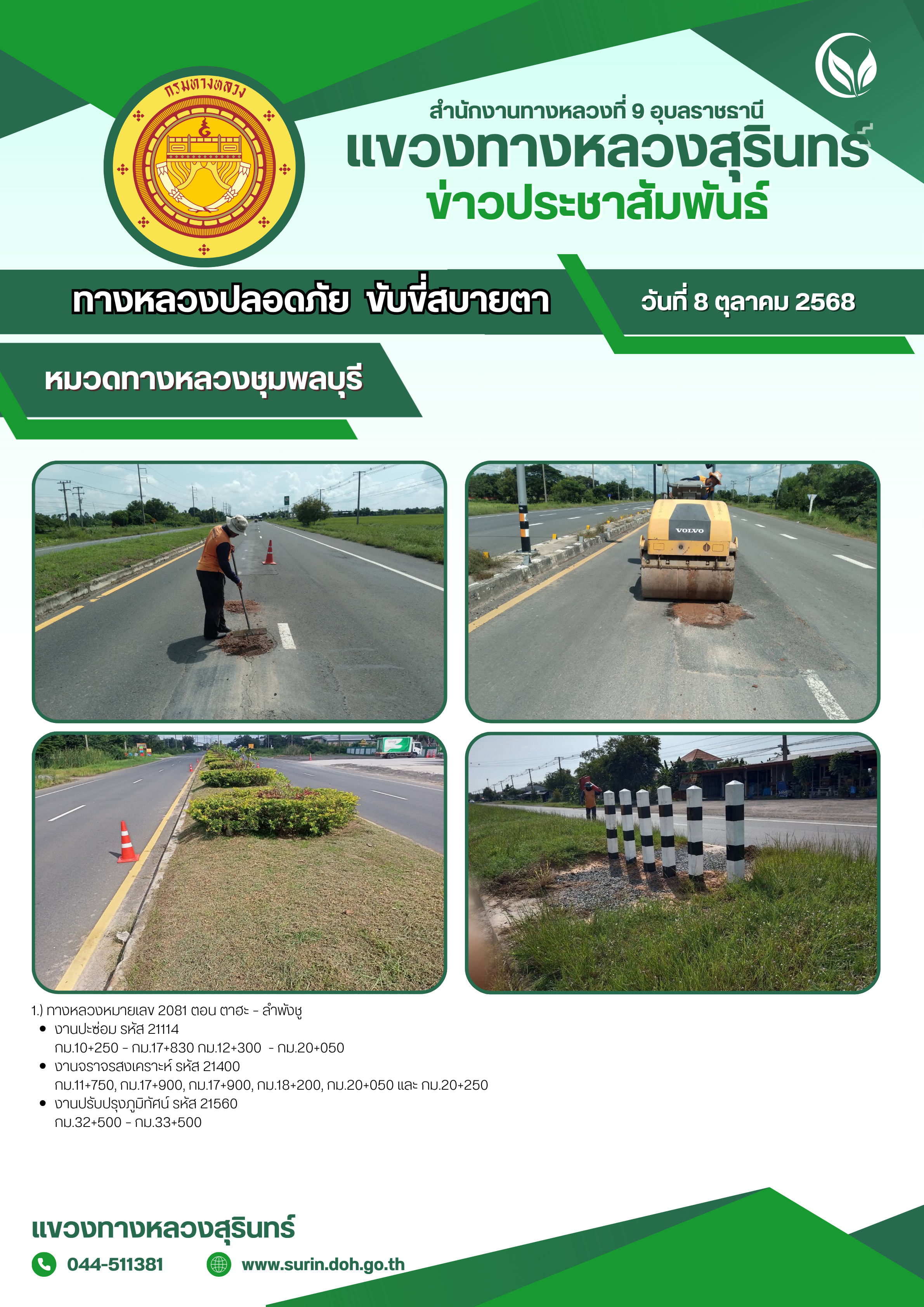 ทางหลวงปลอดภัย ขับขี่สบายตา 8 ตุลาคม 2568