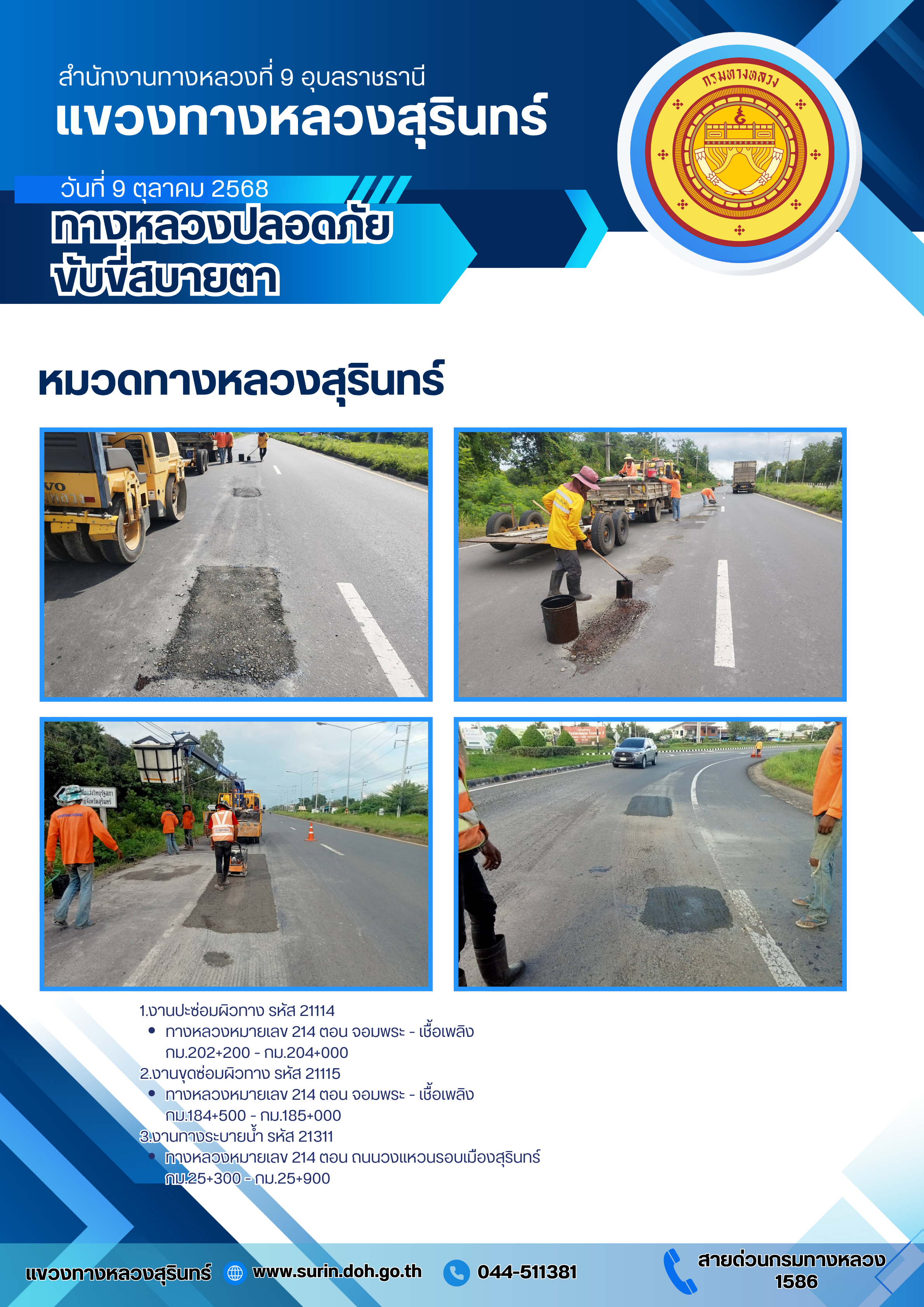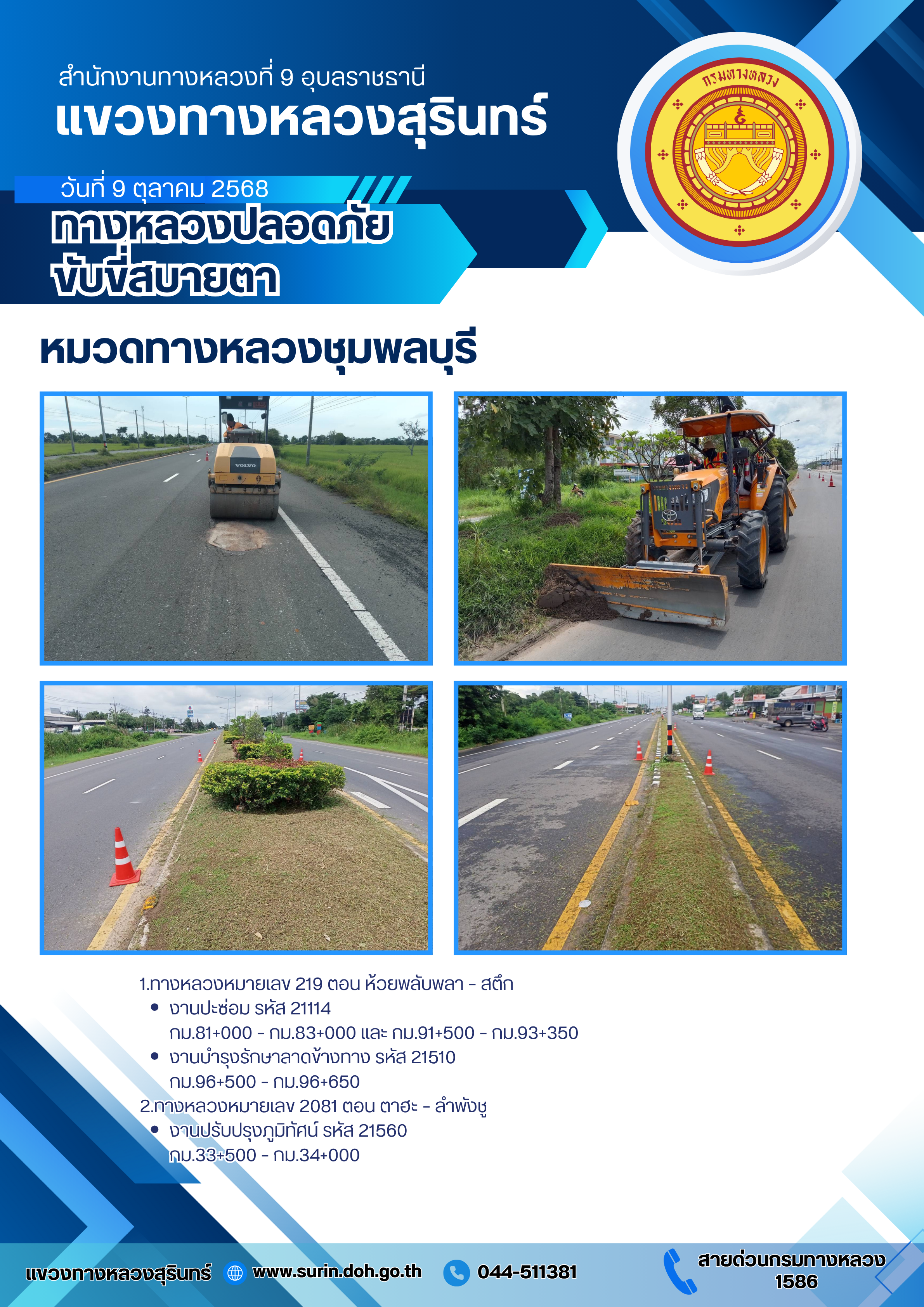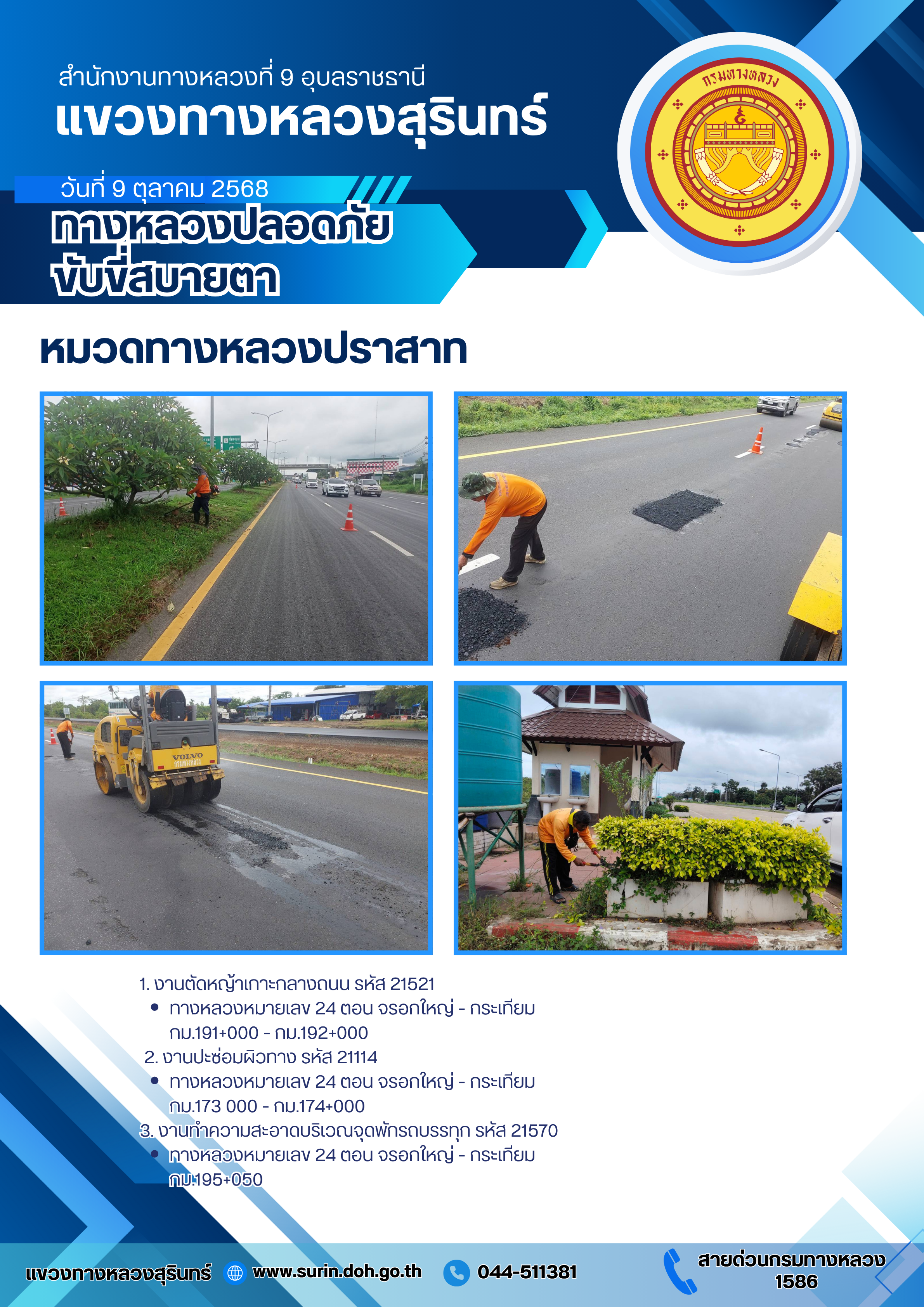 ข้อมูลข่าว : ทางหลวงปลอดภัย ขับขี่สบายตา 9 ตุลาคม 2568