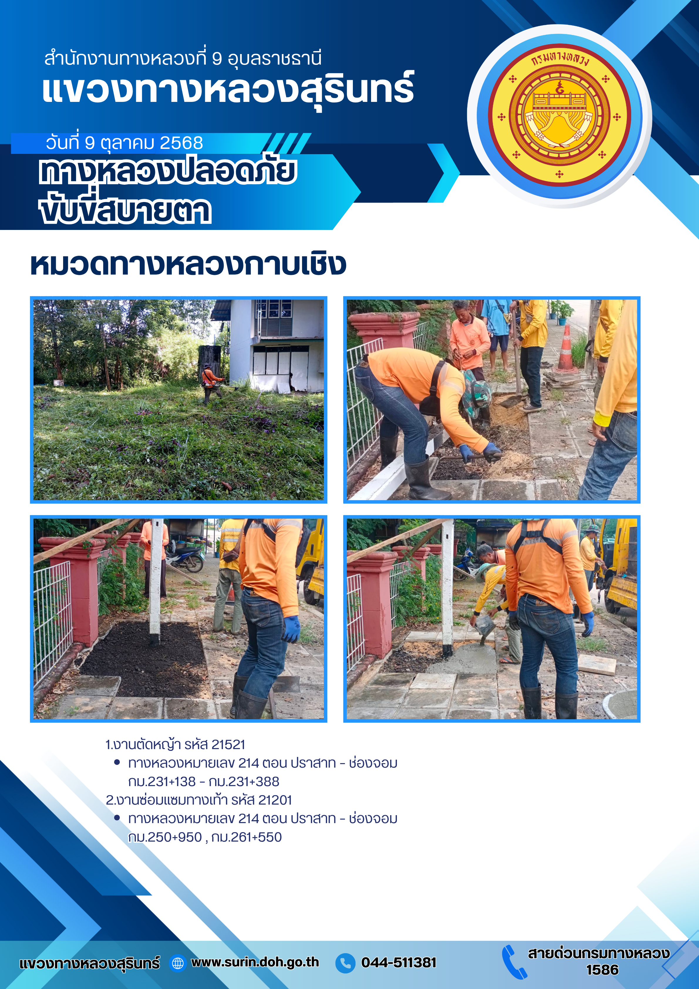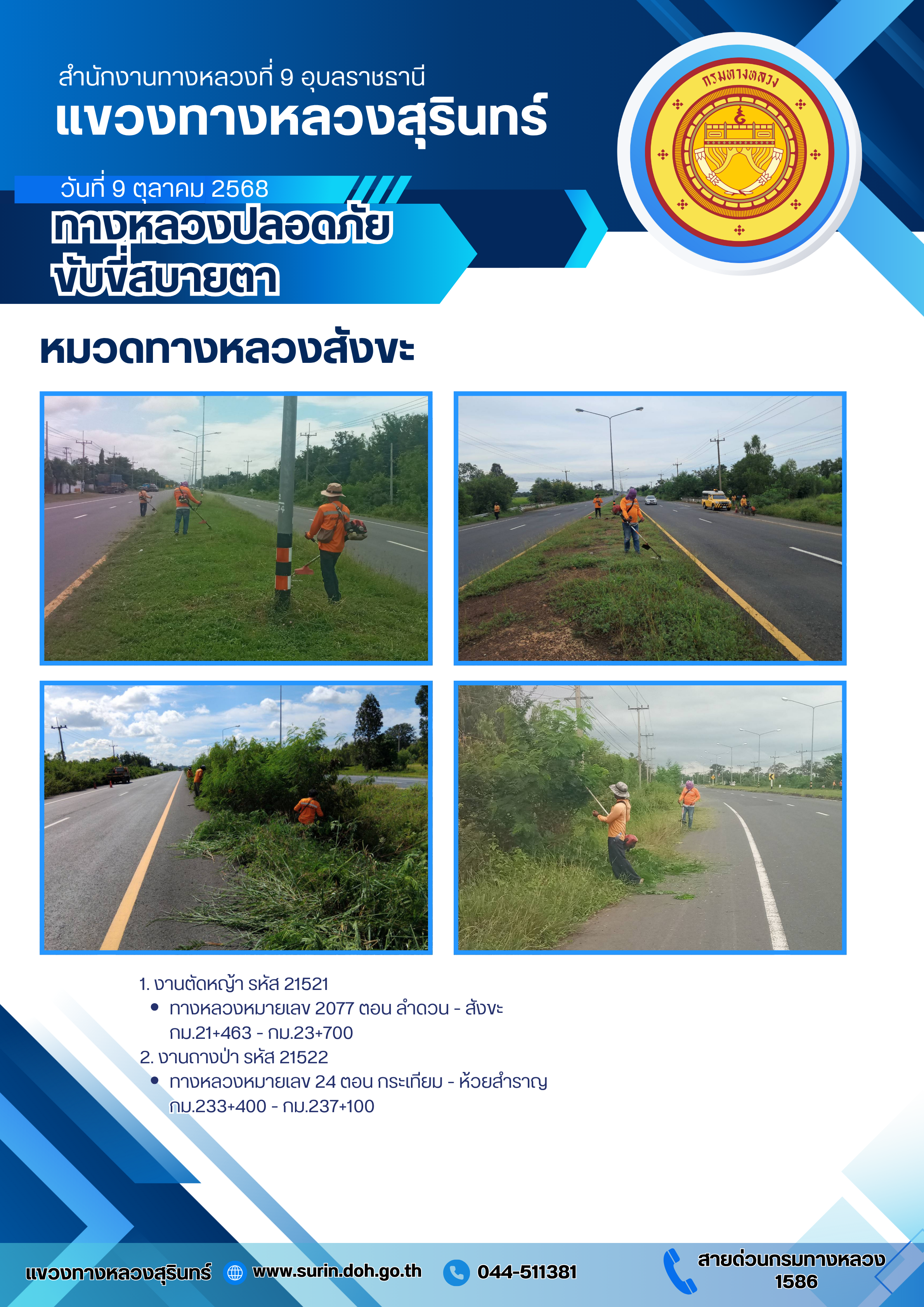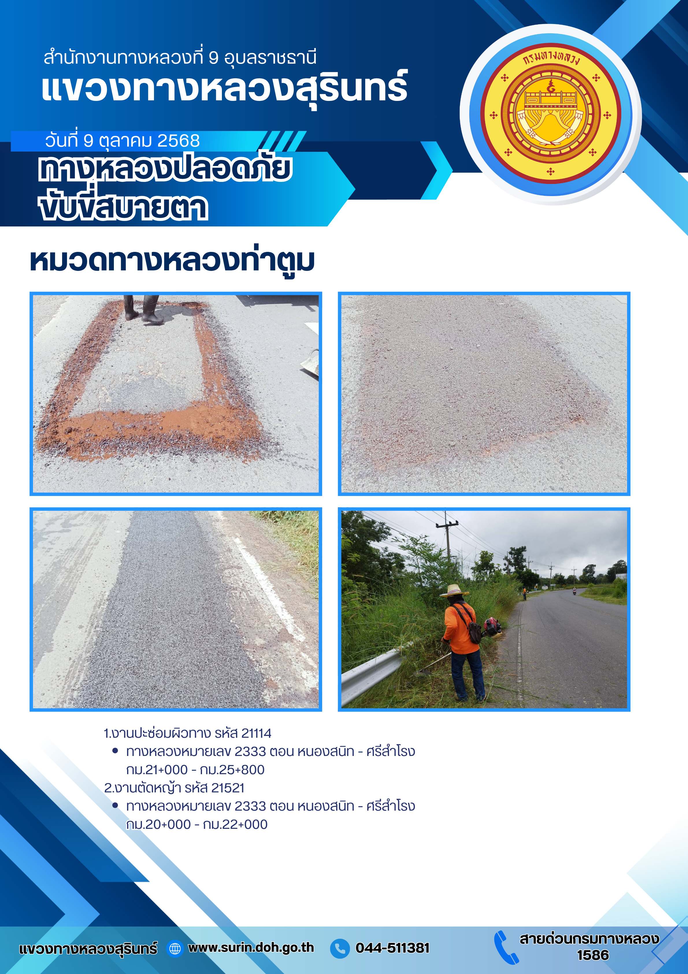 ข้อมูลข่าว : ทางหลวงปลอดภัย ขับขี่สบายตา 9 ตุลาคม 2568
