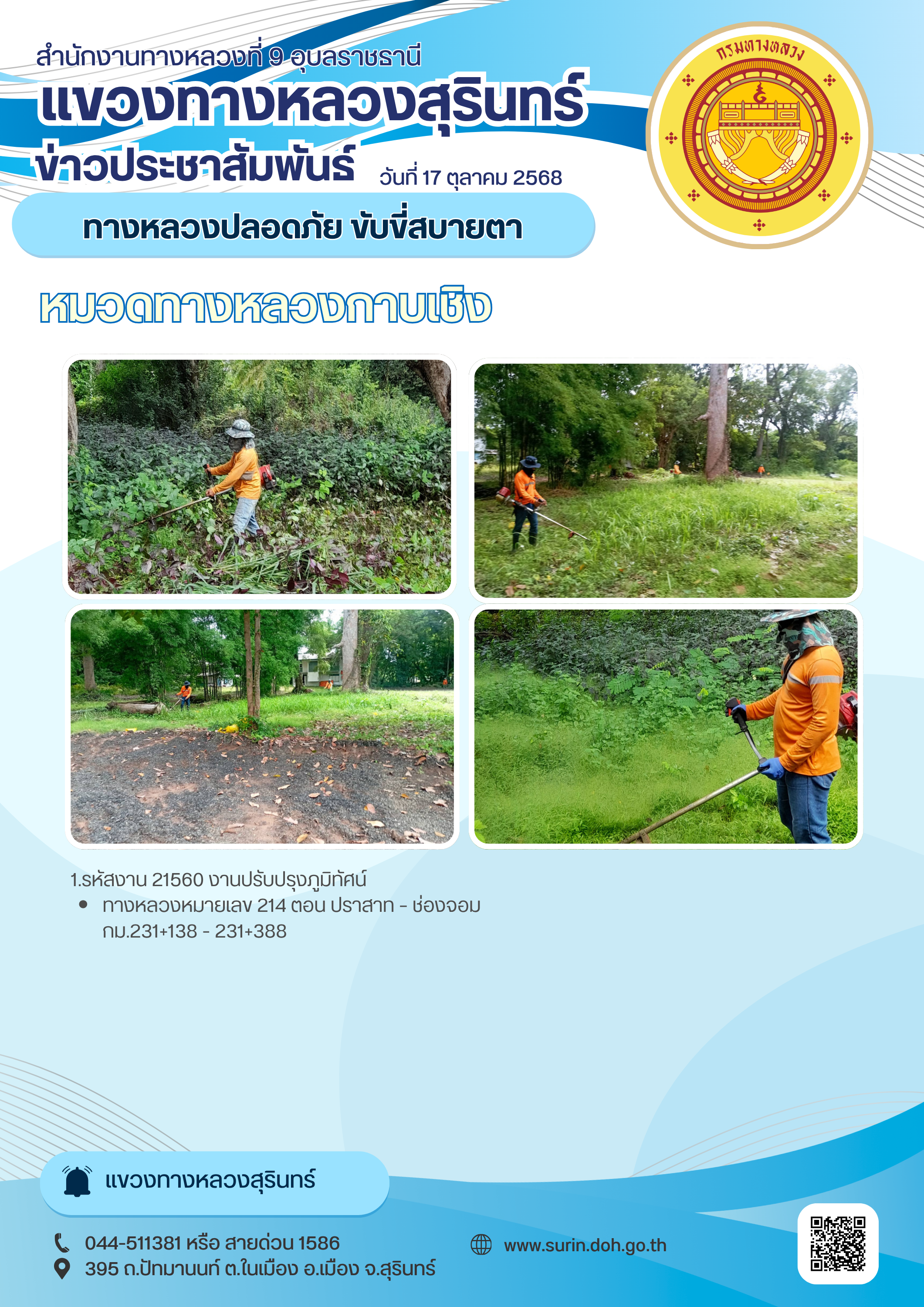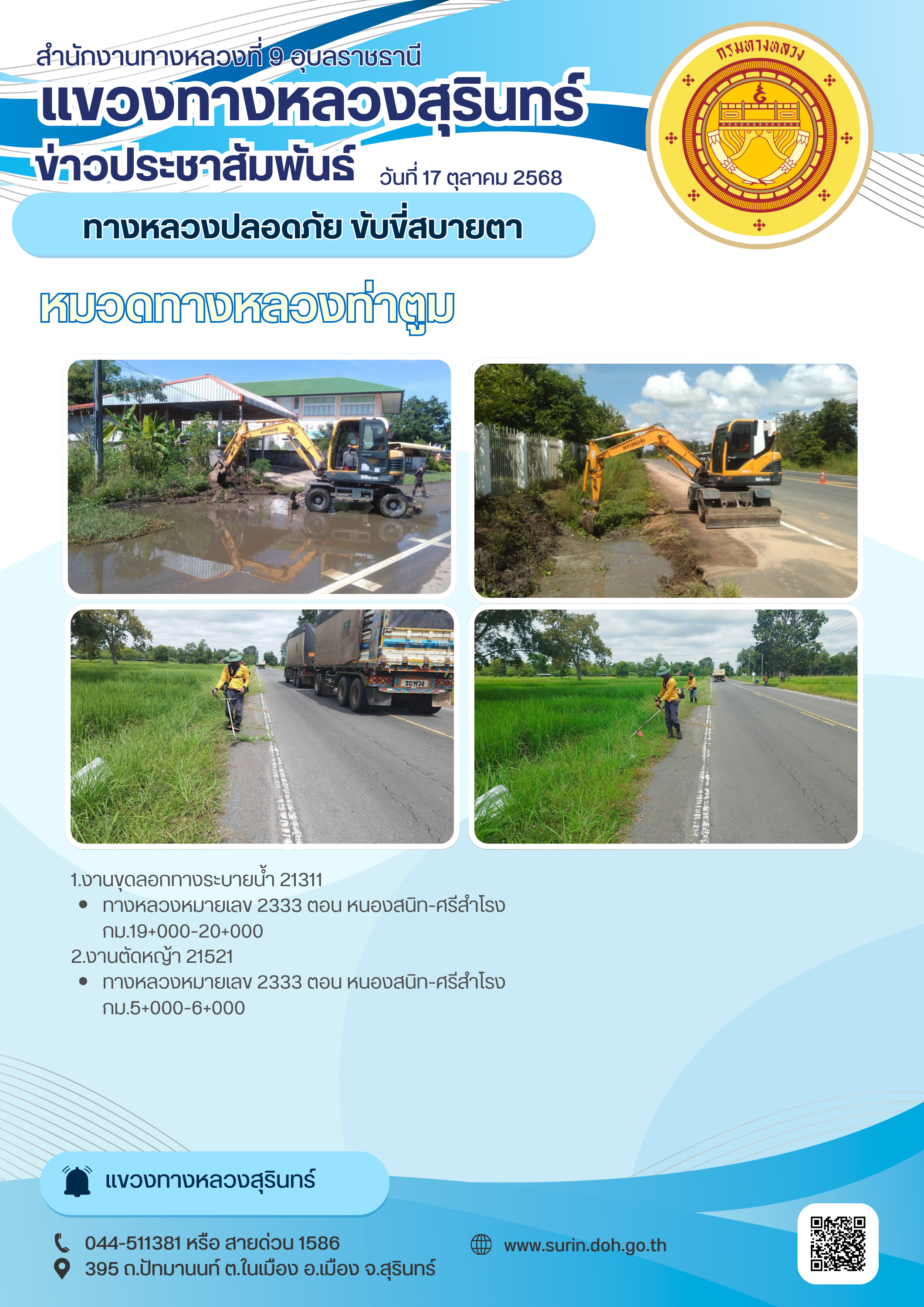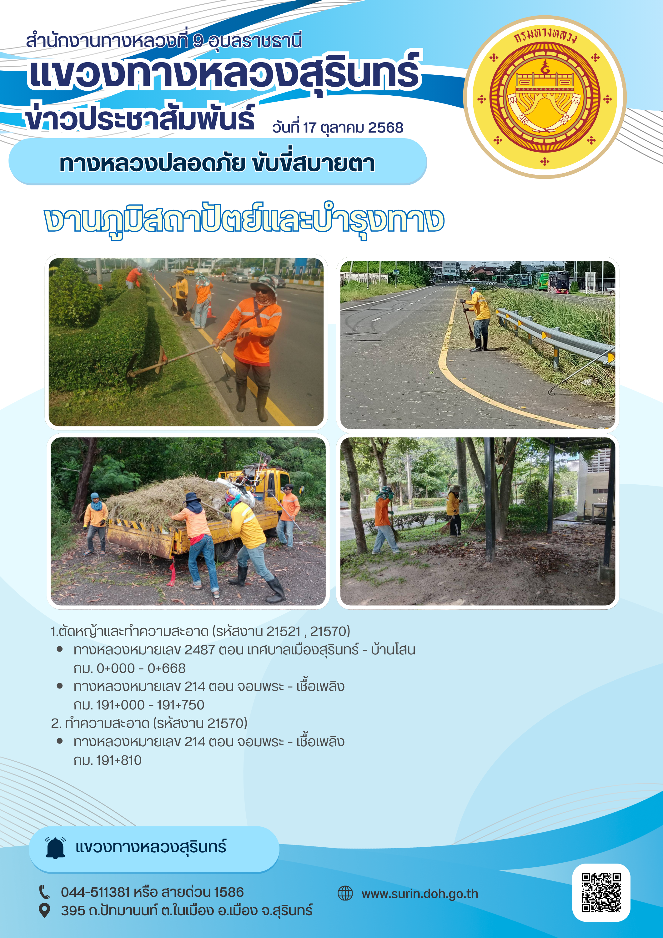 ข้อมูลข่าว : ทางหลวงปลอดภัย ขับขี่สบายตา 17 ตุลาคม 2568