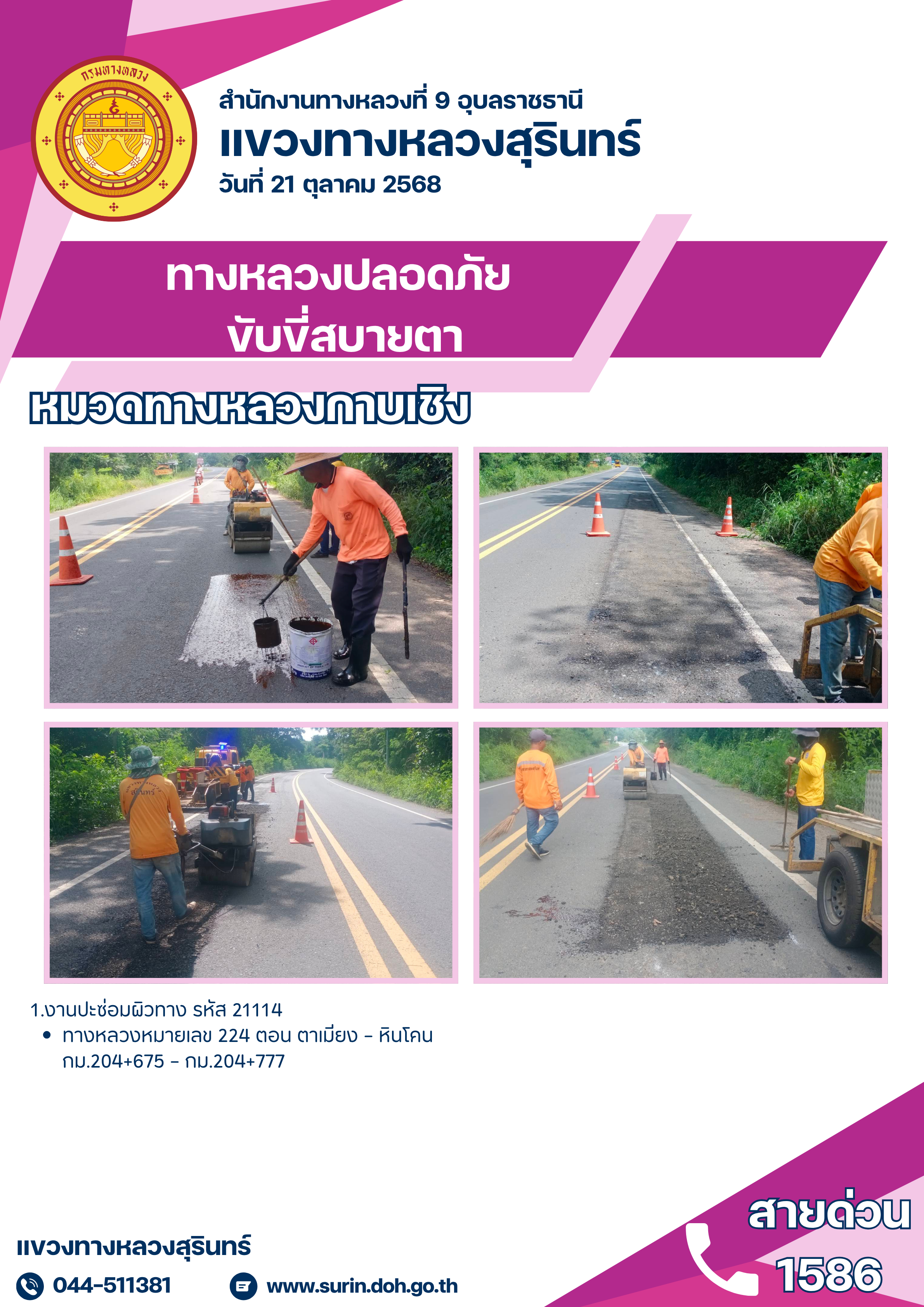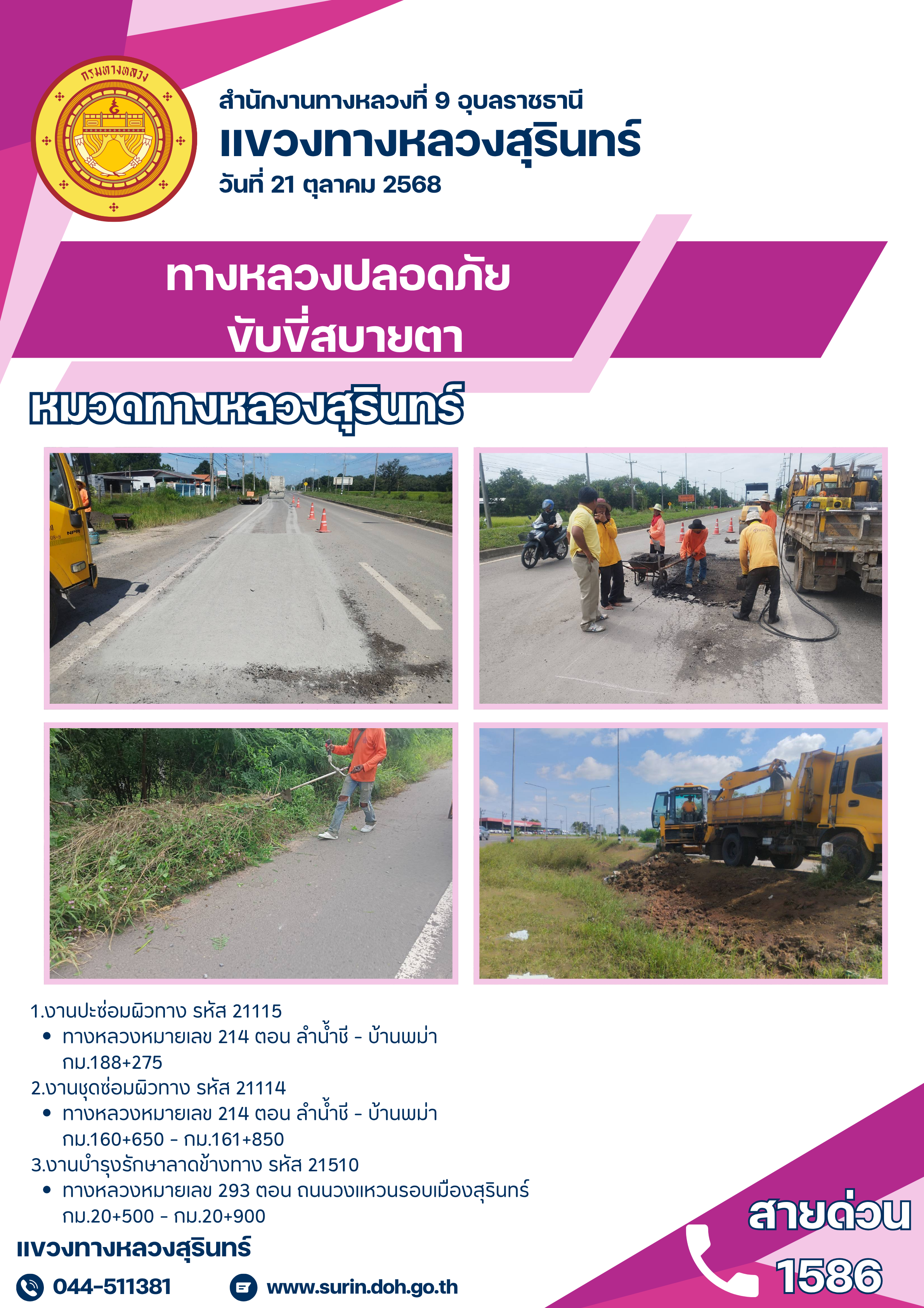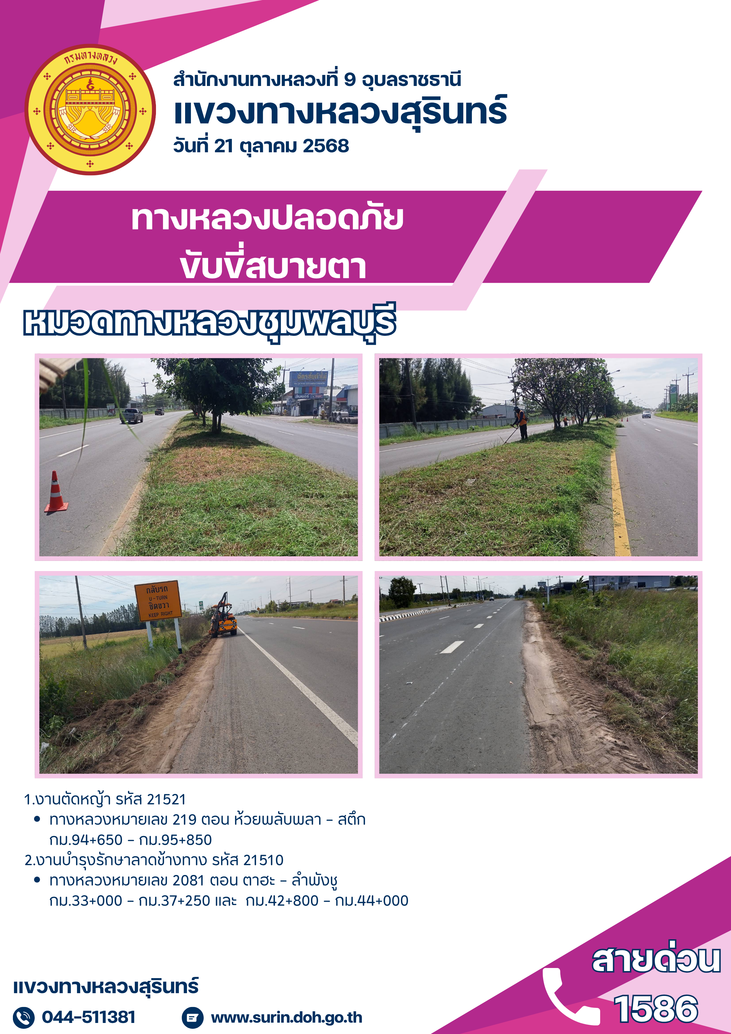 ข้อมูลข่าว : ทางหลวงปลอดภัย ขับขี่สบายตา 21 ตุลาคม 2568
