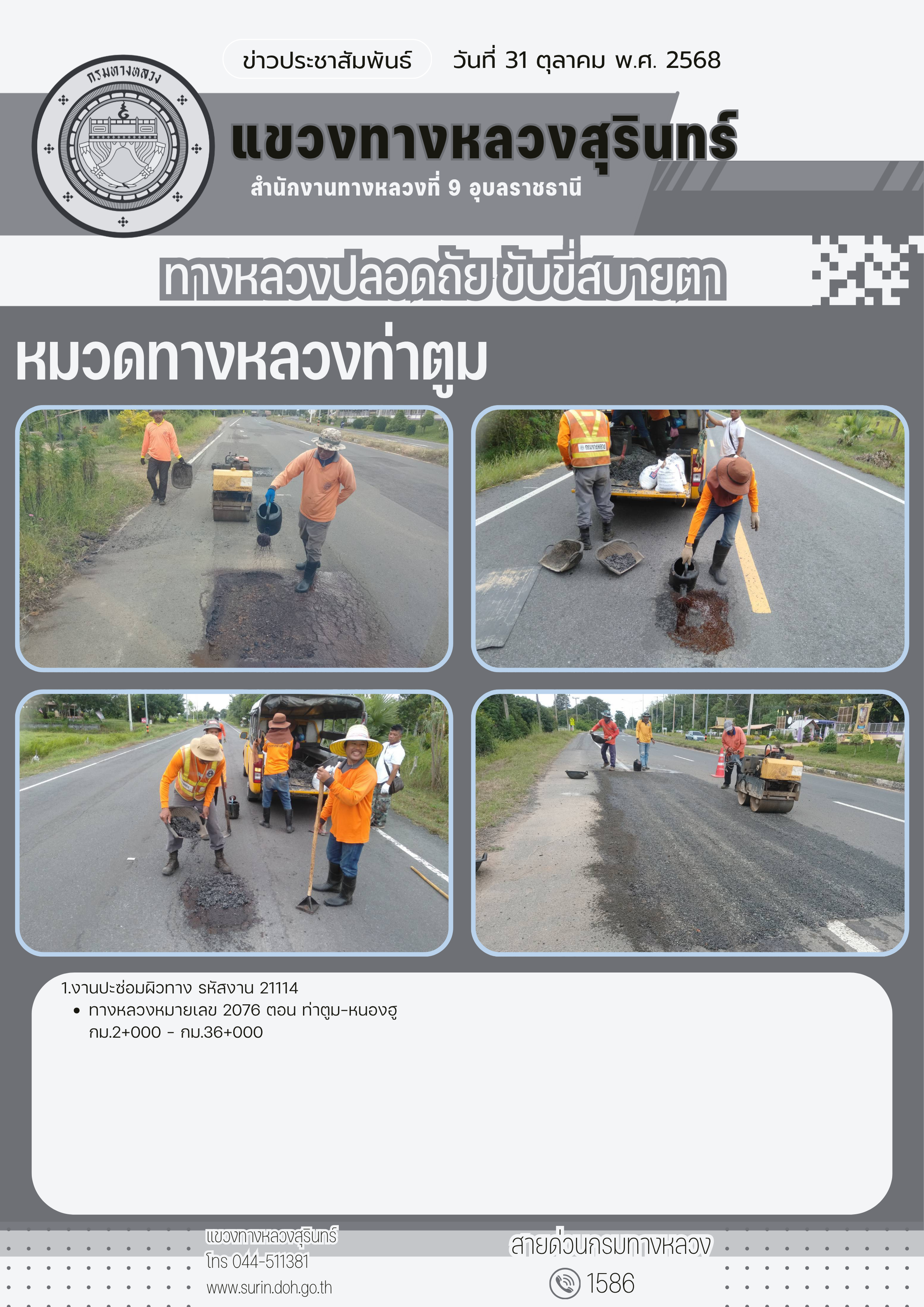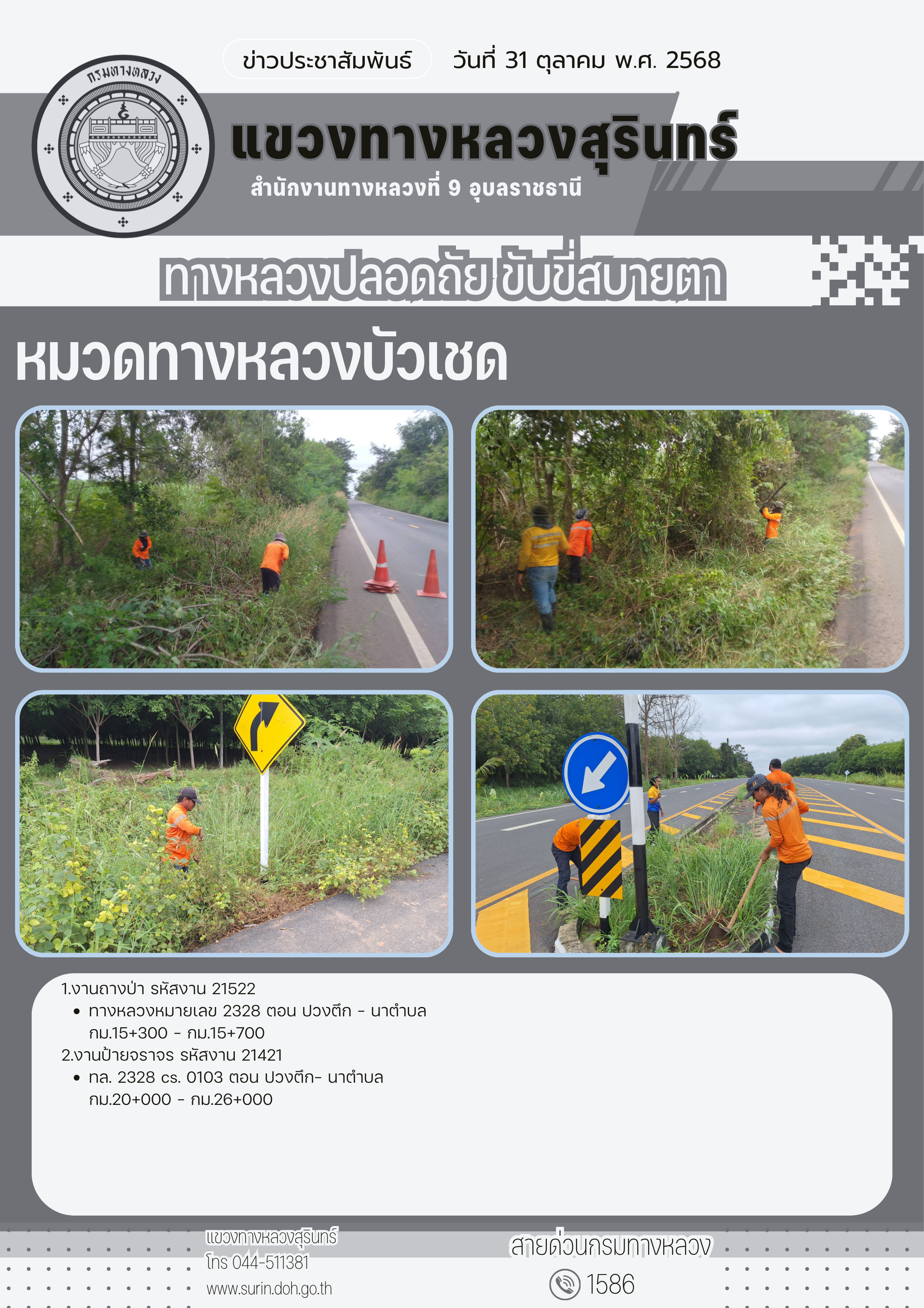 ข้อมูลข่าว : ทางหลวงปลอดภัย ขับขี่สบายตา 31 ตุลาคม 2568