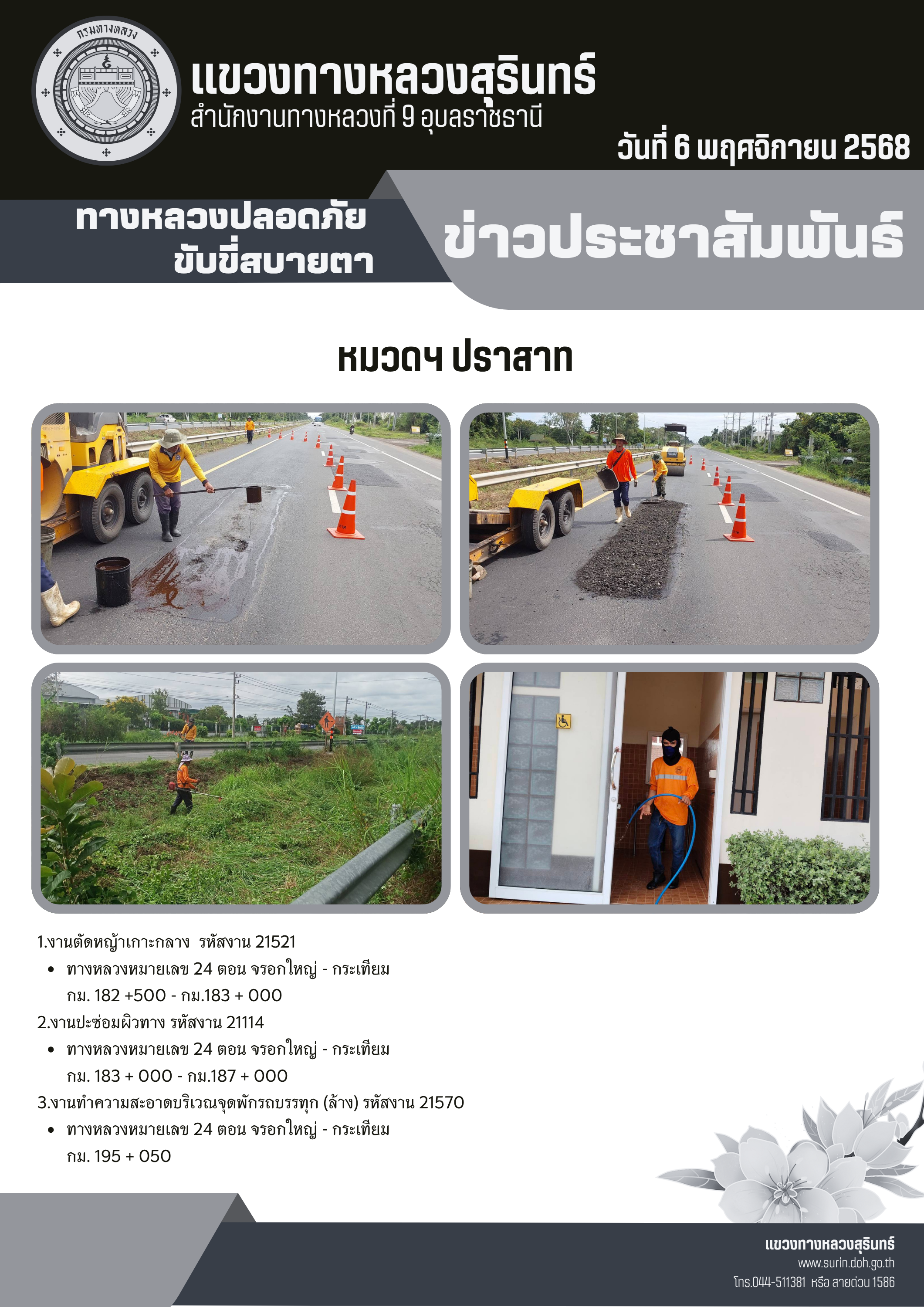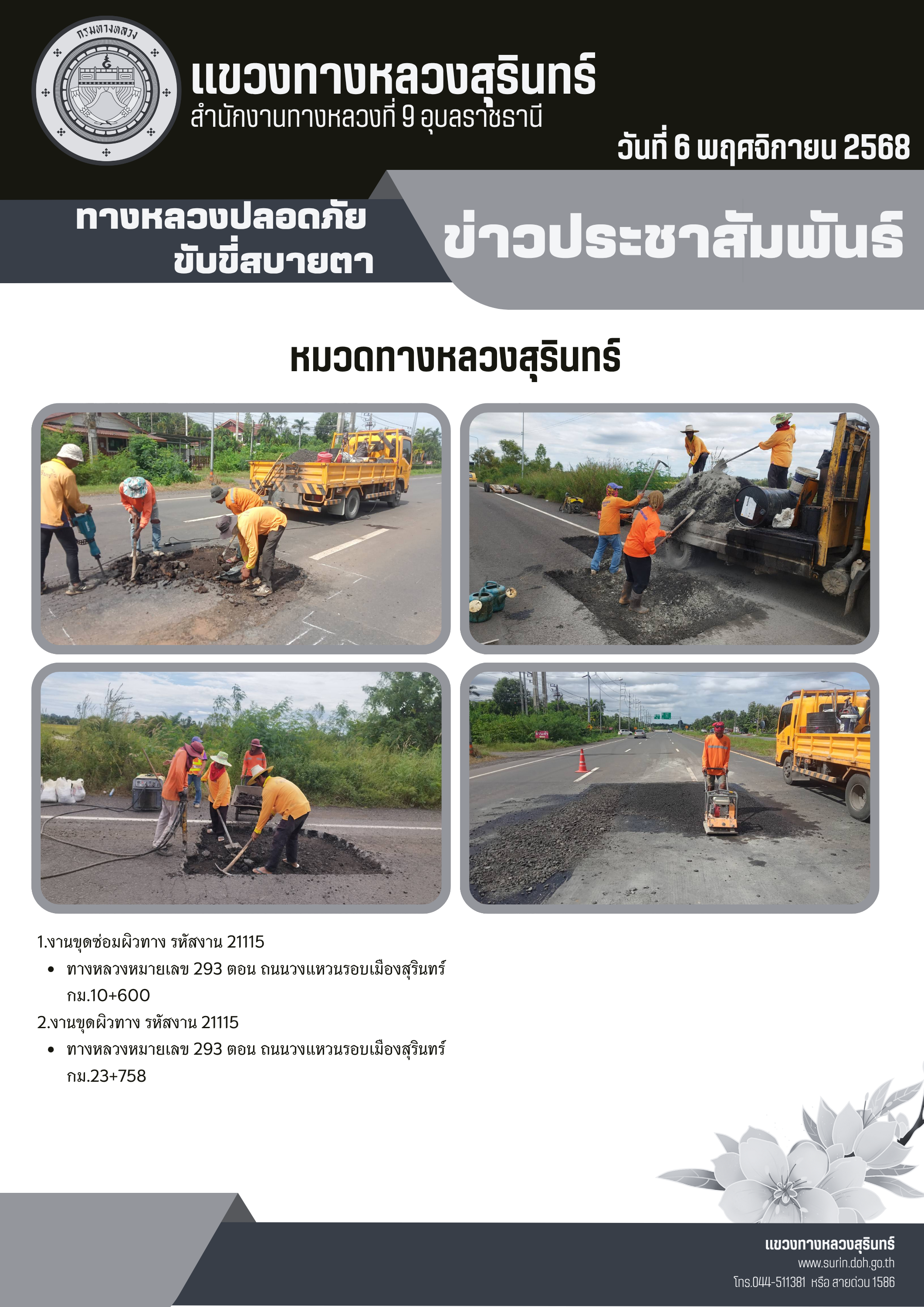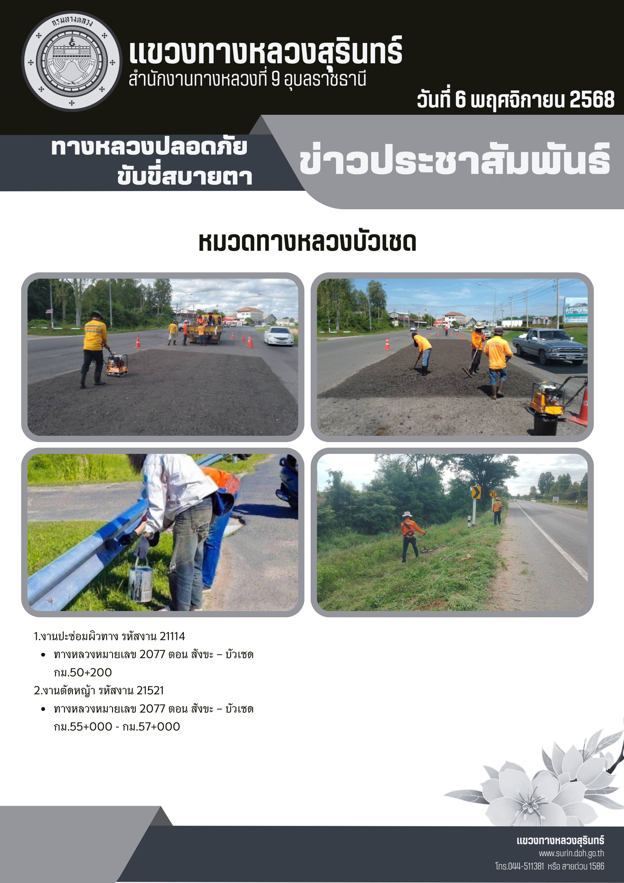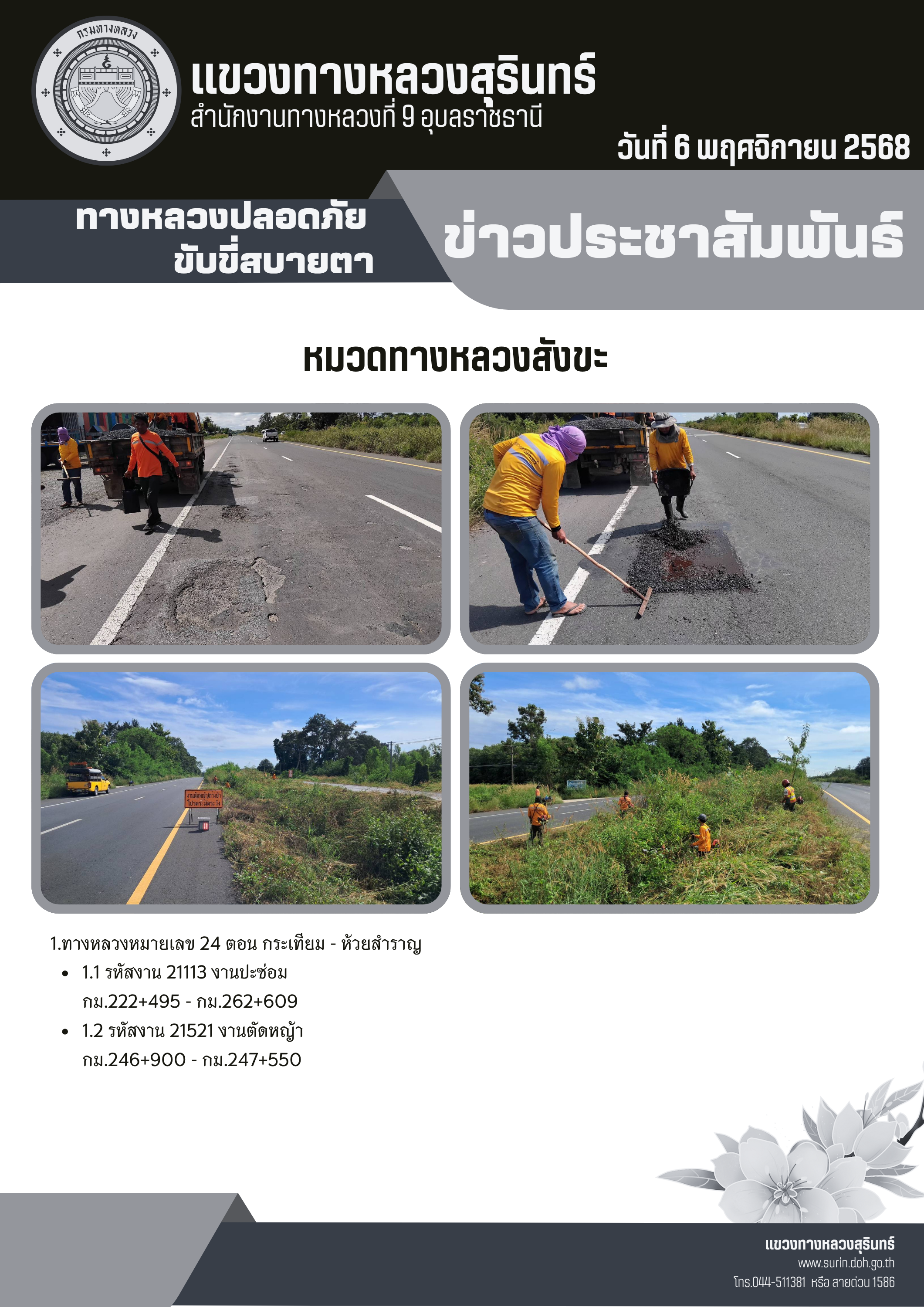 ข้อมูลข่าว : ทางหลวงปลอดภัย ขับขี่สบายตา 6 พฤศจิกายน 2568