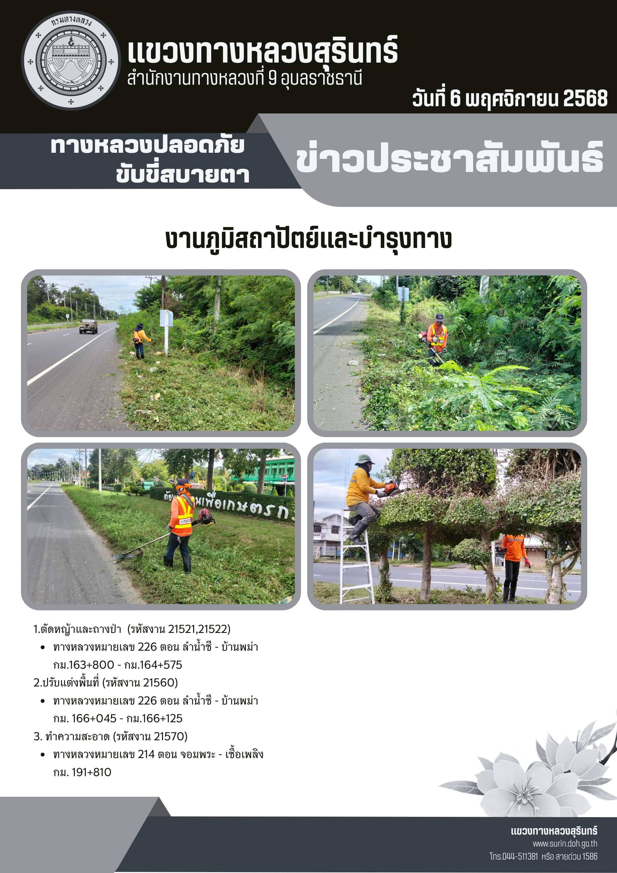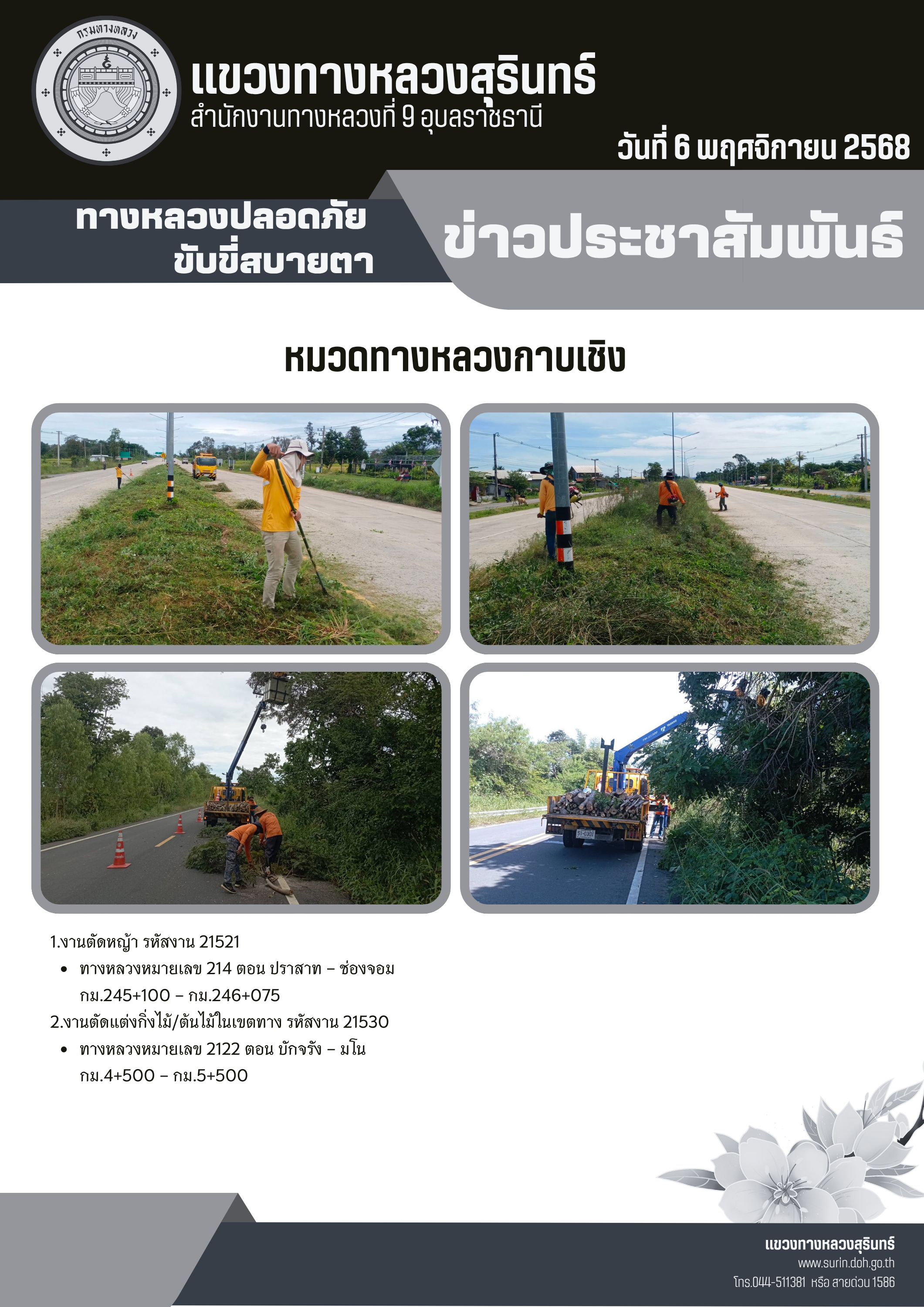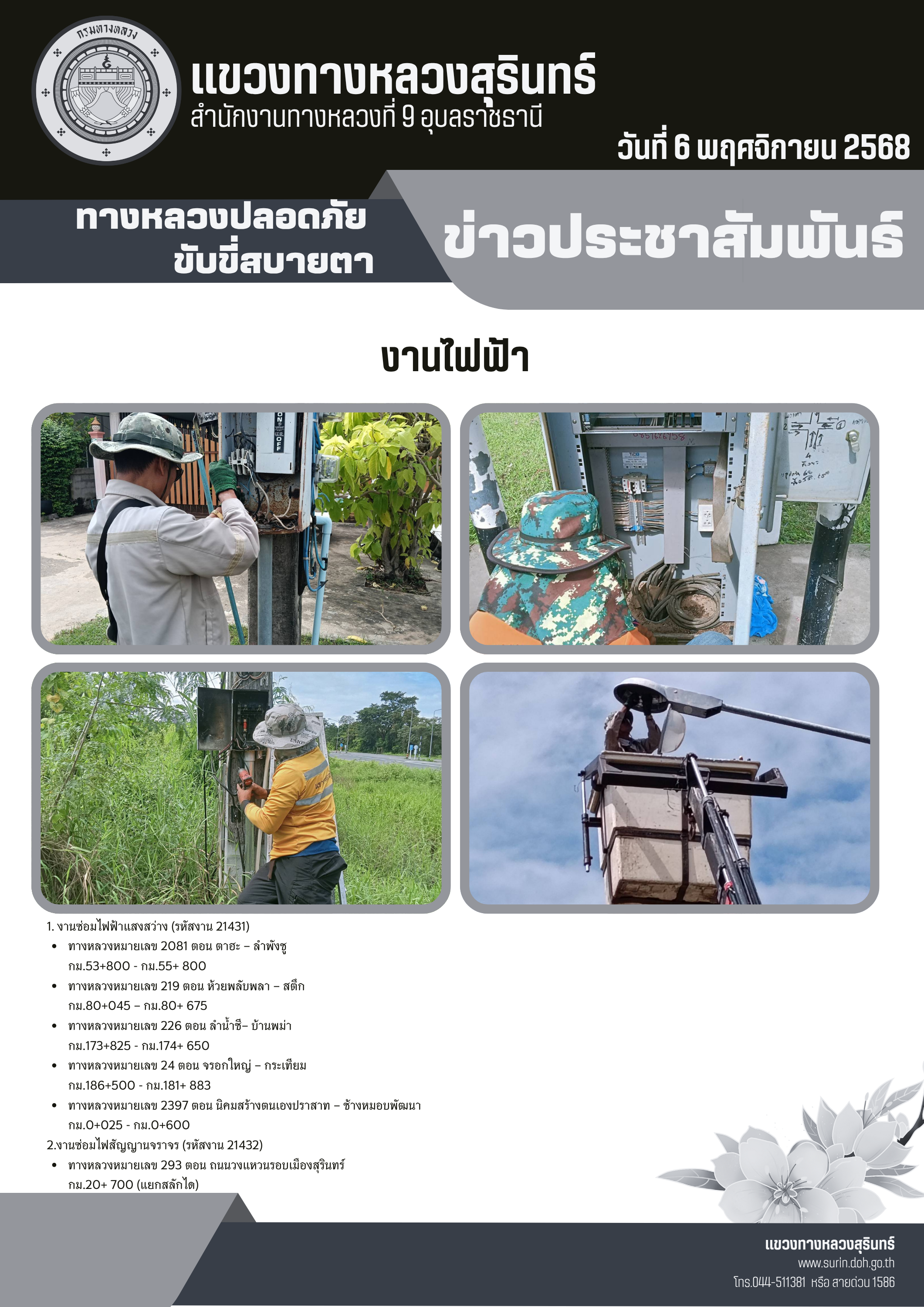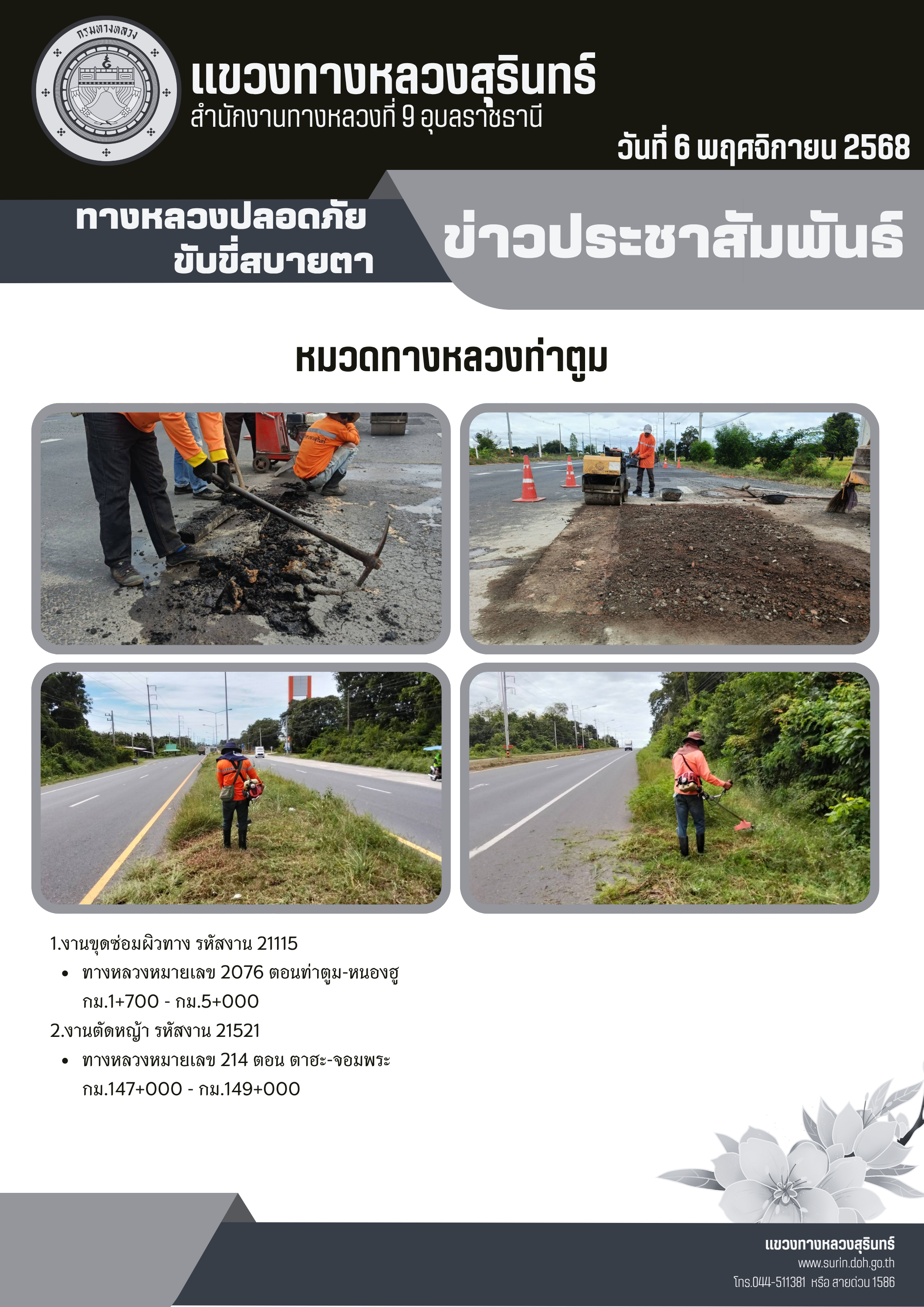 ข้อมูลข่าว : ทางหลวงปลอดภัย ขับขี่สบายตา 6 พฤศจิกายน 2568