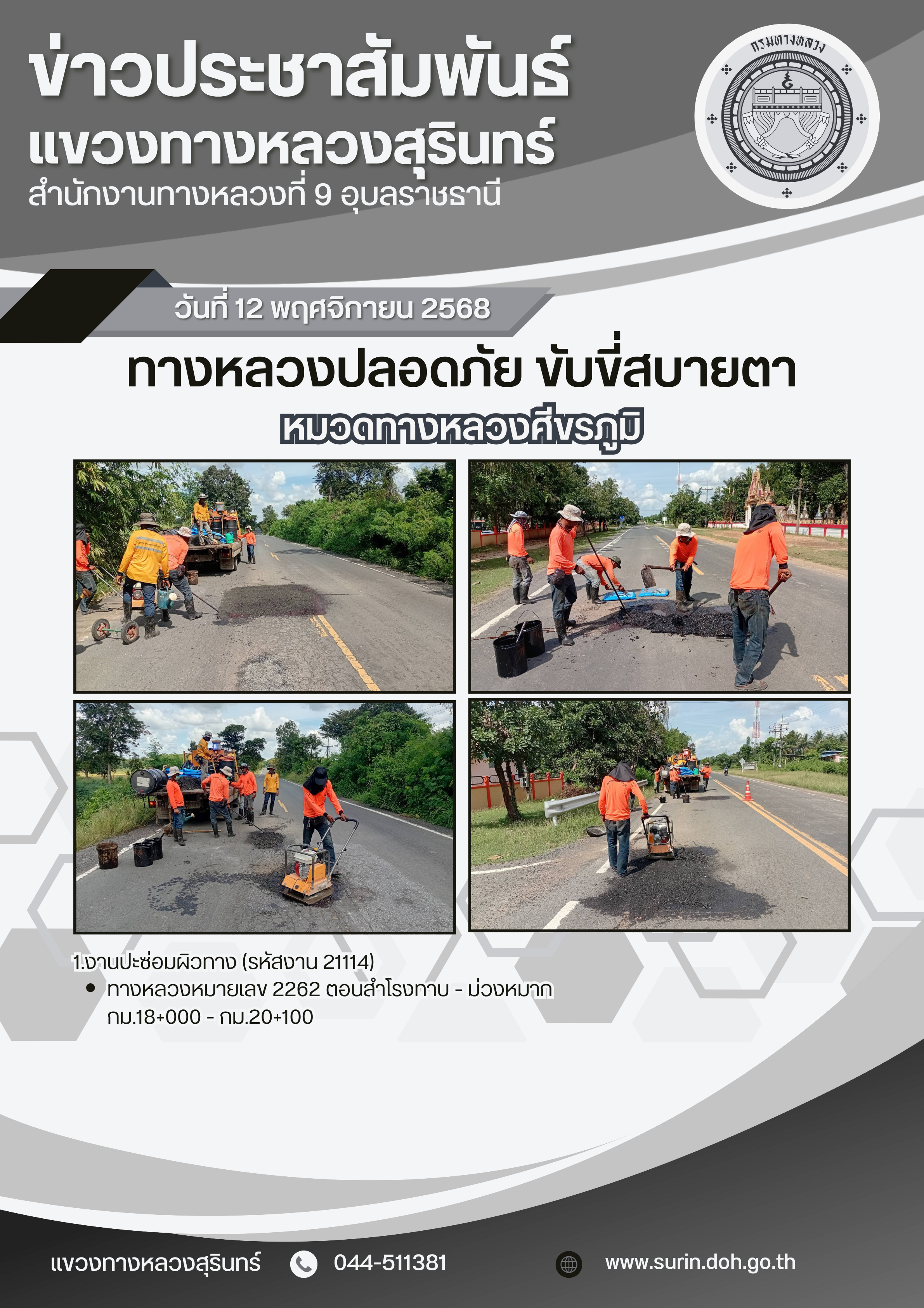 ทางหลวงปลอดภัย ขับขี่สบายตา 12 พฤศจิกายน 2568