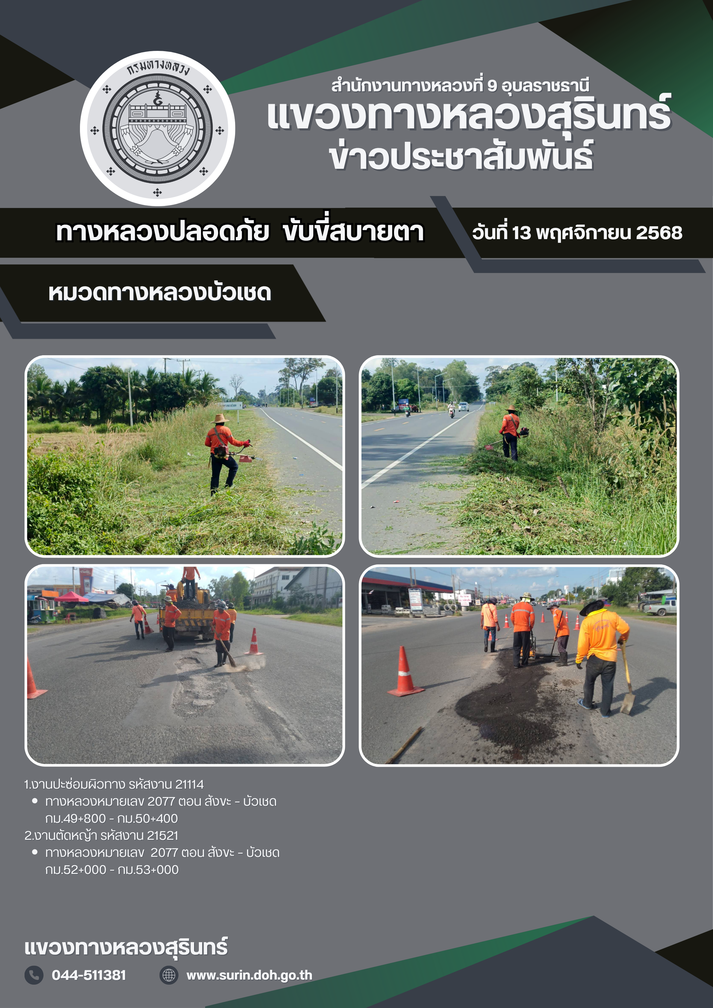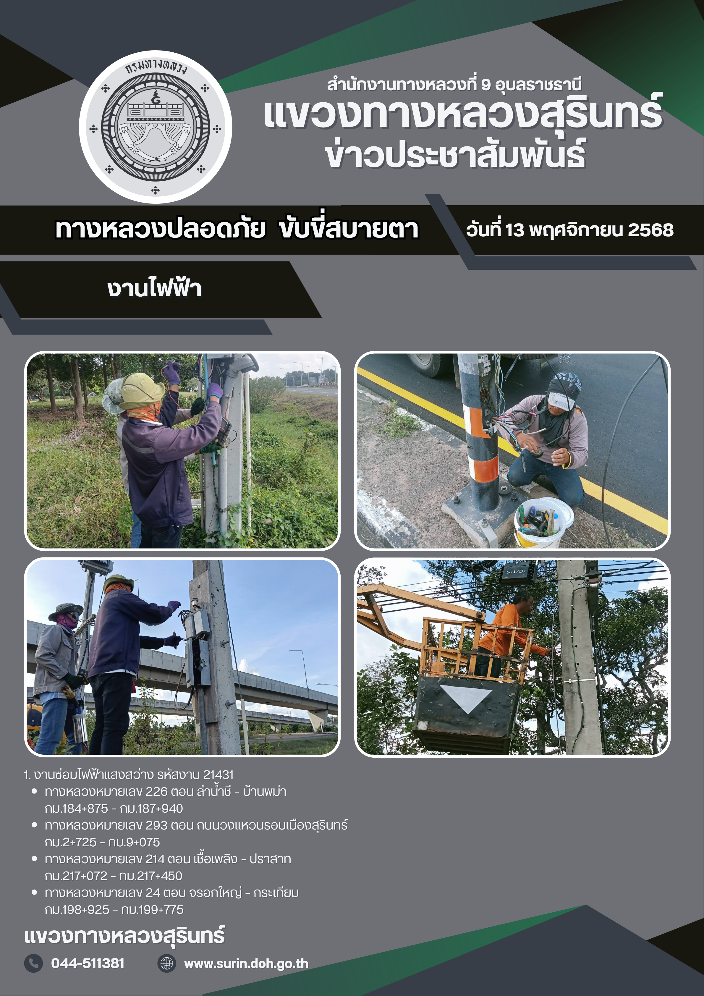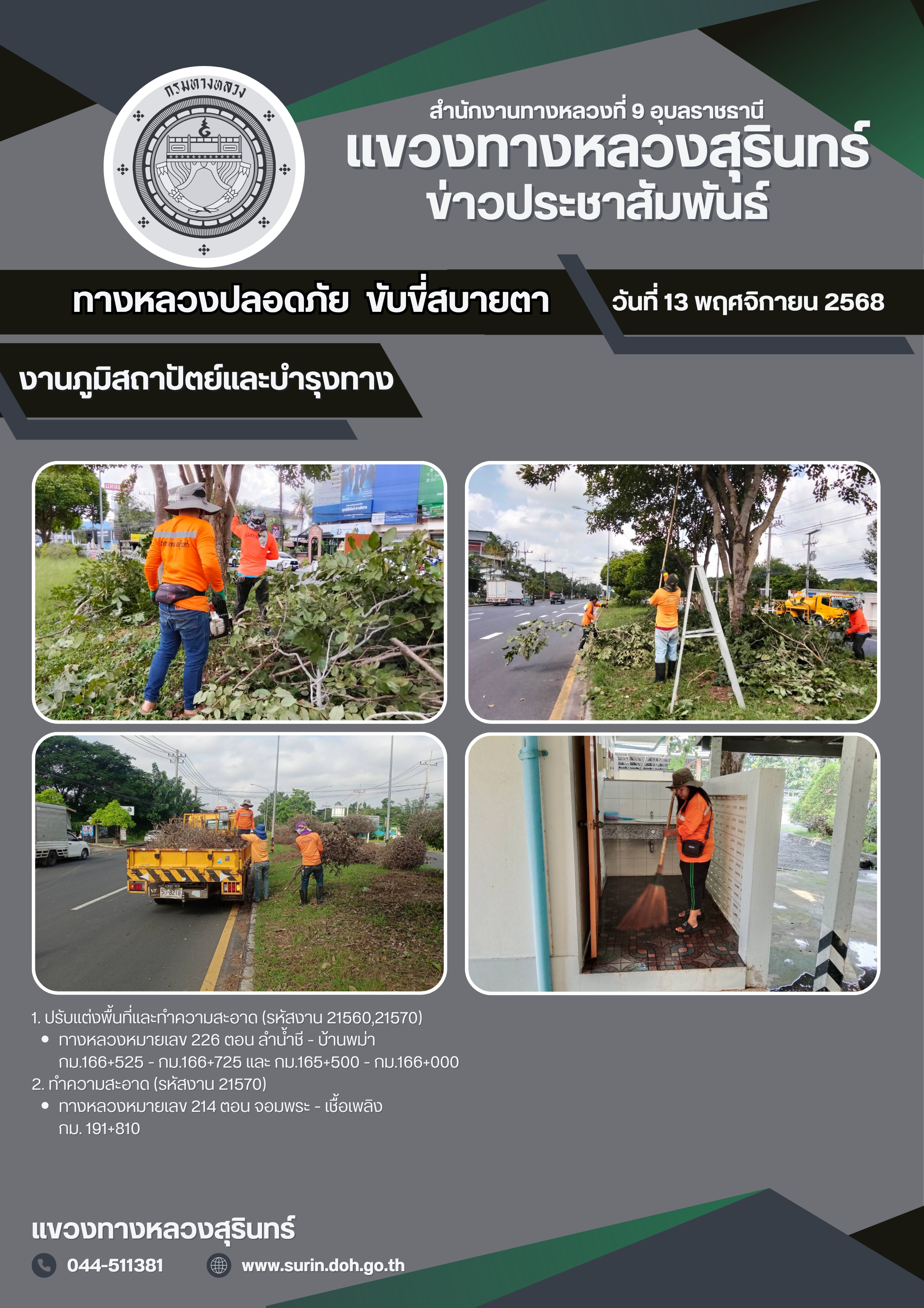 ข้อมูลข่าว : ทางหลวงปลอดภัย ขับขี่สบายตา 13 พฤศจิกายน 2568