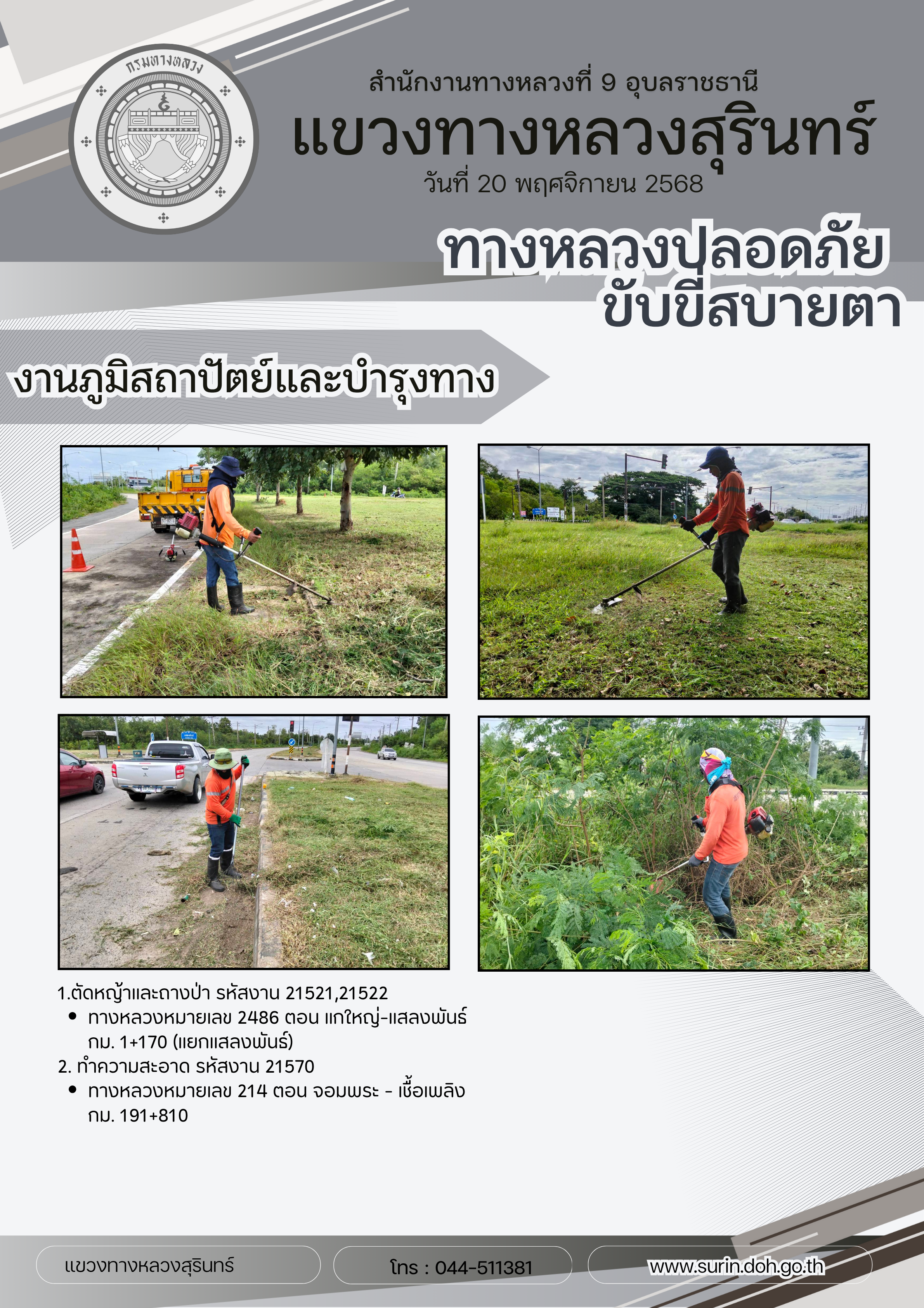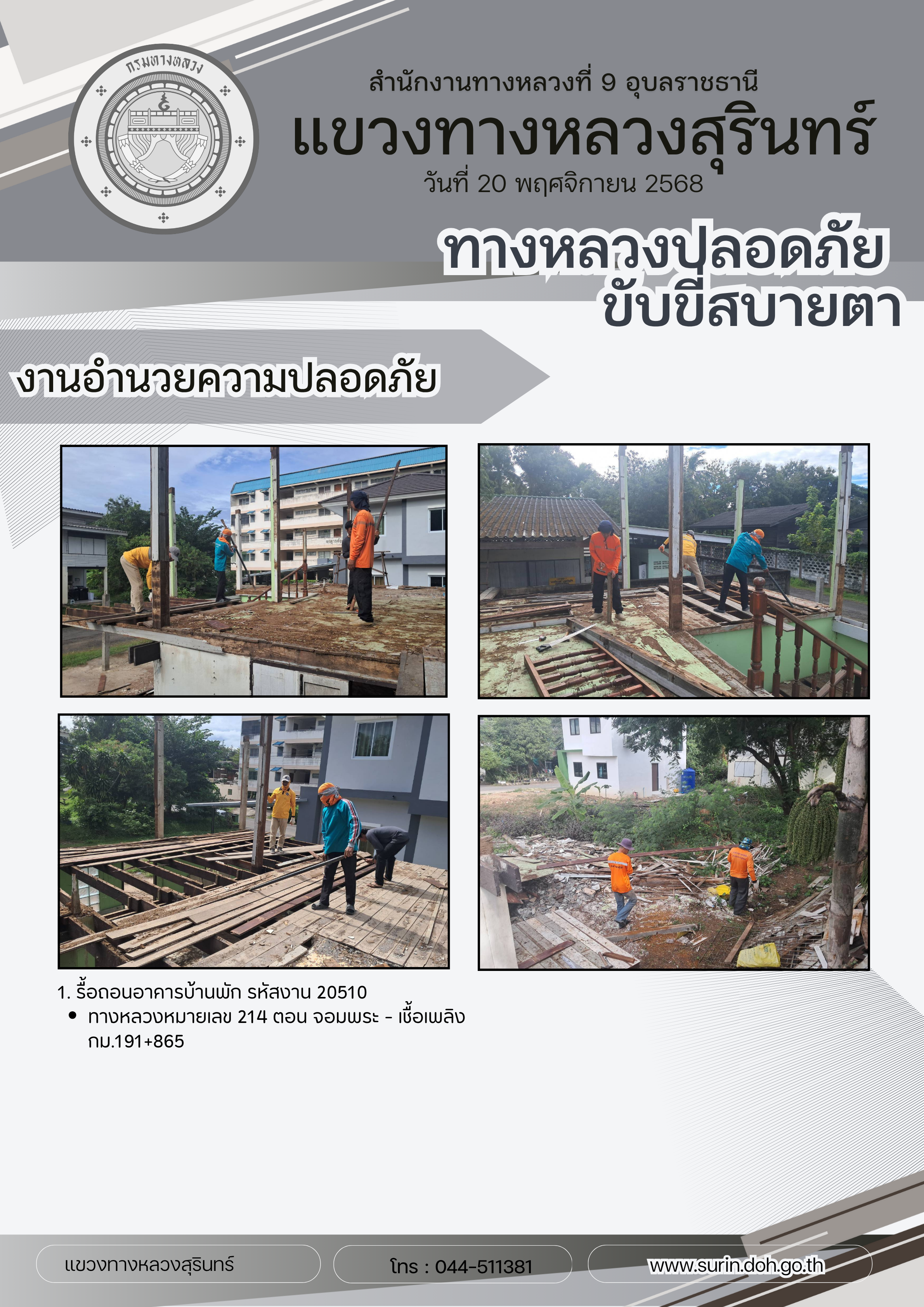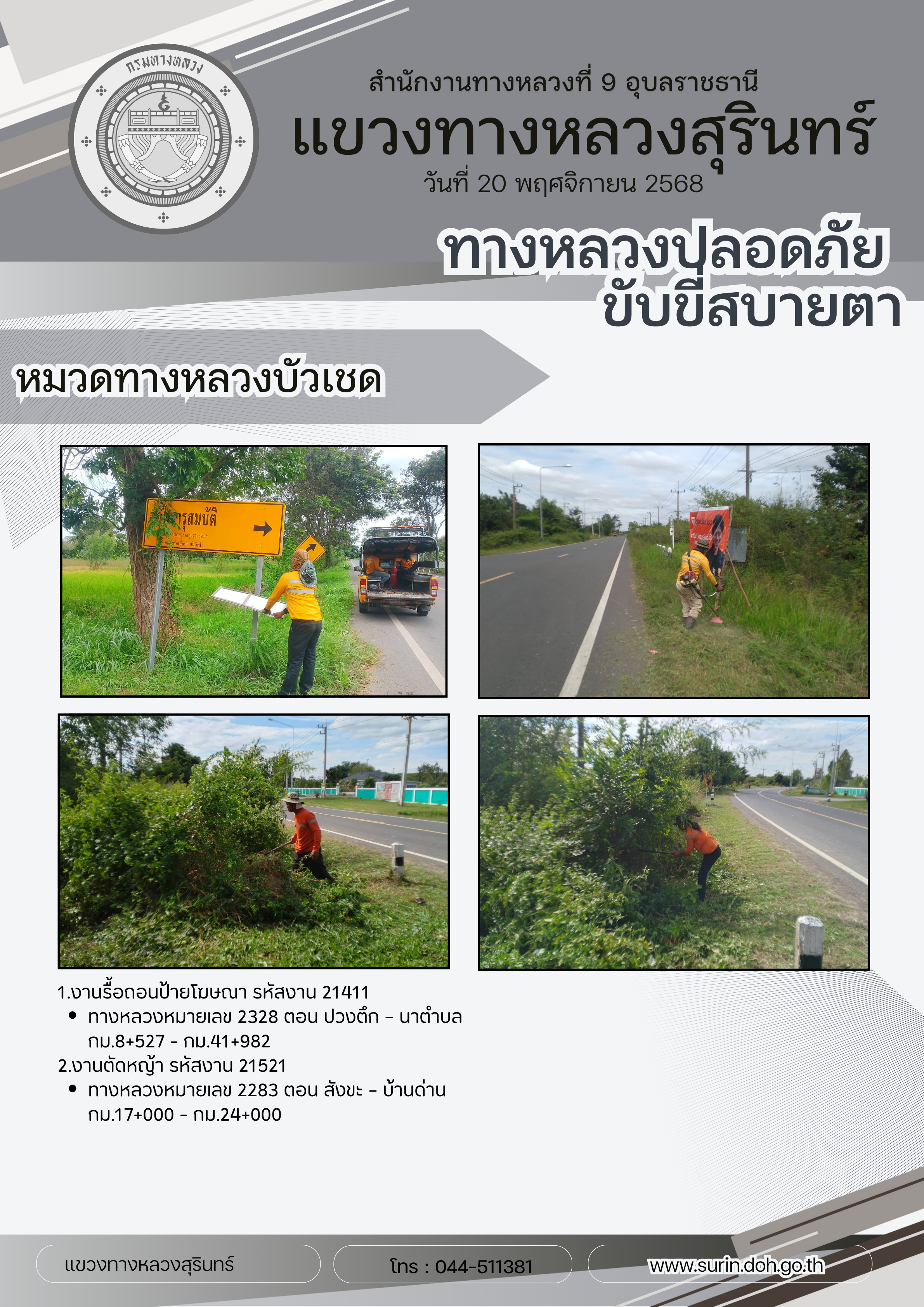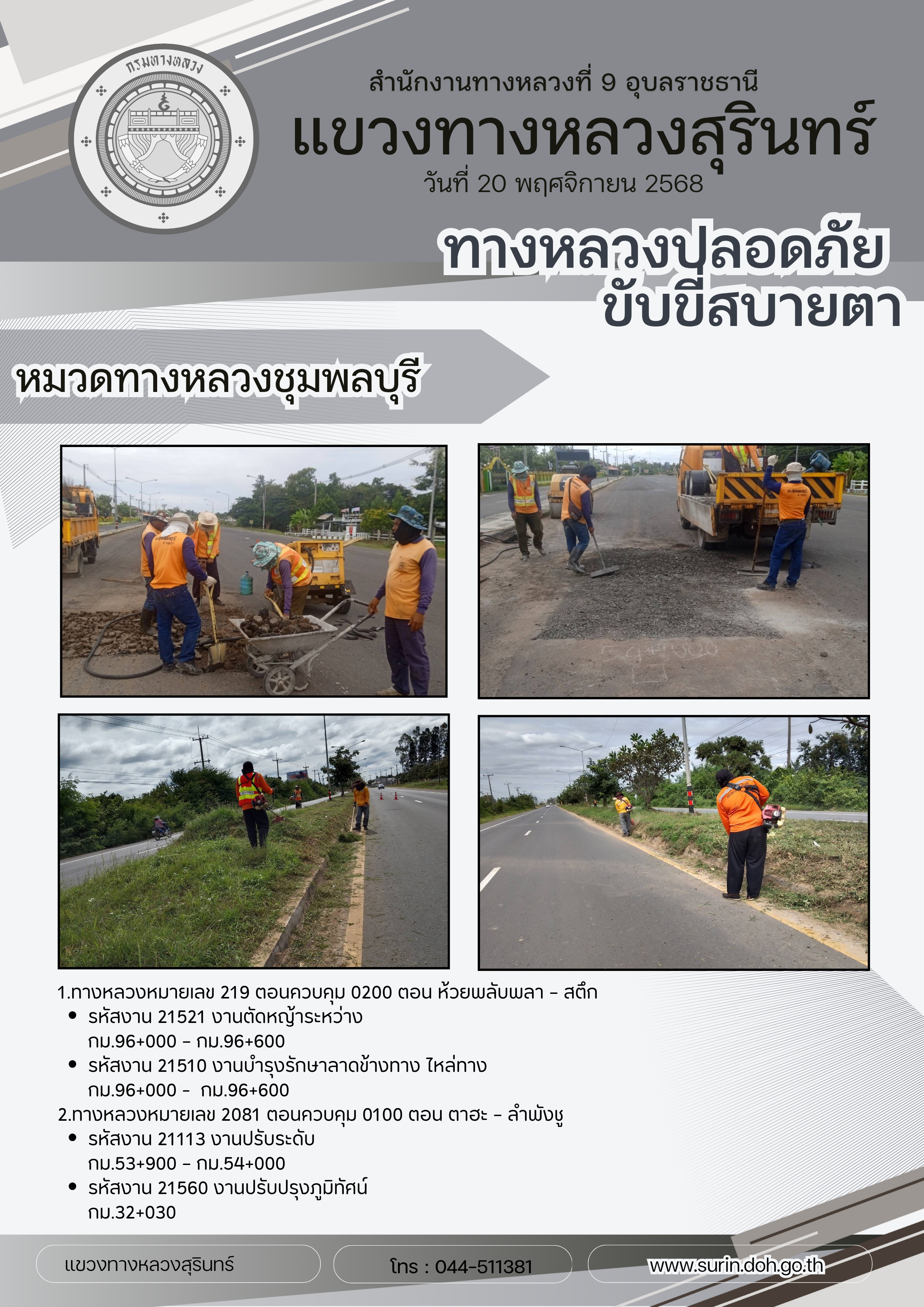 ข้อมูลข่าว : ทางหลวงปลอดภัย ขับขี่สบายตา 20 พฤศจิกายน 2568