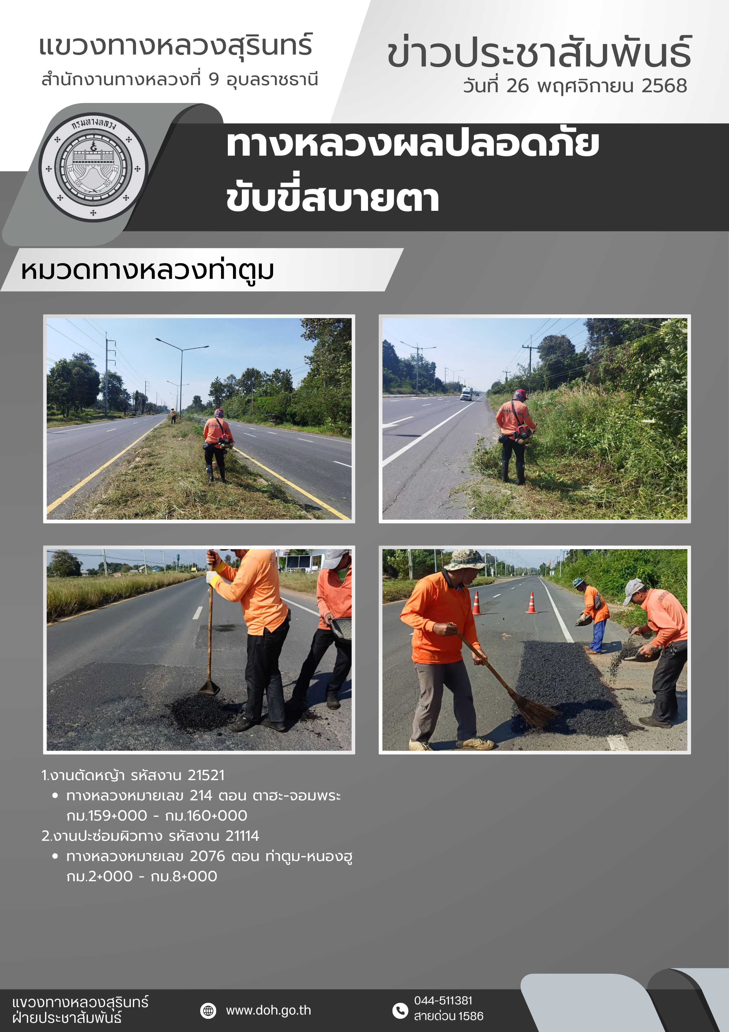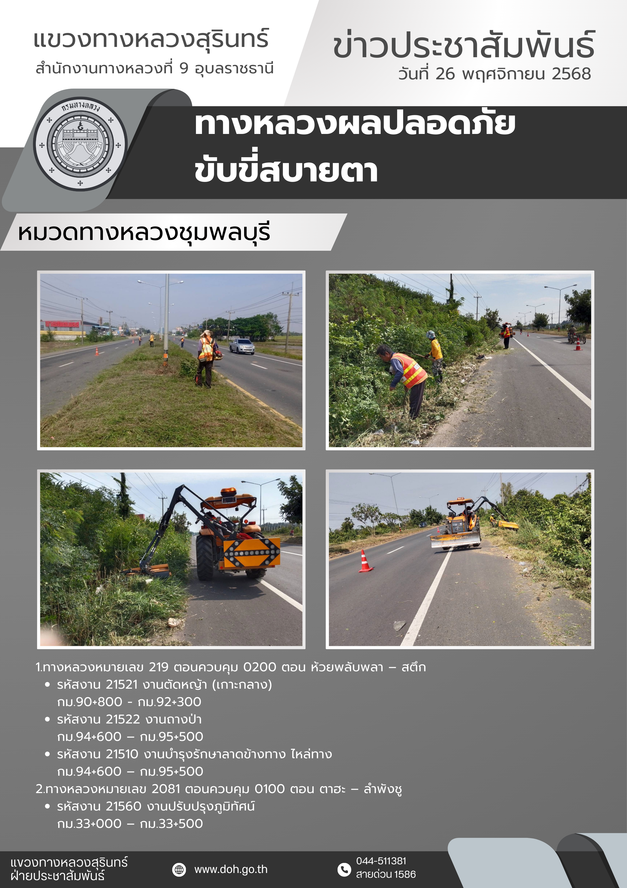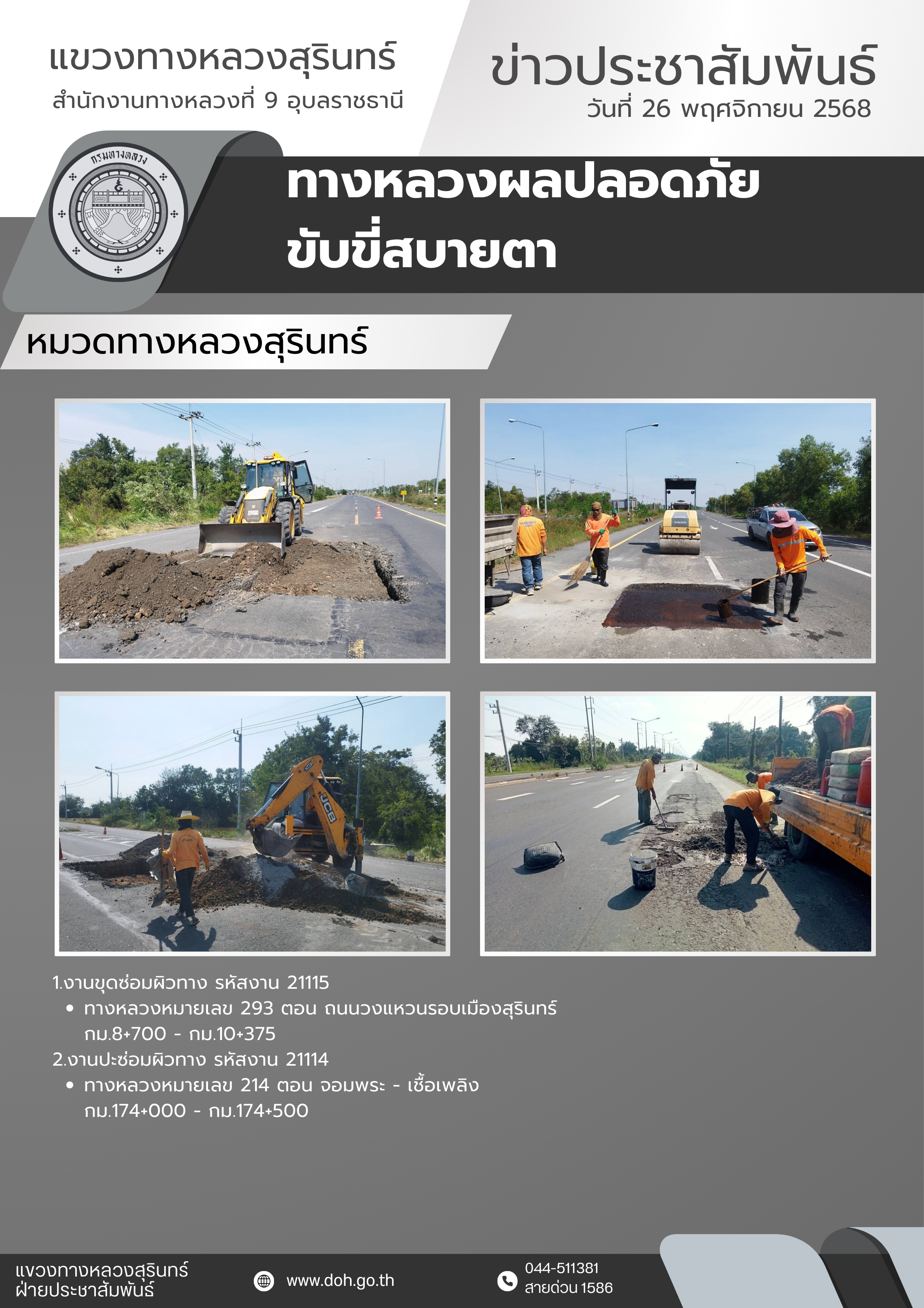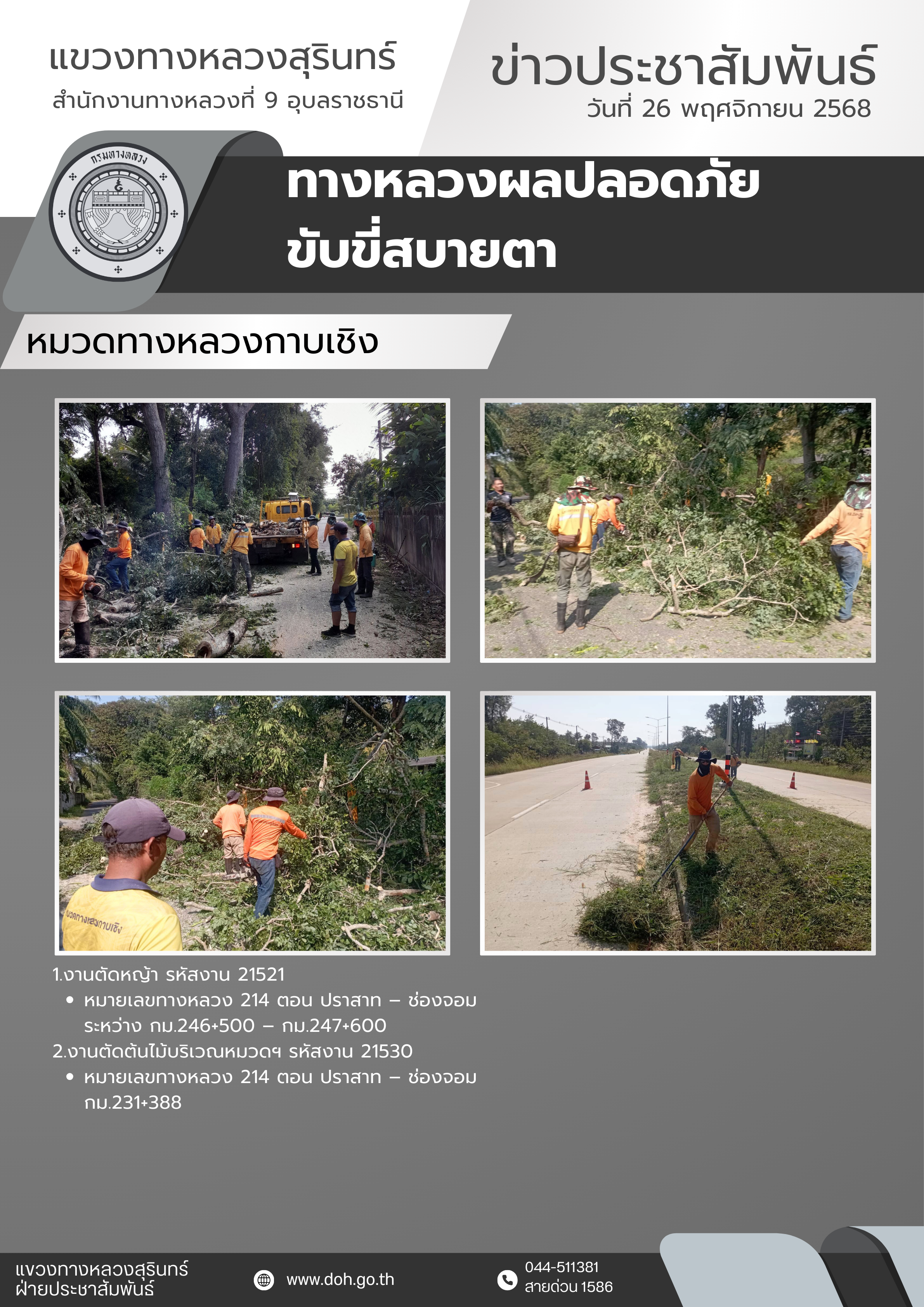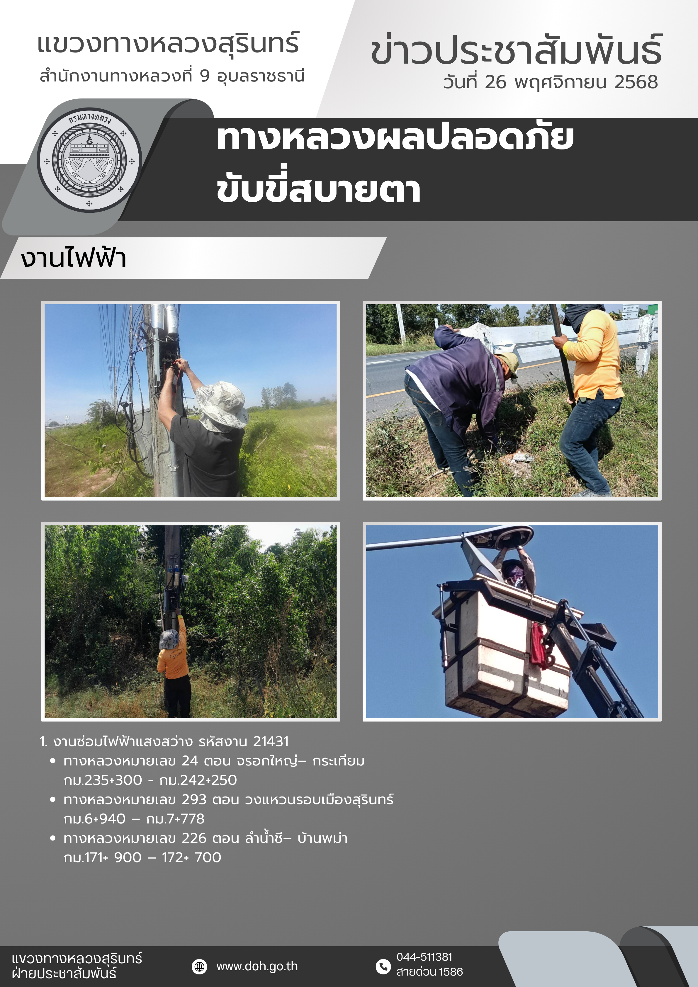 ข้อมูลข่าว : ทางหลวงปลอดภัย ขับขี่สบายตา 26 พฤศจิกายน 2568