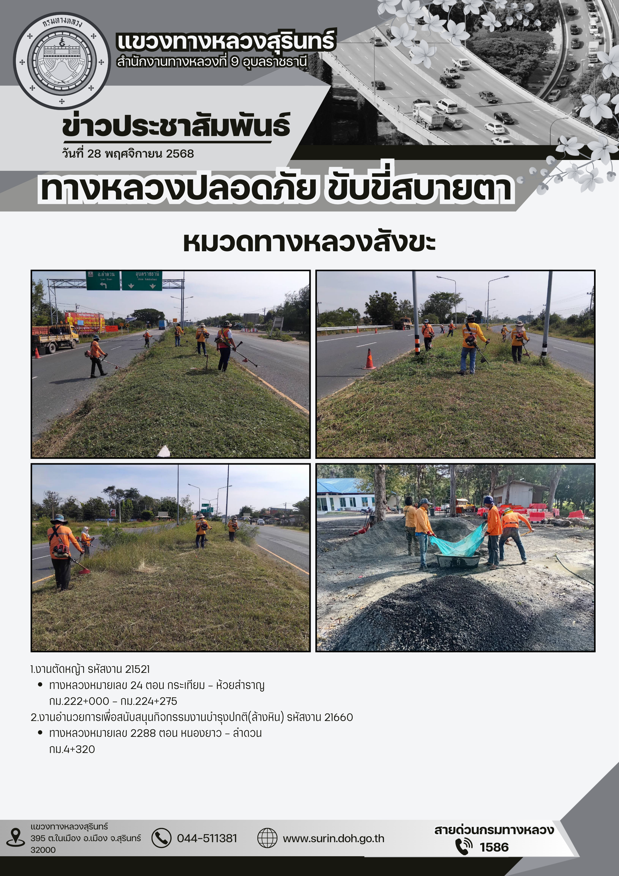 ข้อมูลข่าว : ทางหลวงปลอดภัย ขับขี่สบายตา 28 พฤศจิกายน 2568