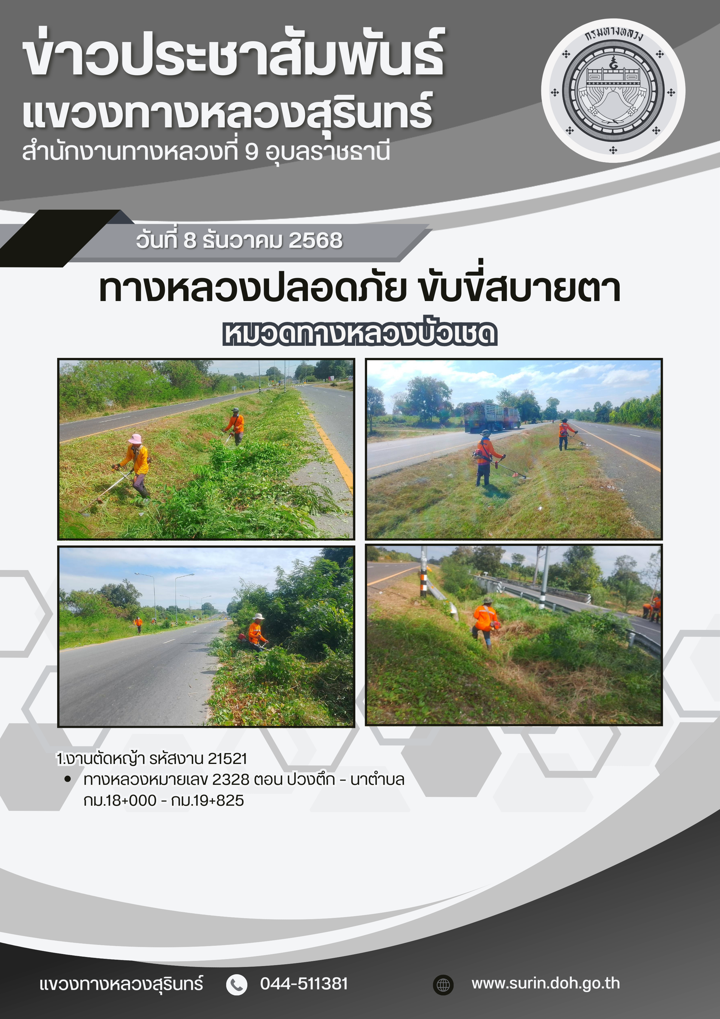 ข้อมูลข่าว : ทางหลวงปลอดภัย ขับขี่สบายตา 8 ธันวาคม 2568