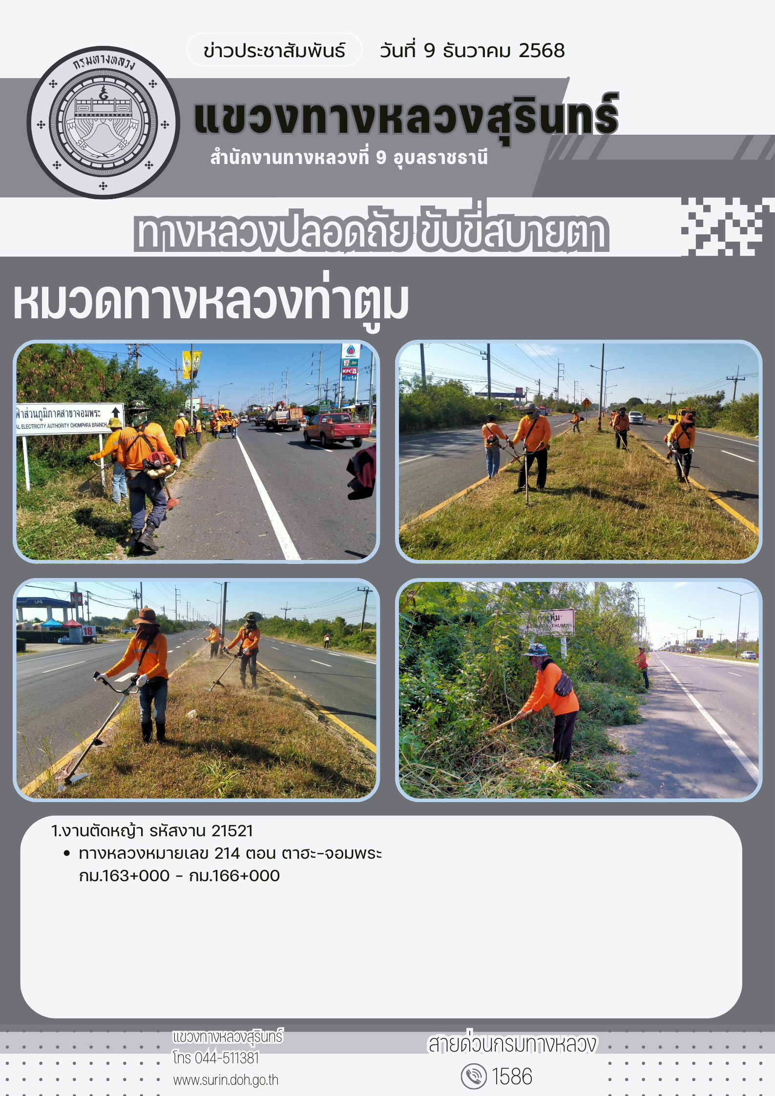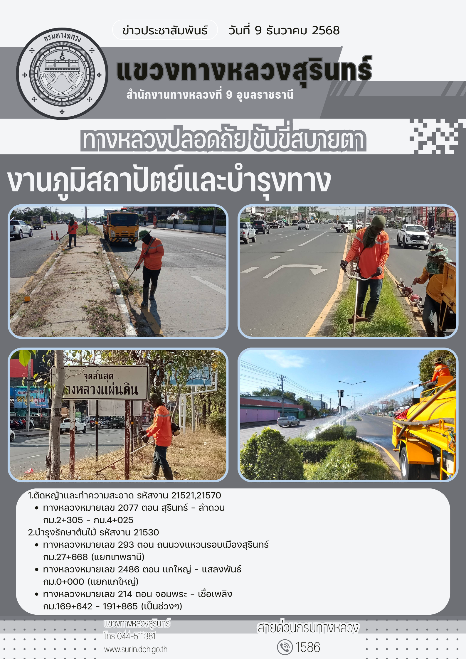ข้อมูลข่าว : ทางหลวงปลอดภัย ขับขี่สบายตา 9 ธันวาคม 2568
