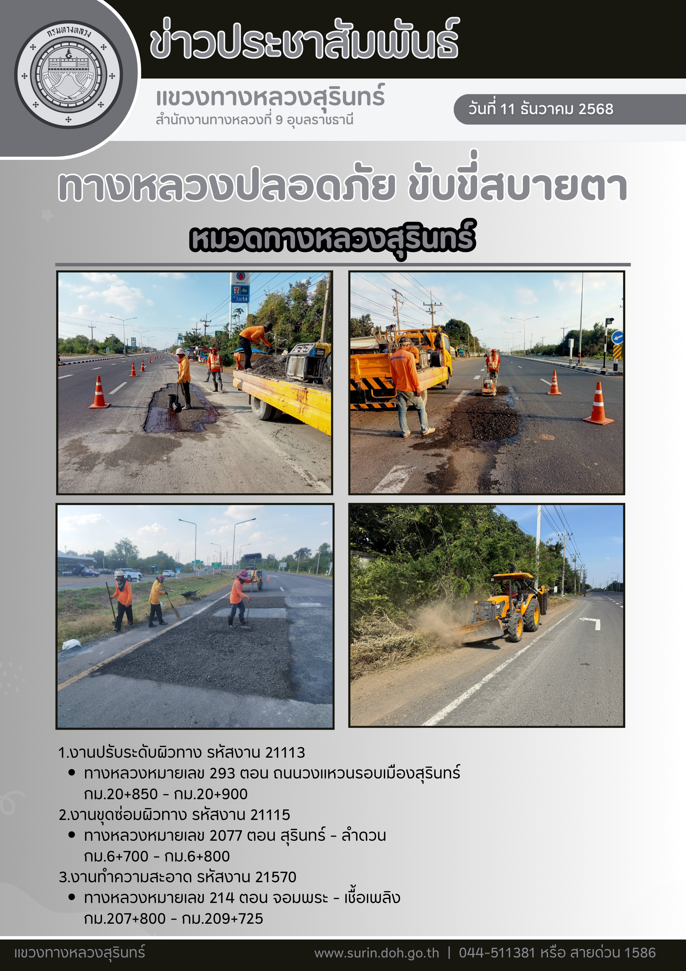 ข้อมูลข่าว : ทางหลวงปลอดภัย ขับขี่สบายตา 11 ธันวาคม 2568