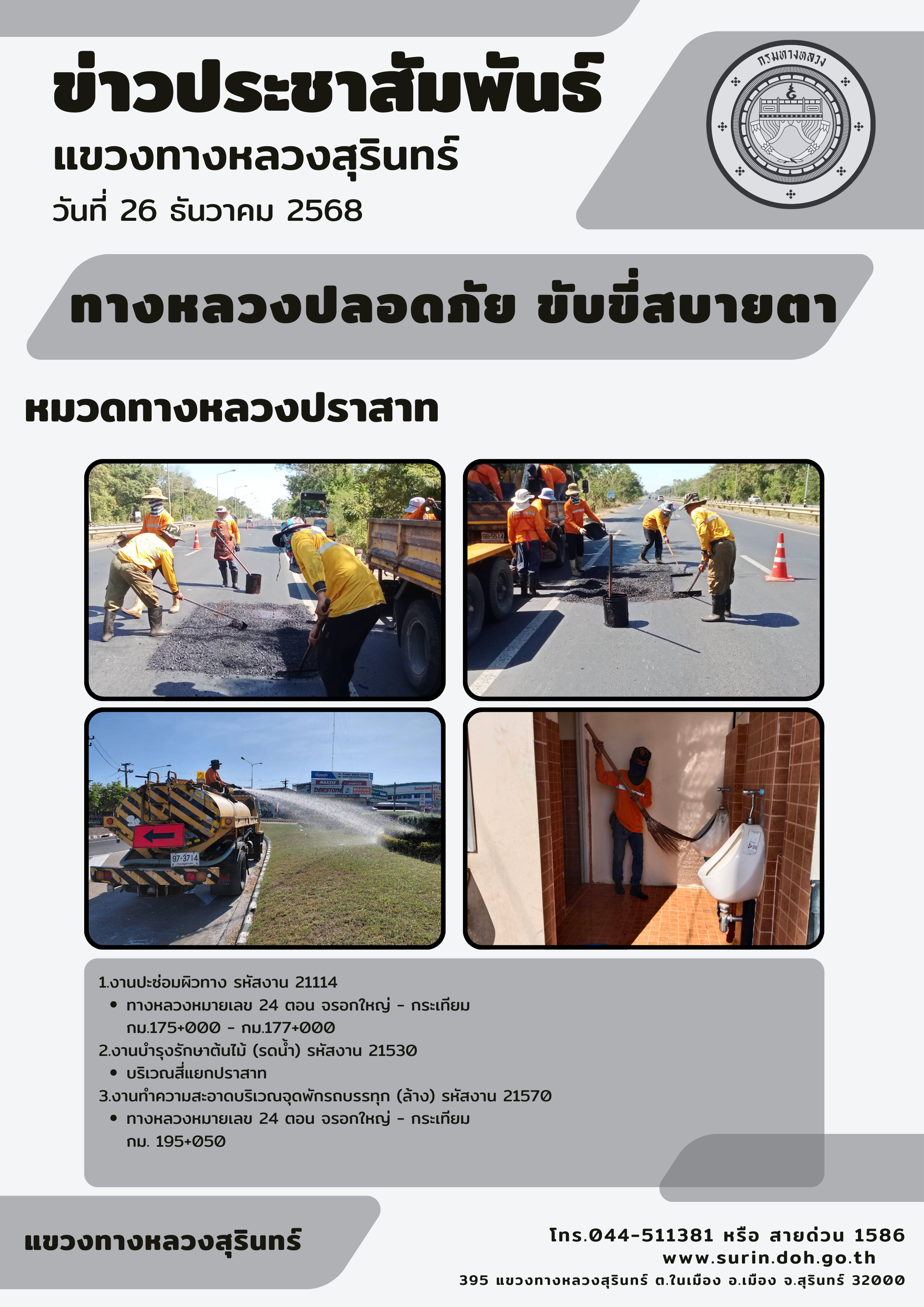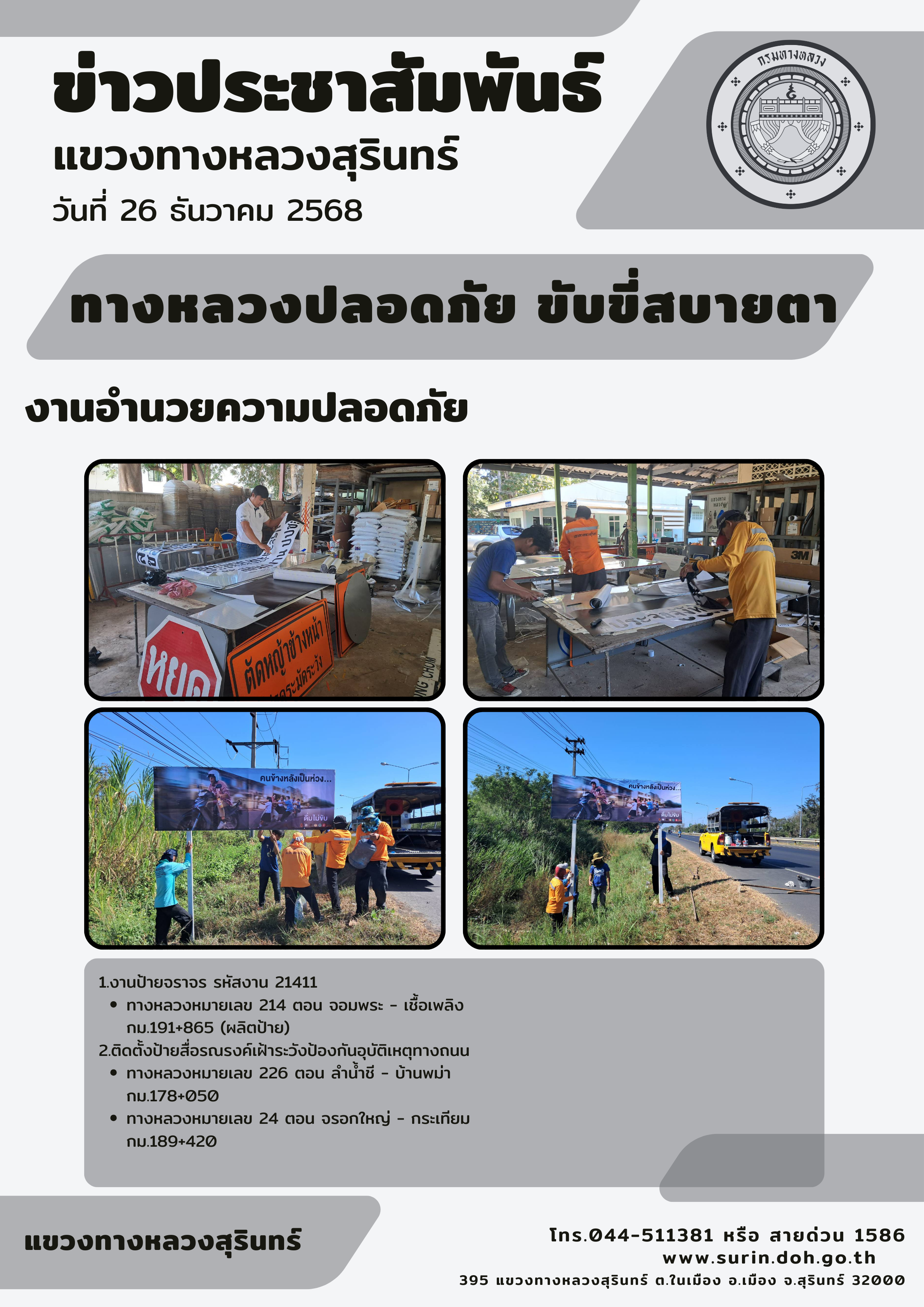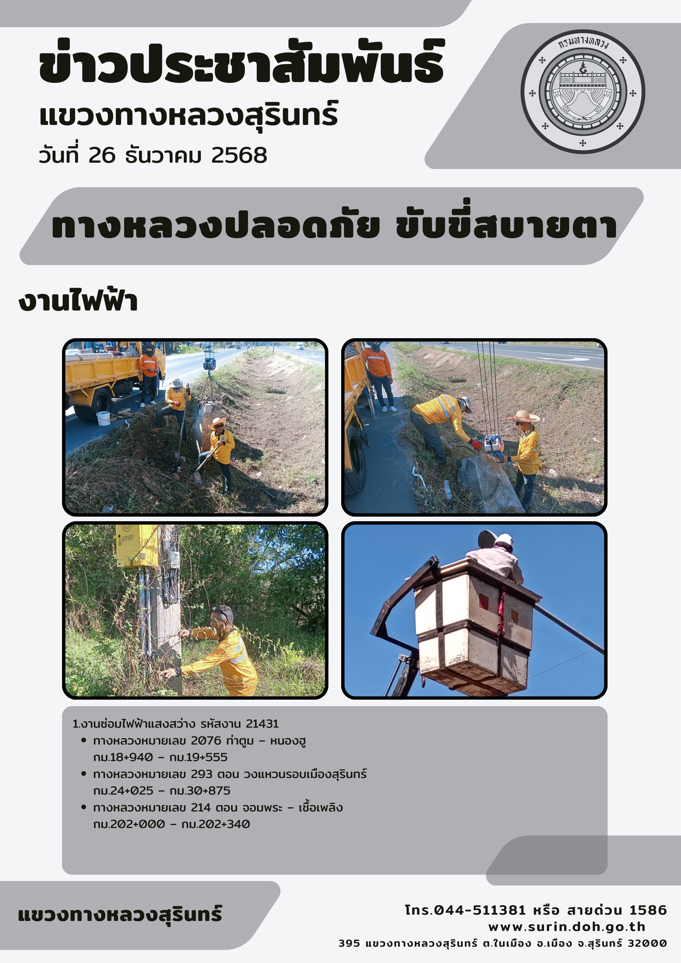 ข้อมูลข่าว : ทางหลวงปลอดภัย ขับขี่สบายตา 26 ธันวาคม 2568