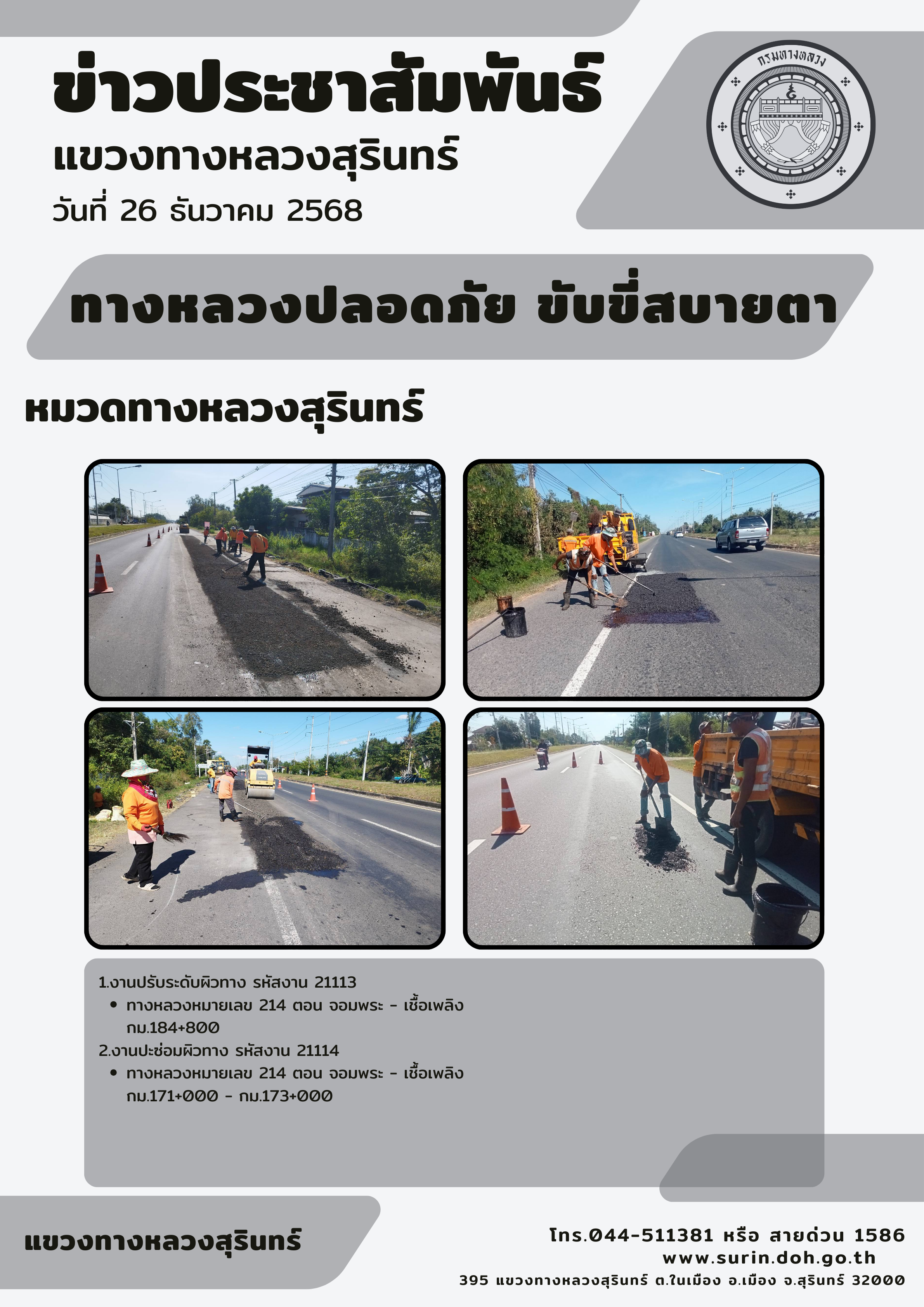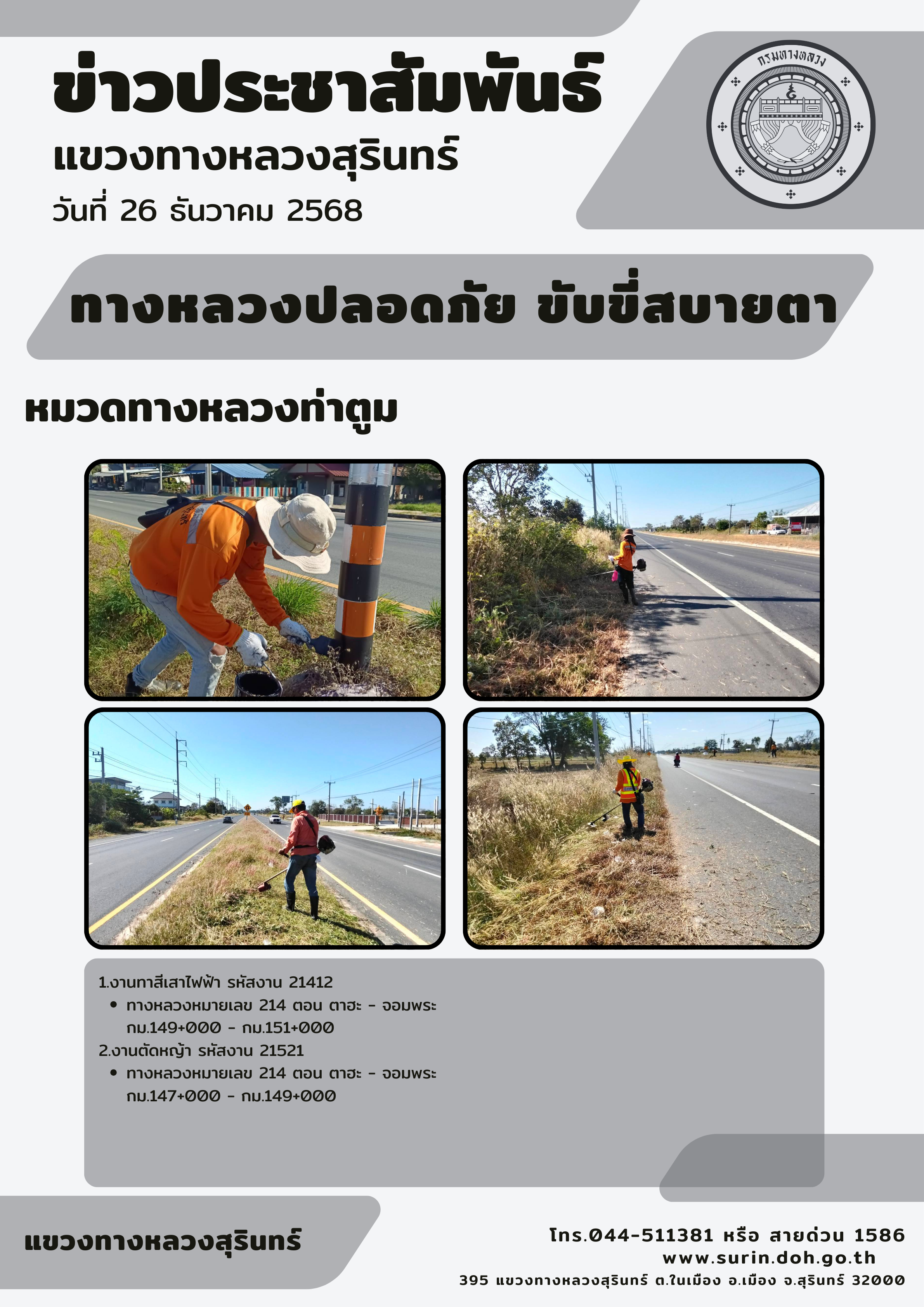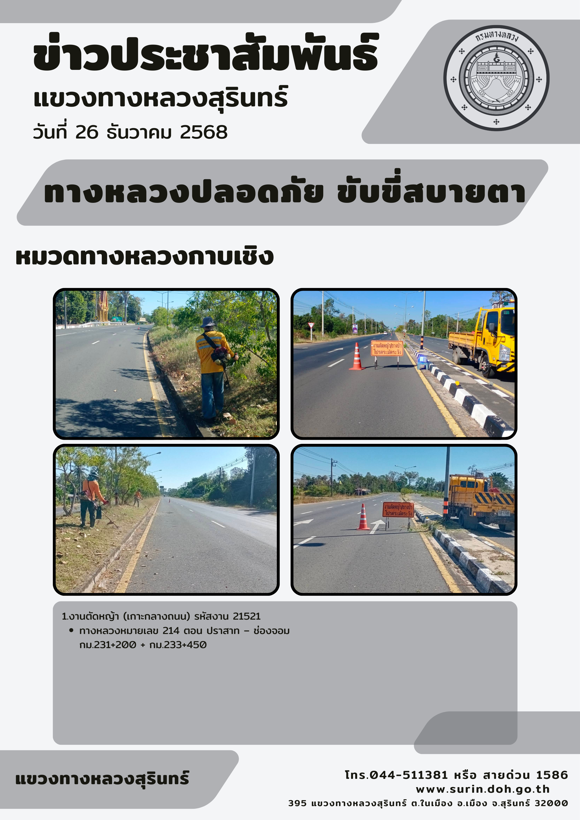 ข้อมูลข่าว : ทางหลวงปลอดภัย ขับขี่สบายตา 26 ธันวาคม 2568
