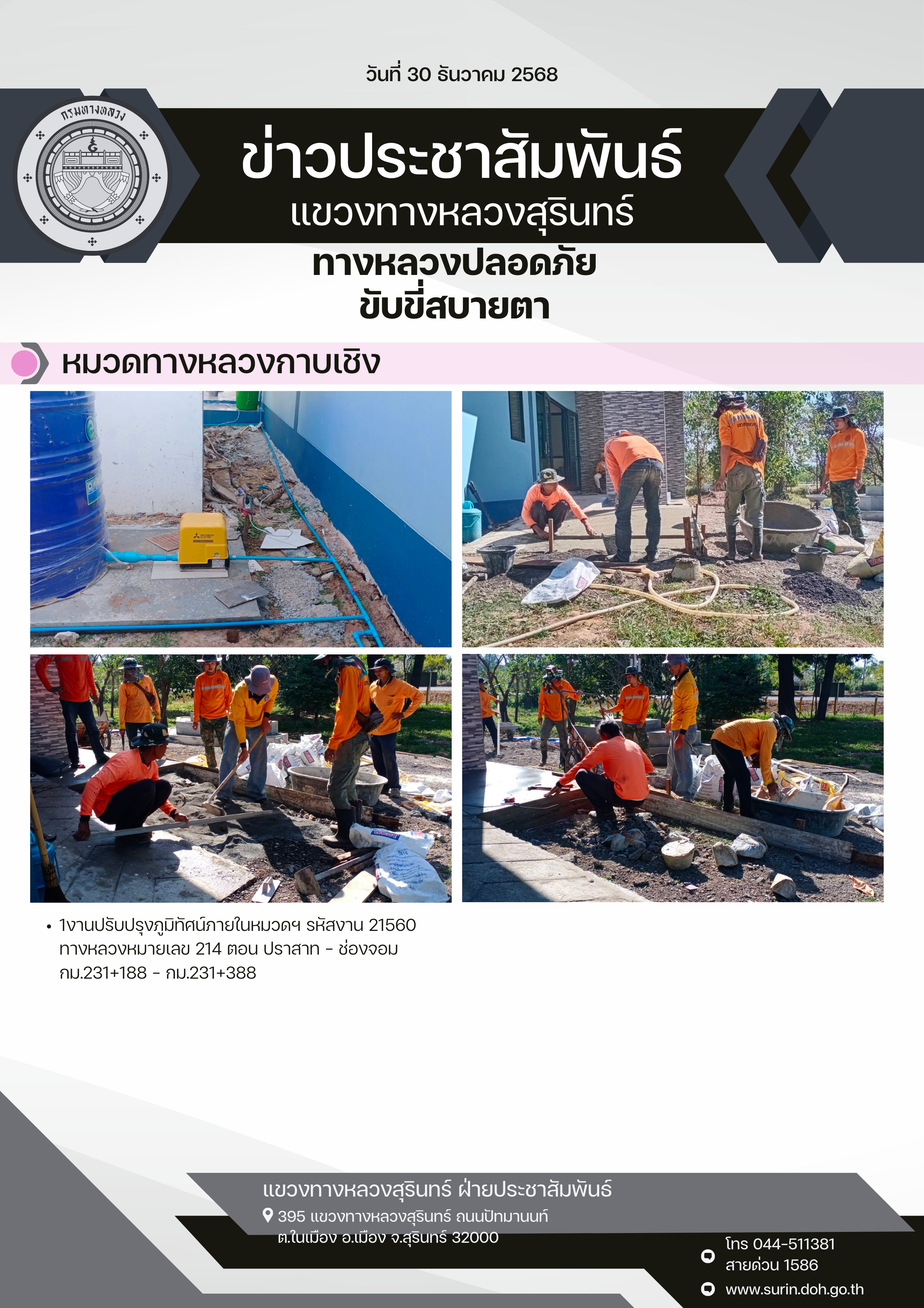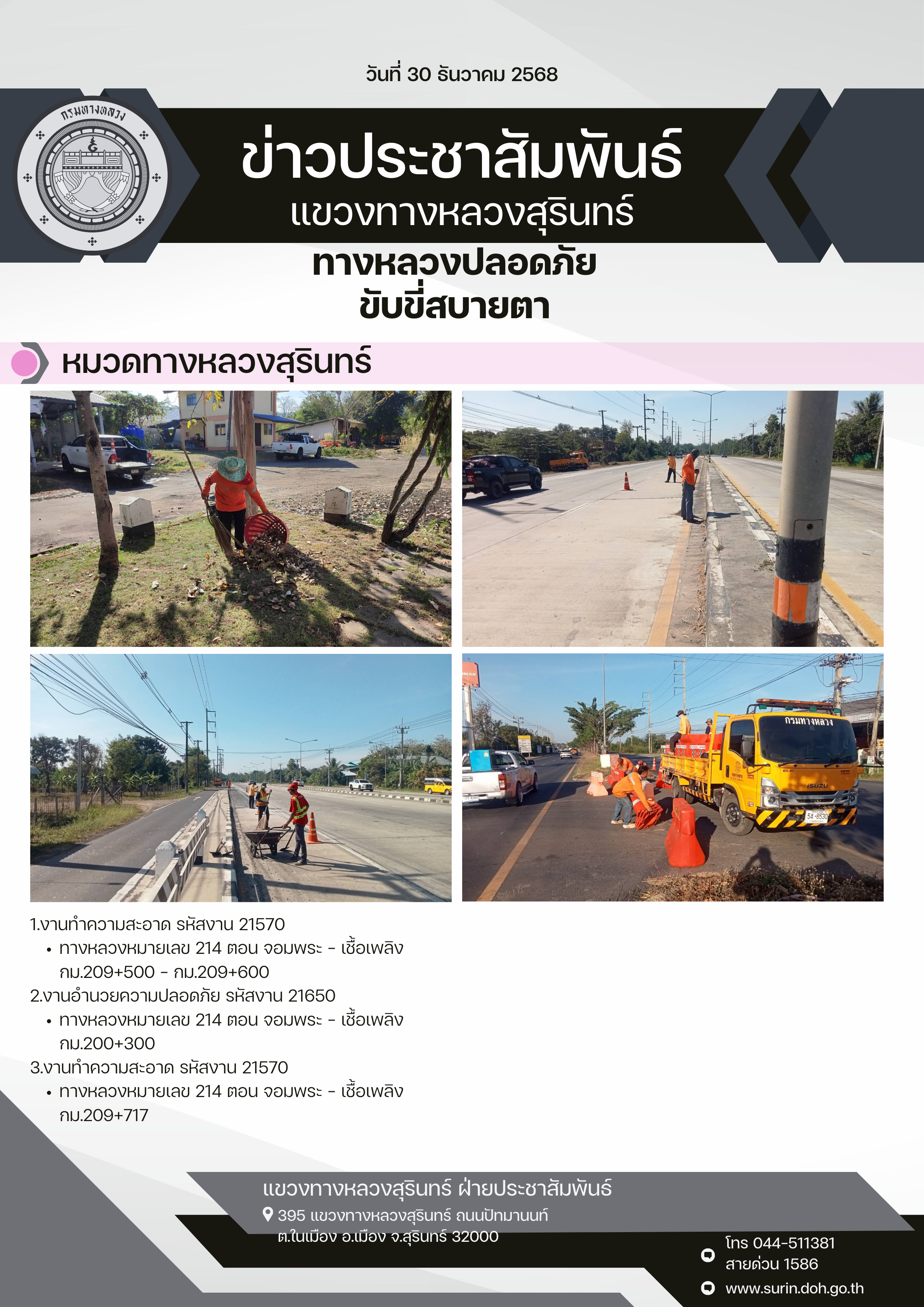 ข้อมูลข่าว : ทางหลวงปลอดภัย ขับขี่สบายตา 30 ธันวาคม 2568