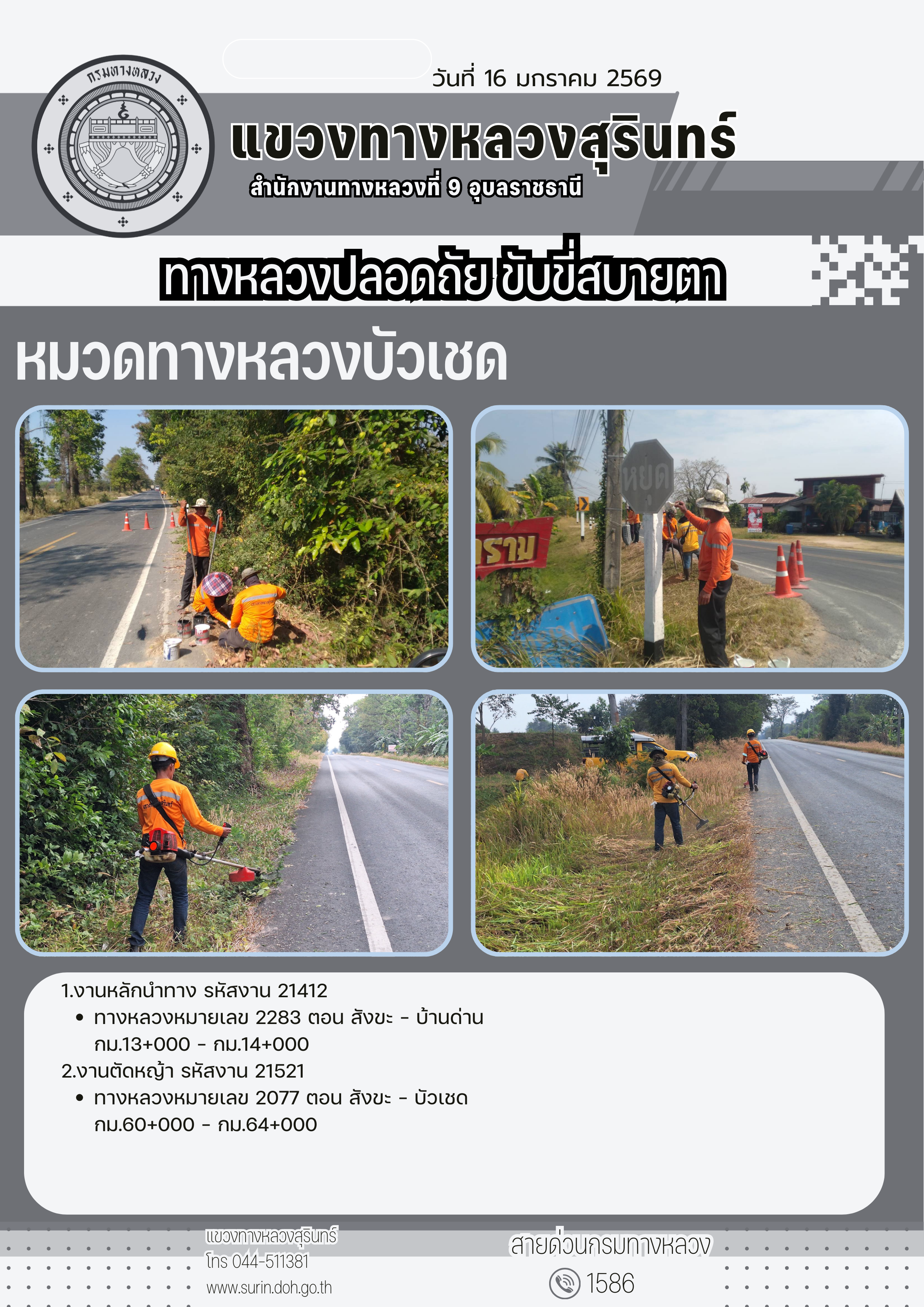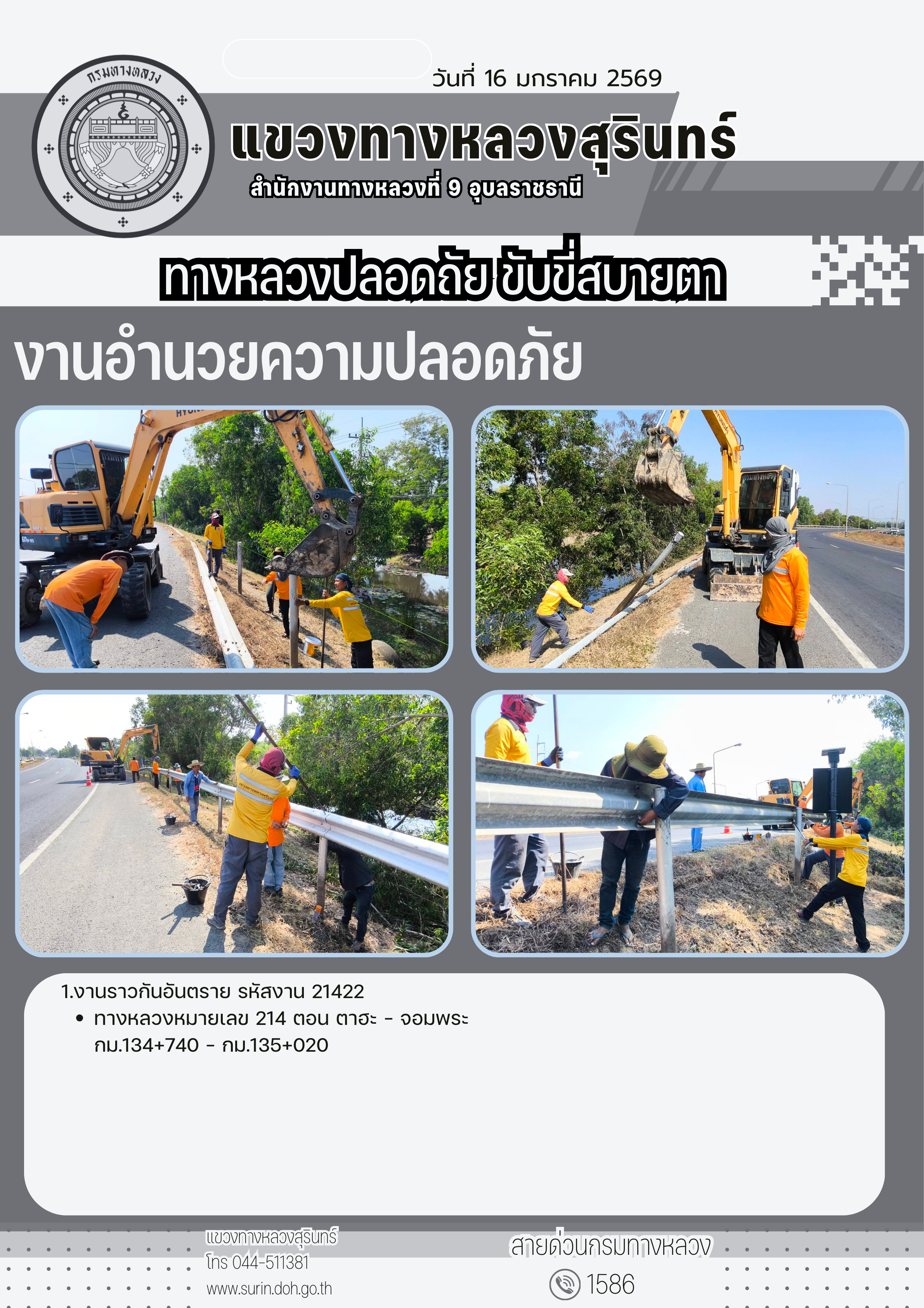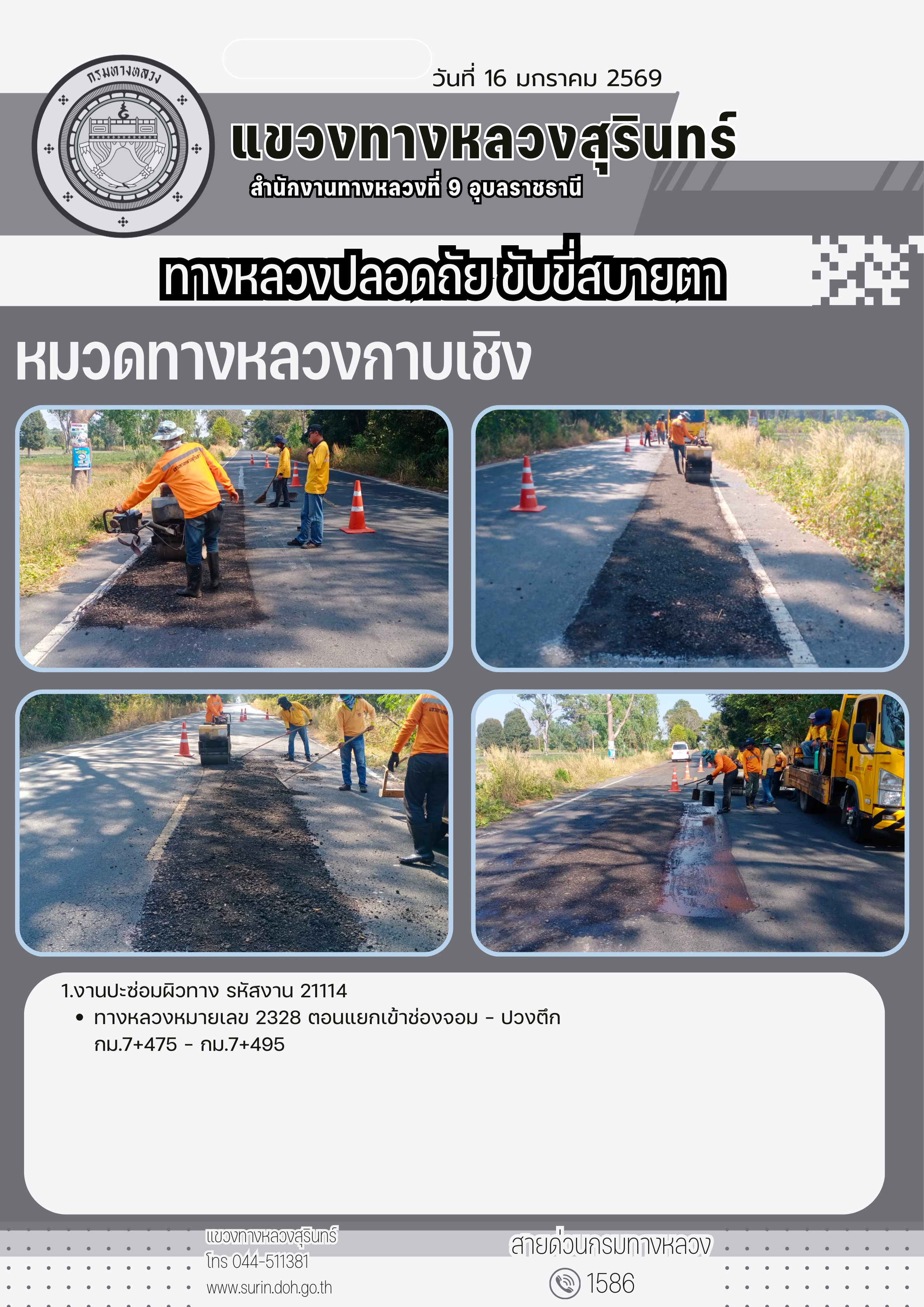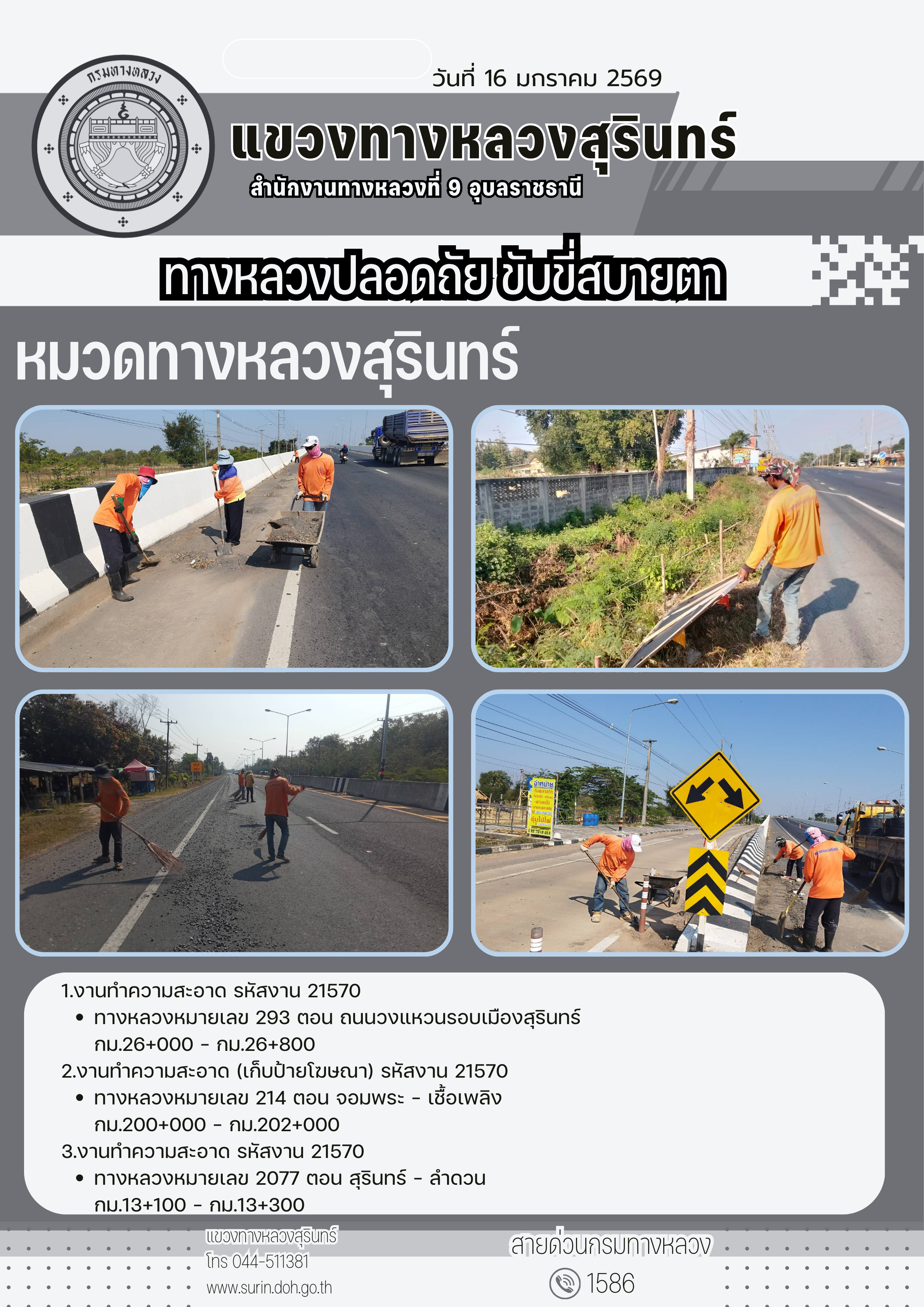 ทางหลวงปลอดภัย ขับขี่สบายตา 16 มกราคม 2569