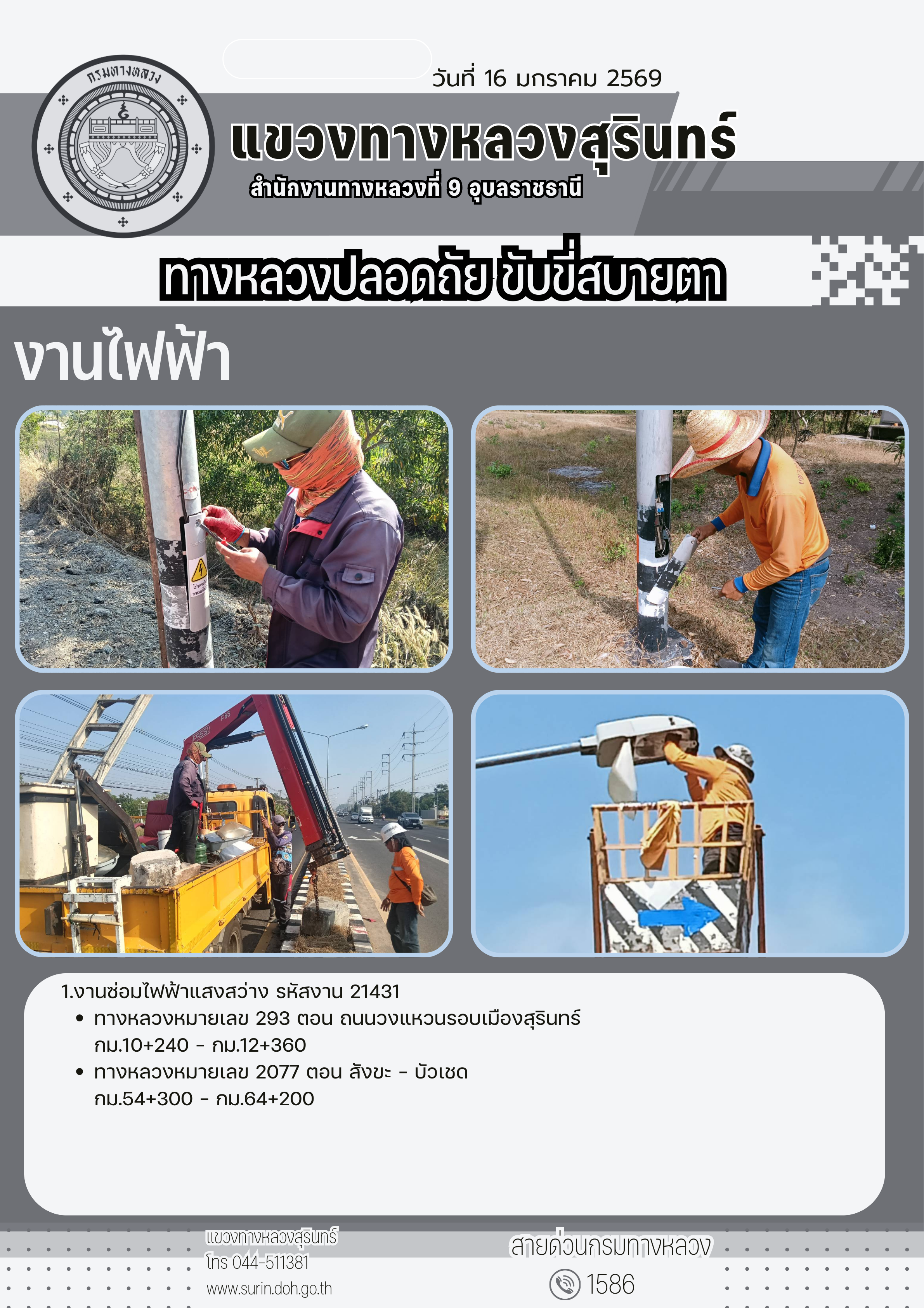 ข้อมูลข่าว : ทางหลวงปลอดภัย ขับขี่สบายตา 16 มกราคม 2569