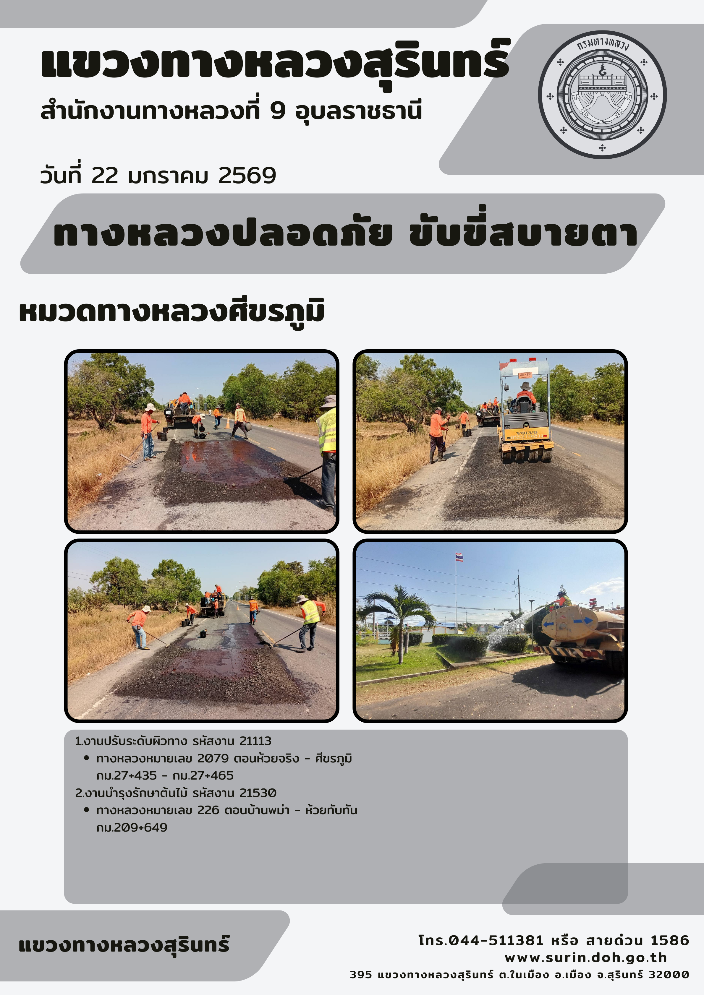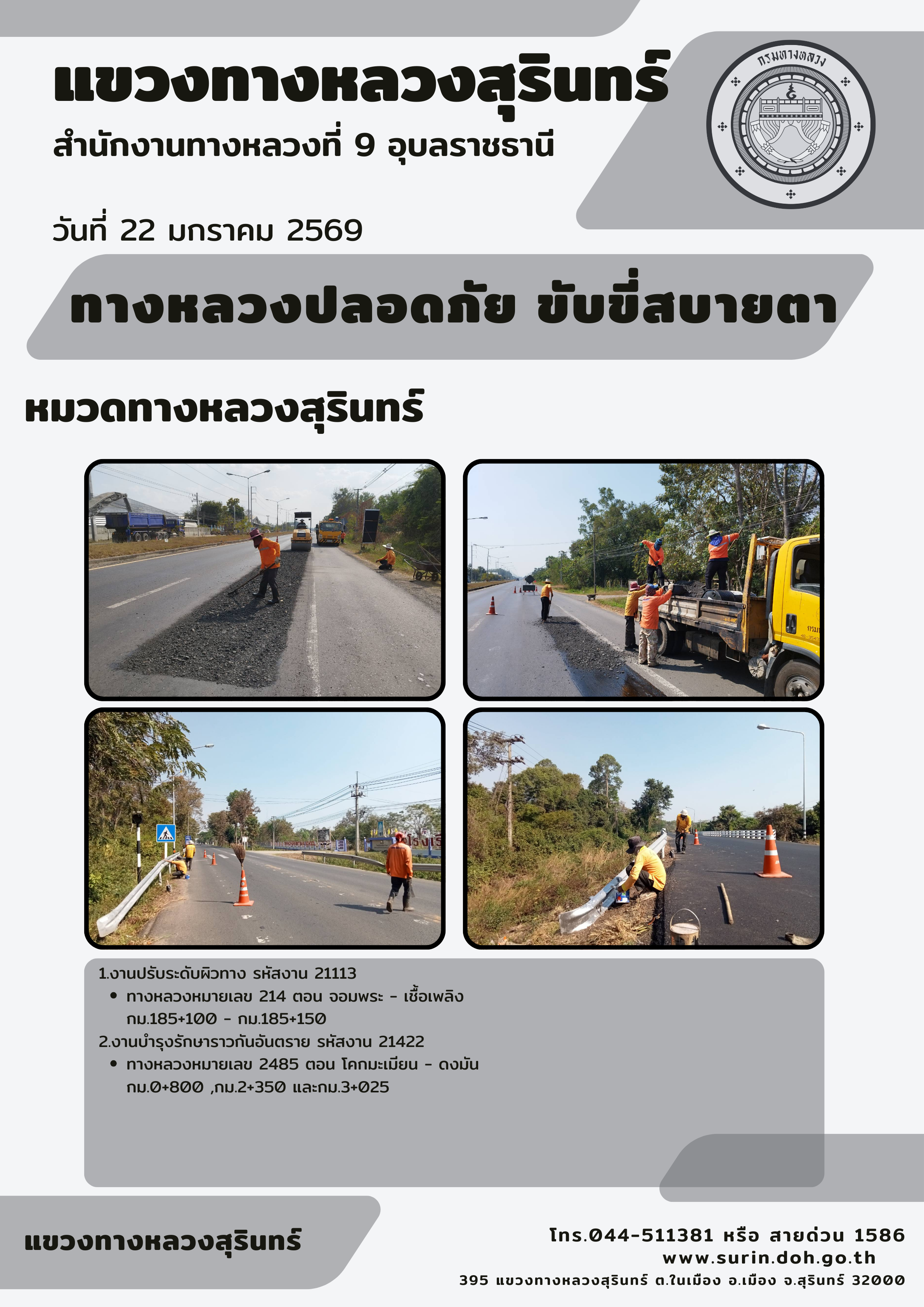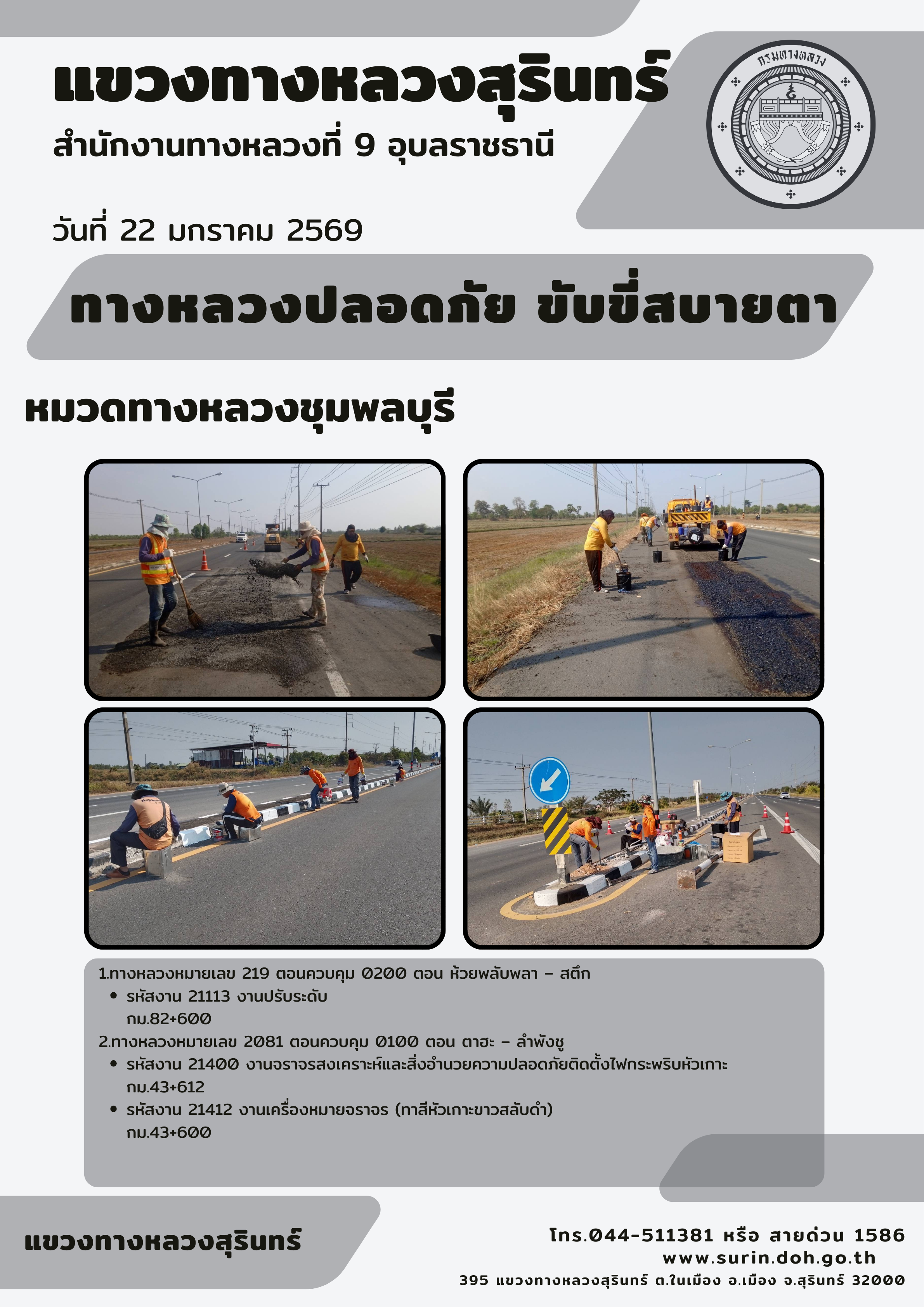 ทางหลวงปลอดภัย ขับขี่สบายตา 22 มกราคม 2569