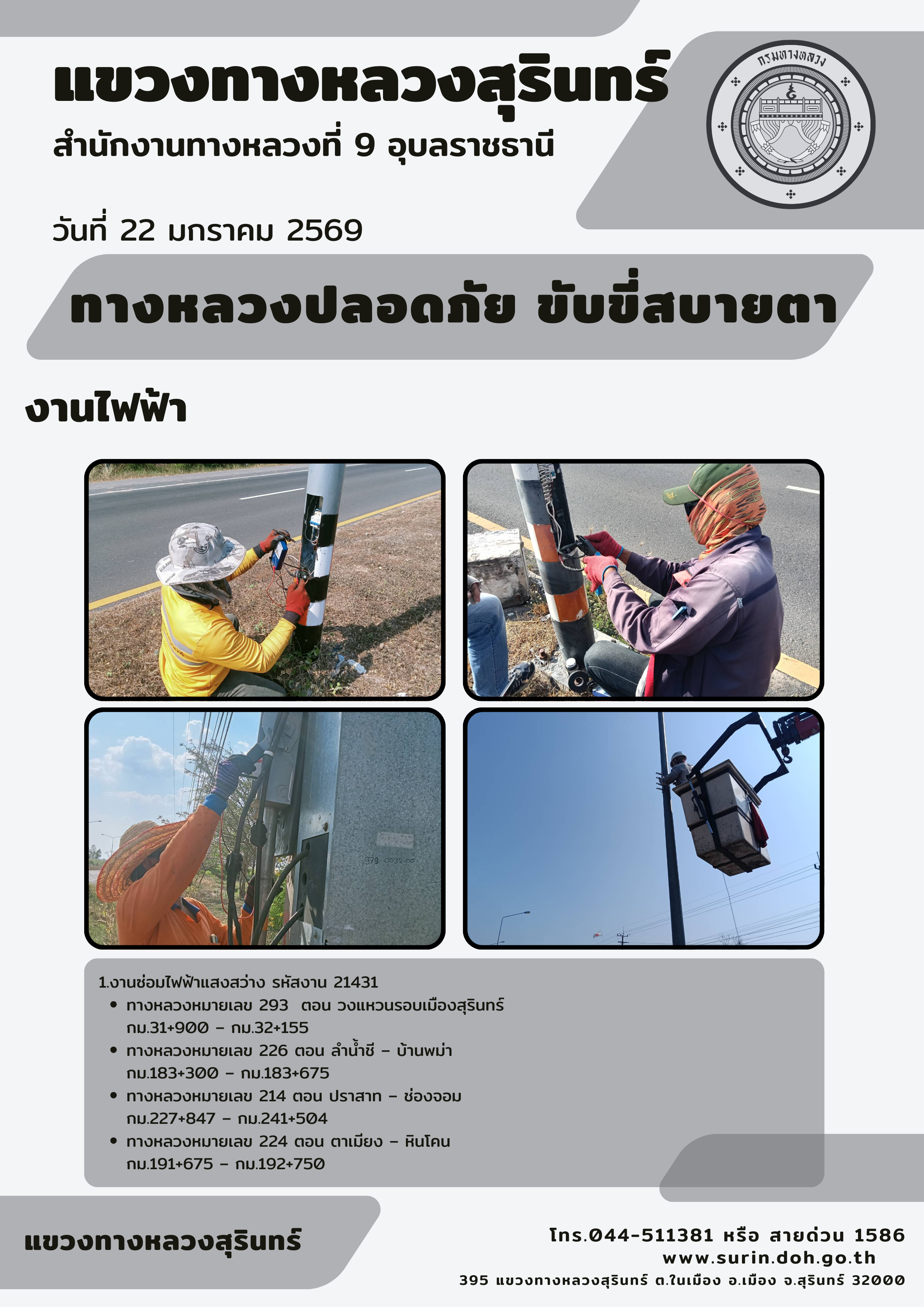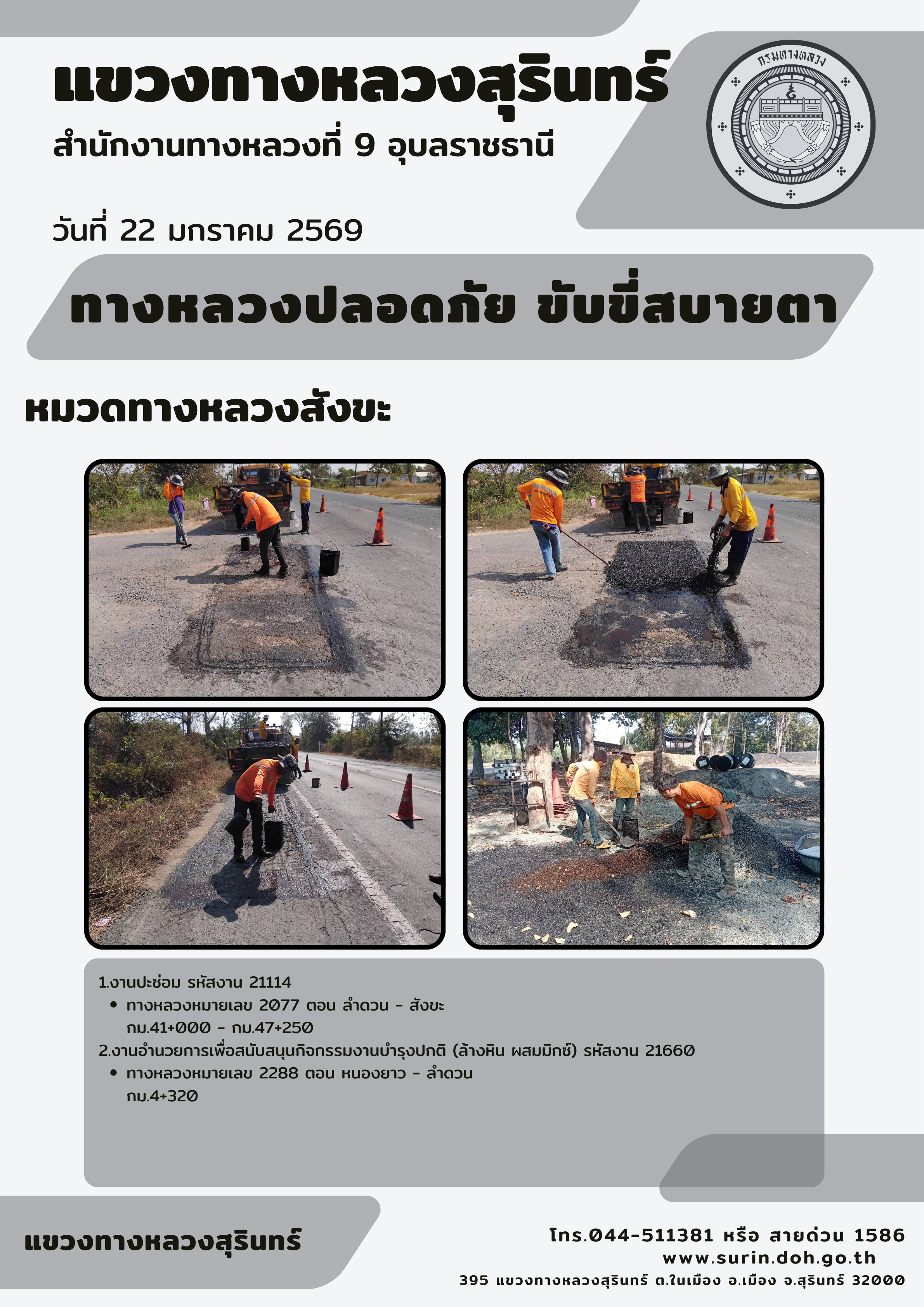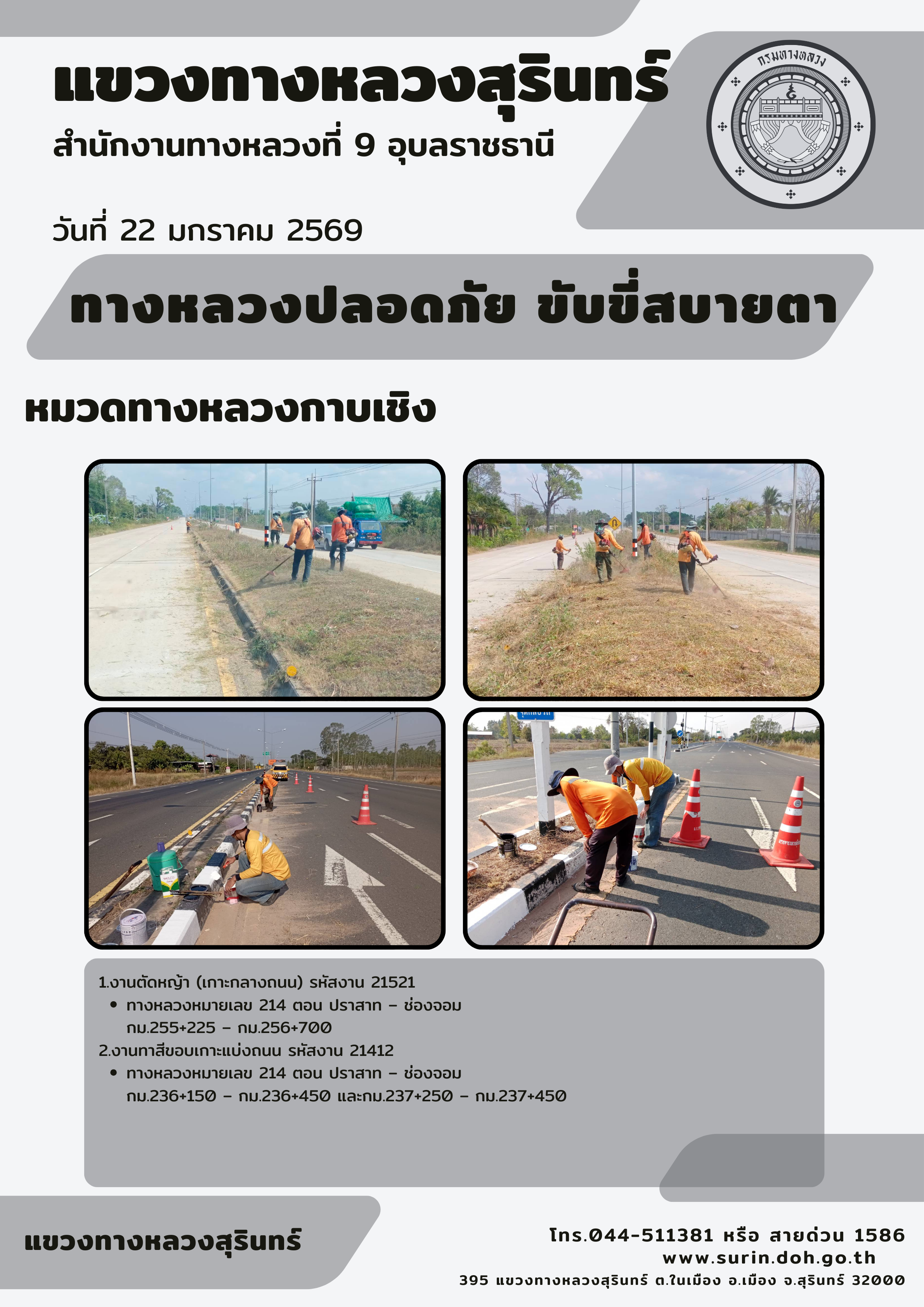 ทางหลวงปลอดภัย ขับขี่สบายตา 22 มกราคม 2569