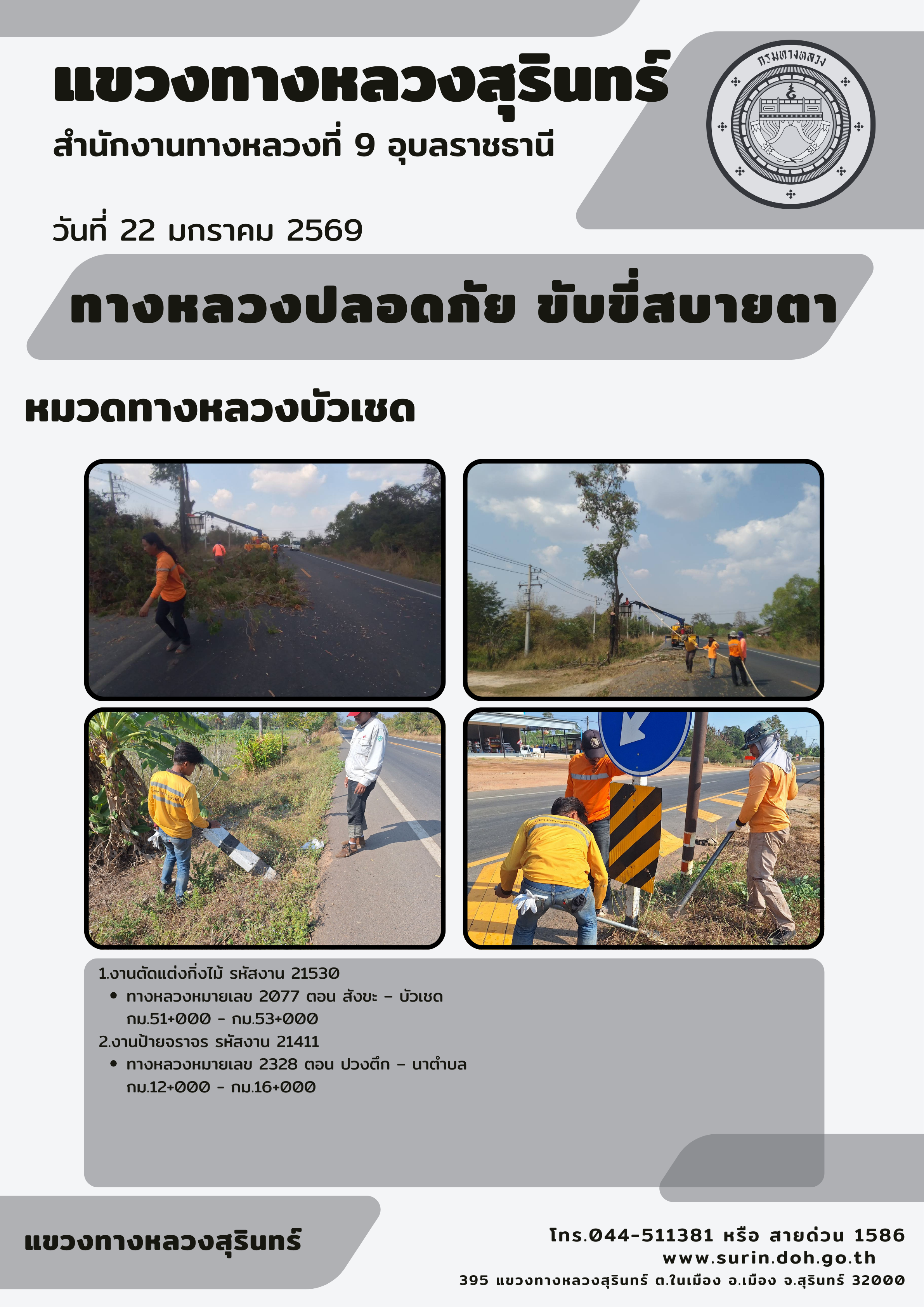 ข้อมูลข่าว : ทางหลวงปลอดภัย ขับขี่สบายตา 22 มกราคม 2569