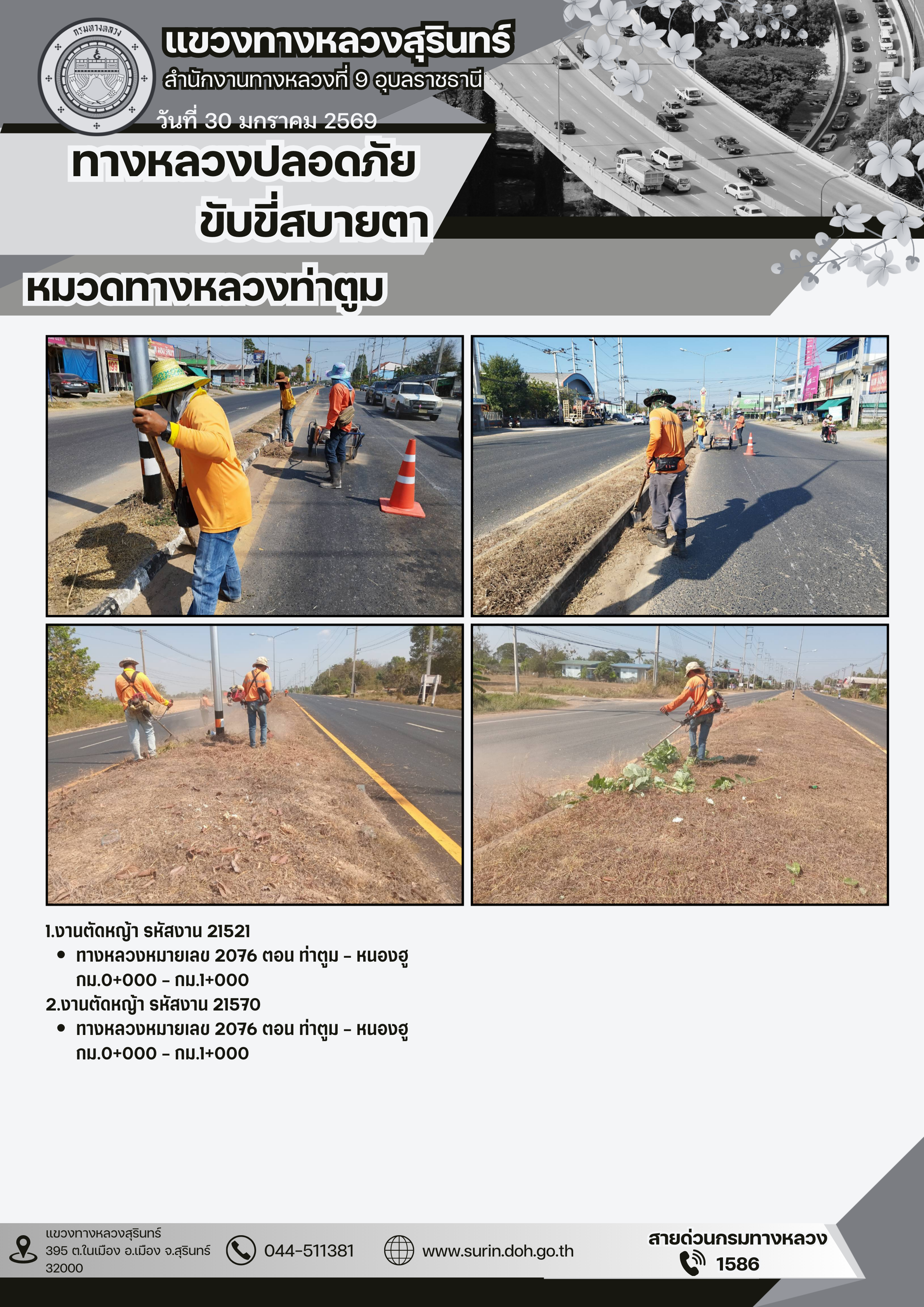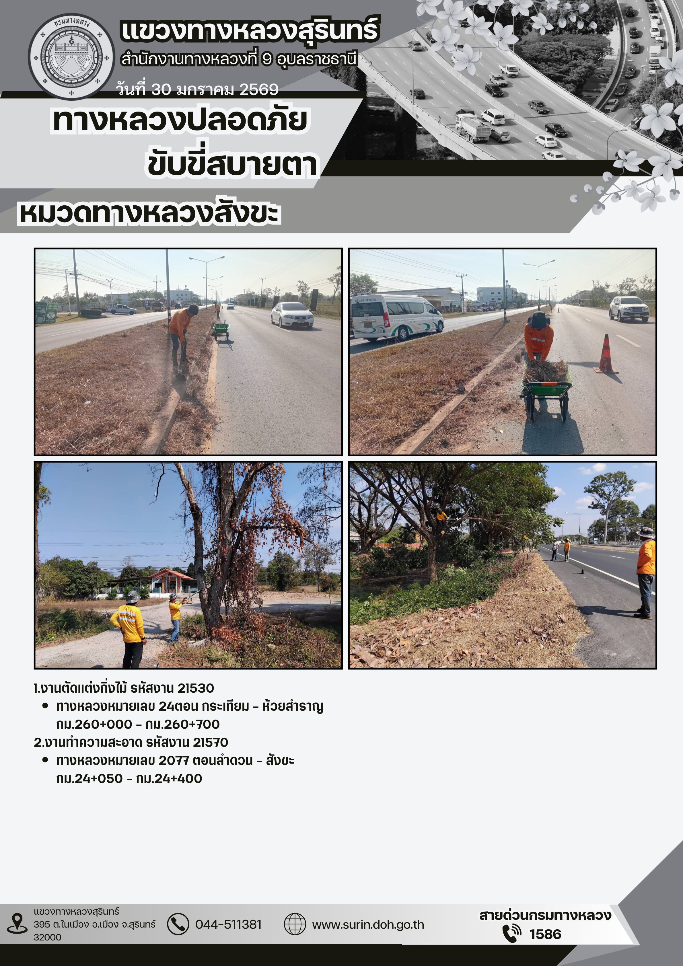 ข้อมูลข่าว : ทางหลวงปลอดภัย ขับขี่สบายตา 30 มกราคม 2569