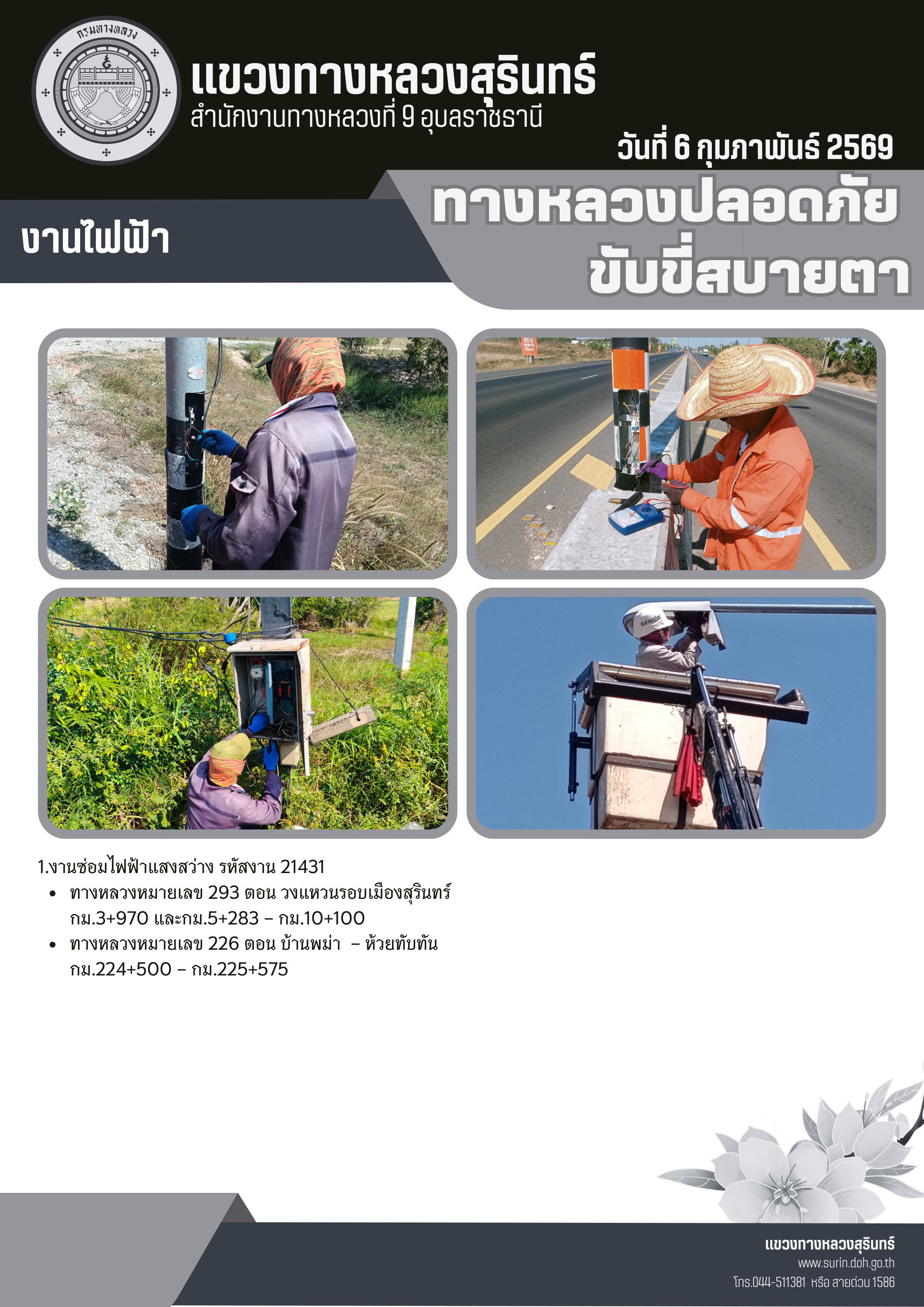 ข้อมูลข่าว : ทางหลวงปลอดภัย ขับขี่สบายตา 6 กุมภาพันธ์ 2569