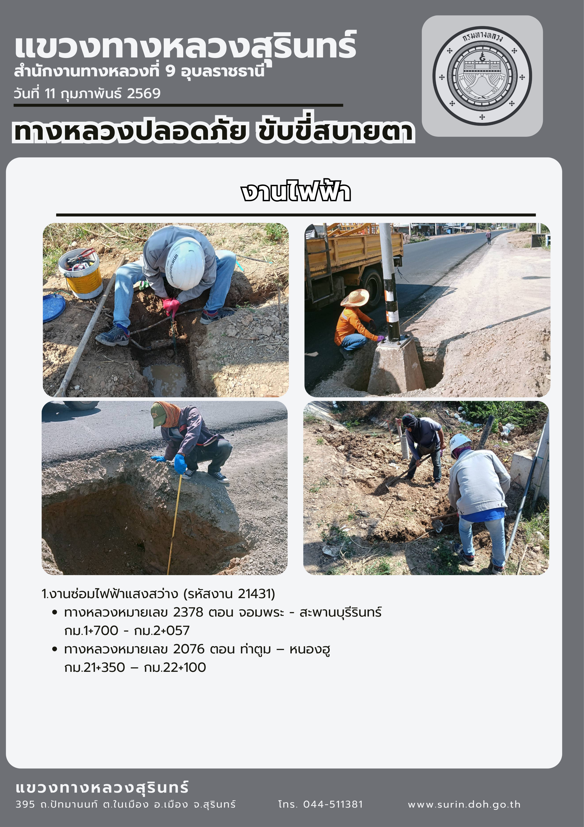 ทางหลวงปลอดภัย ขับขี่สบายตา 11 กุมภาพันธ์ 2569