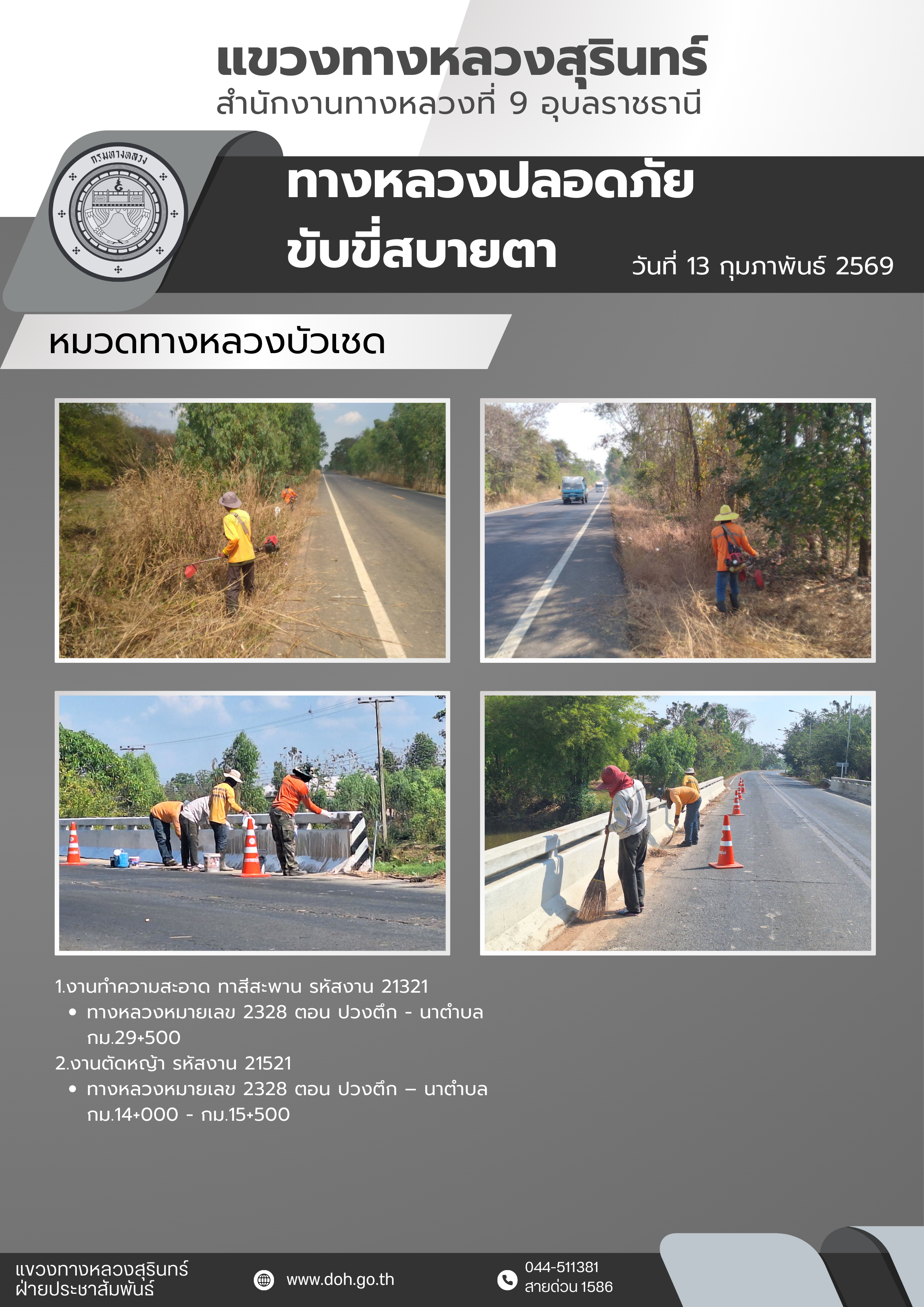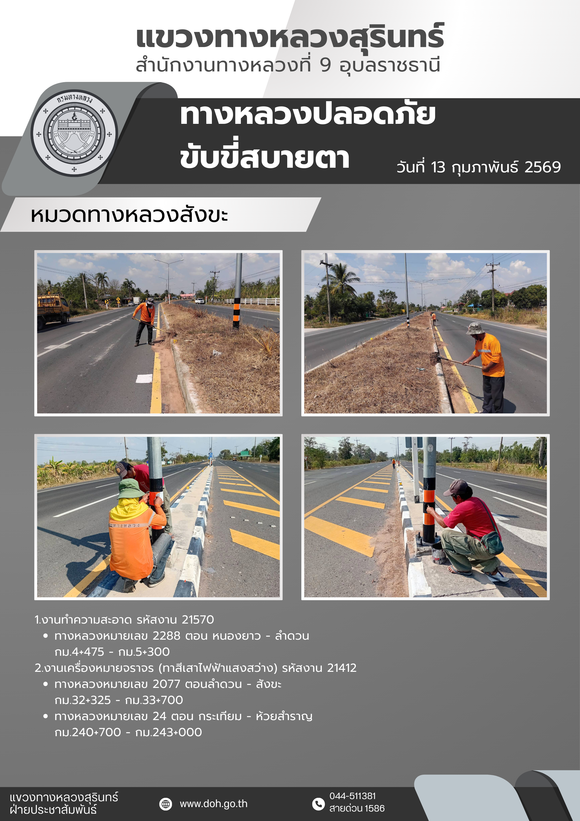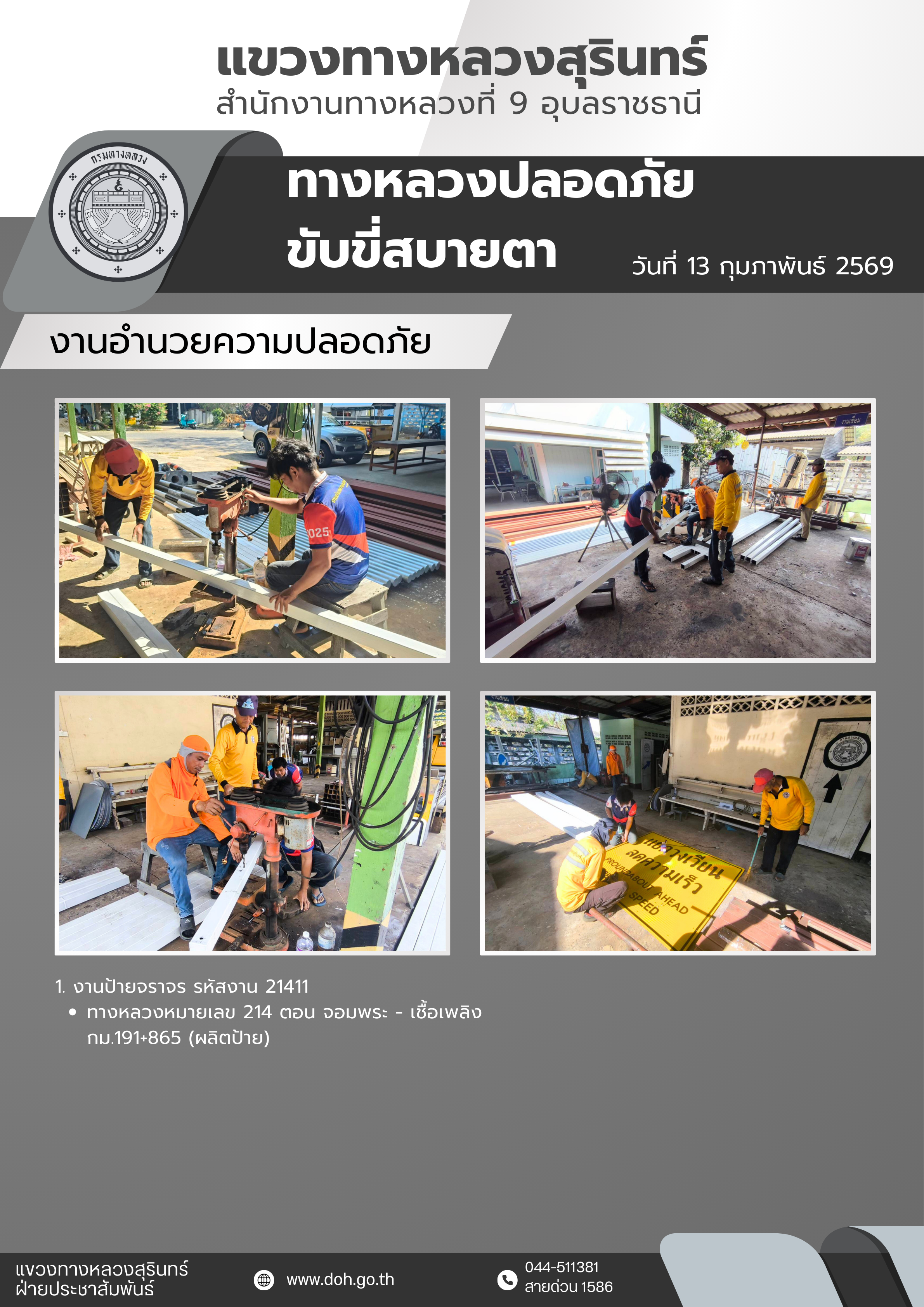 ทางหลวงปลอดภัย ขับขี่สบายตา 13 กุมภาพันธ์ 2569